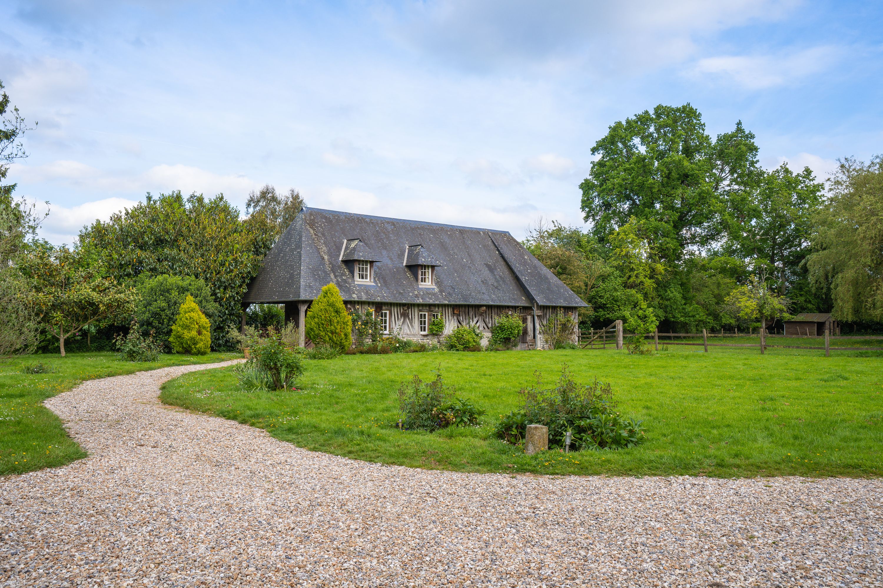 À 7 km de Honfleur et 20 km de Deauville, dans un environnement privilégié à l'abri des regards, belle propriété historique édifiée sur plus de 2 hectares de terrain clos, arboré et piscinable. Maison principale datant de 1751, ancien prieuré, de 300 m² habitables sur 3 niveaux : entrée, salle à manger avec cheminée, cuisine indépendante équipée, toilettes invités, salon avec cheminée, petit salon, bureau, 4 chambres avec placards et cheminée dont une suite parentale et une avec salle d'eau, salle de bains, toilettes indépendantes, grand plateau de 60 m² aménagé en dortoir avec salle de bains et toilettes. Accessible par l'extérieur : chaufferie/buanderie. En dépendance, un pressoir offrant un appartement T3 et une partie à réhabiliter ; une dépendance avec double garage, atelier et stockage ; une longère à rénover. Jardin plat et paysagé avec roseraie et paddock.