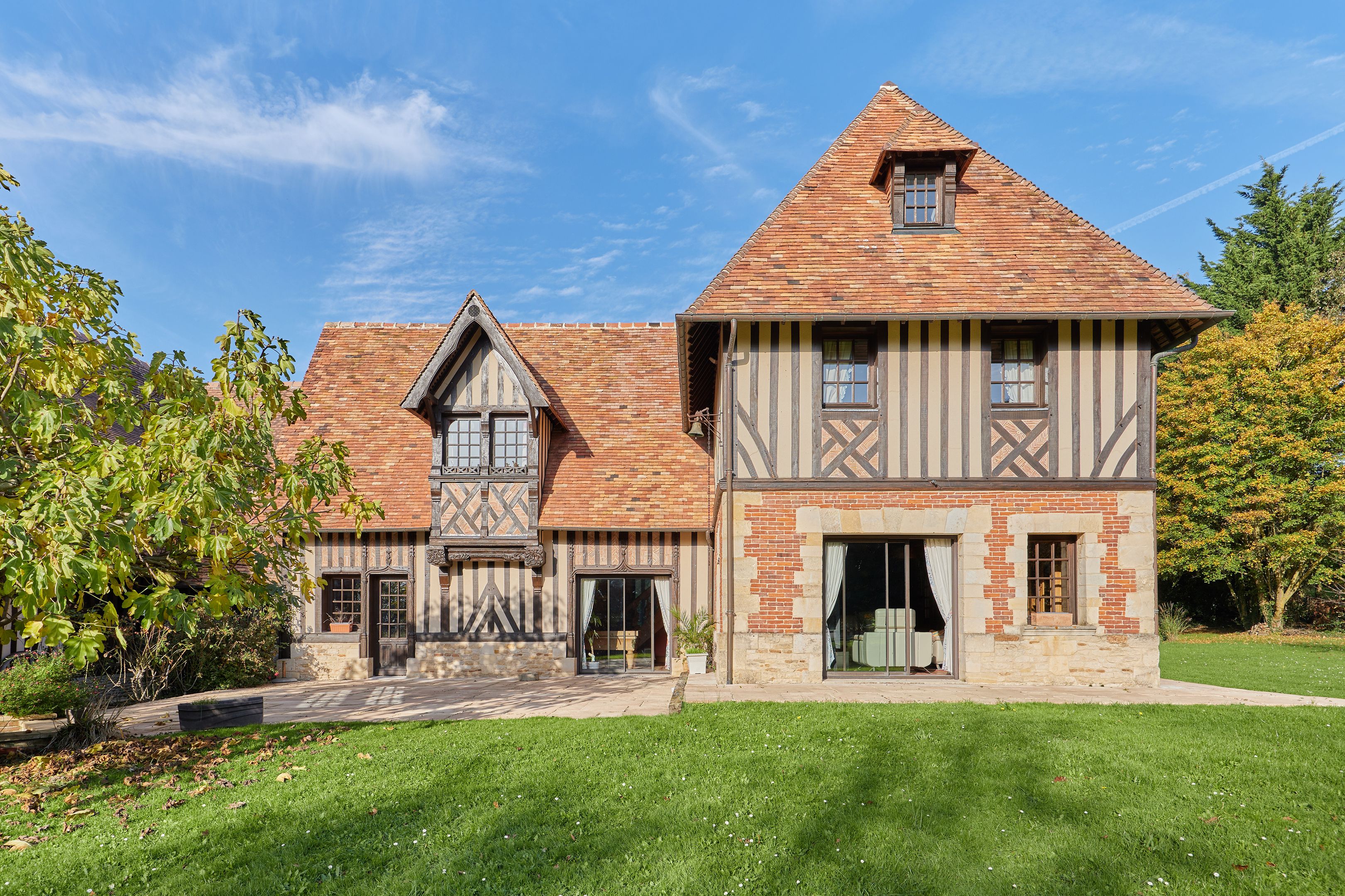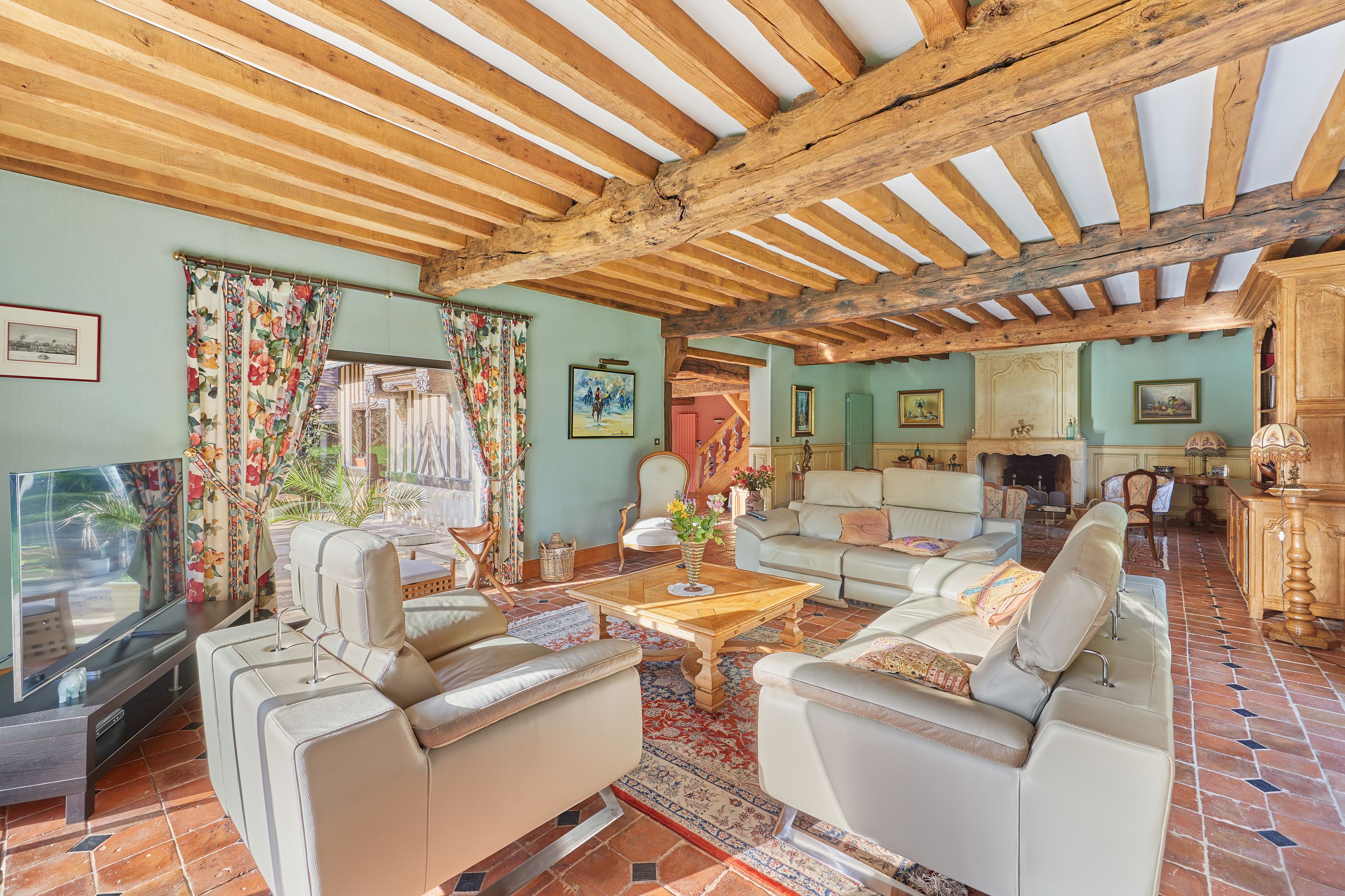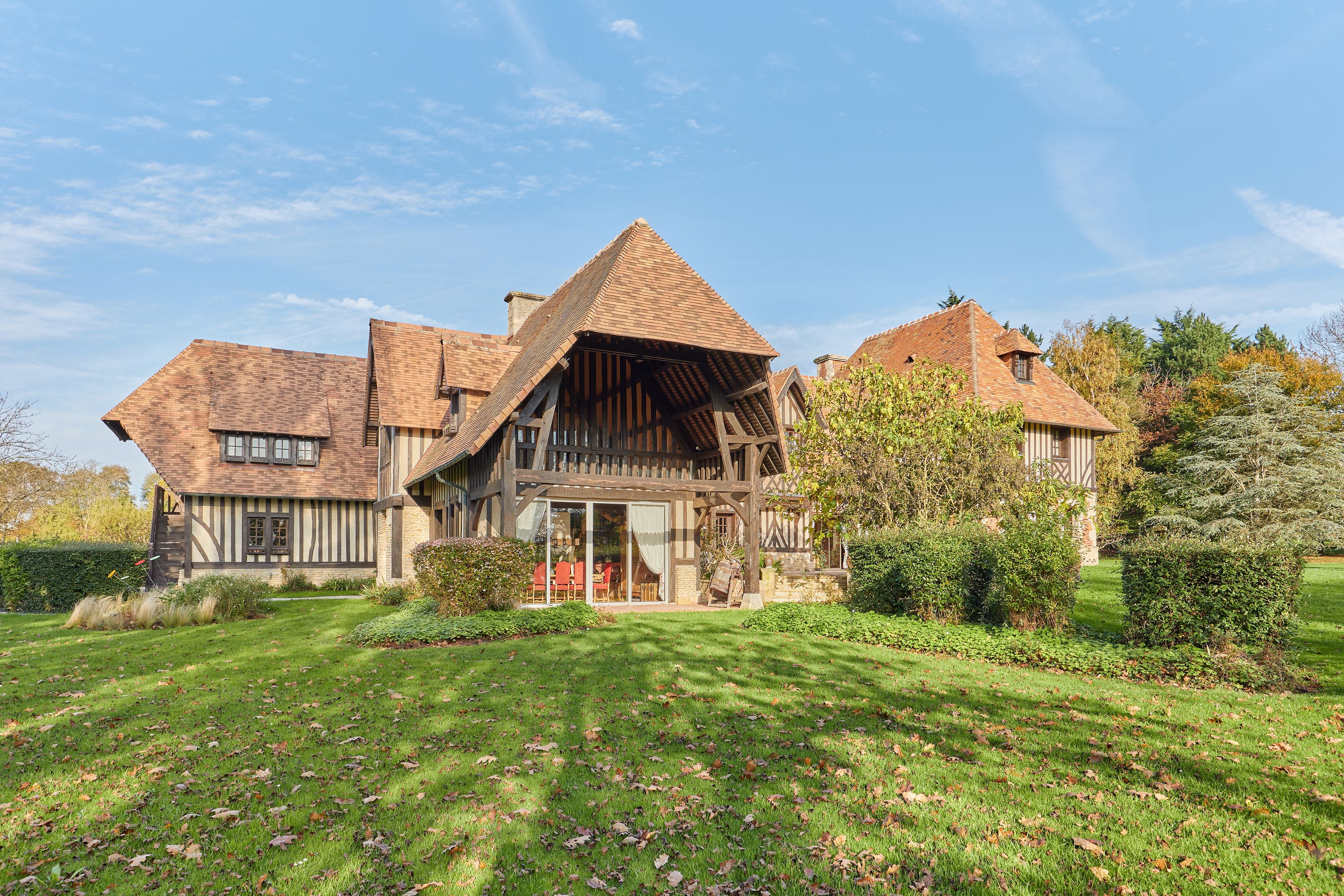 À 12km de Caen et 4km de Merville-Franceville, propriété de charme d'environ 430m2 édifiée en 1983 puis agrandie en 1996 sur un terrain plat de 1,8 hectares. Au rez-de-chaussée : entrée, cuisine indépendante, grand salon avec cheminée, salle-à-manger avec cheminée centrale, bureau, toilettes indépendants, double garage. Au 1er étage : mezzanine, 5 chambres dont une suite parentale avec salle de bains et dressing, et une avec salle d'eau, salle d'eau, toilettes indépendants. 2nd étage partiel avec grand espace bureau (possible 6ème chambre). Sous-sol complet de 170m2. En dépendance, maison d'amis de 20m2 et box à chevaux.