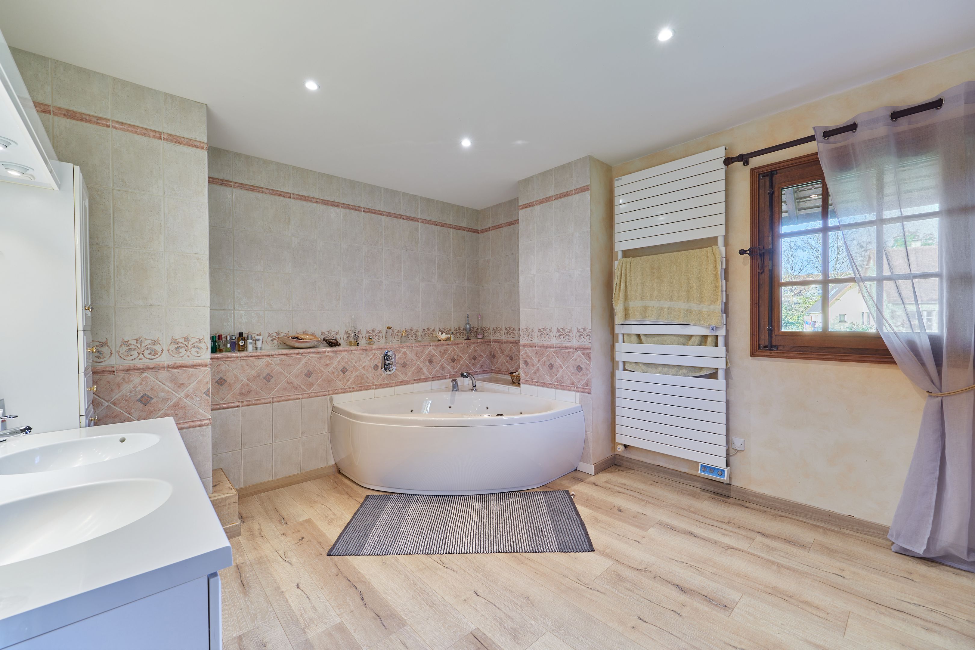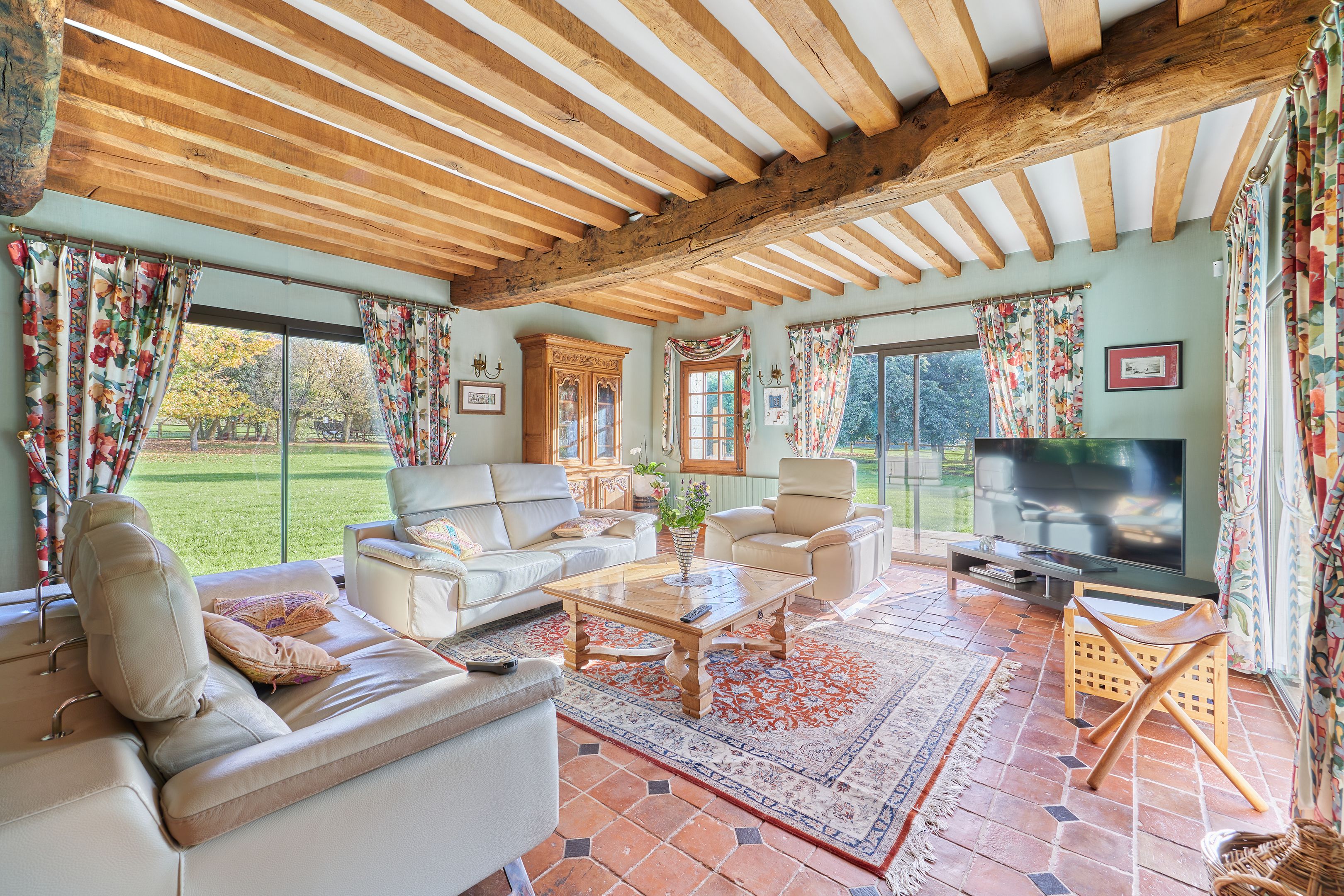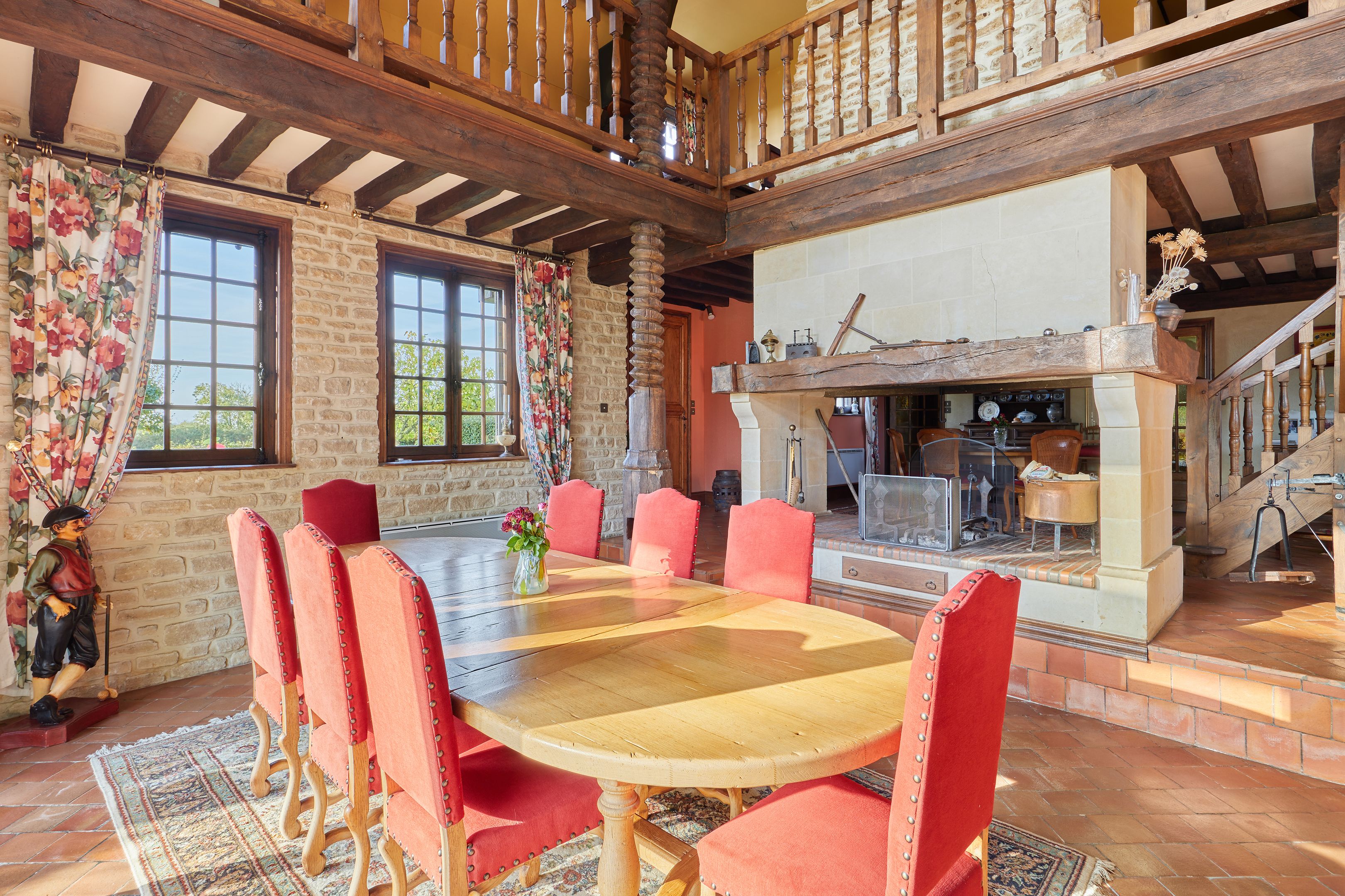 À 12km de Caen et 4km de Merville-Franceville, propriété de charme d'environ 430m2 édifiée en 1983 puis agrandie en 1996 sur un terrain plat de 1,8 hectares. Au rez-de-chaussée : entrée, cuisine indépendante, grand salon avec cheminée, salle-à-manger avec cheminée centrale, bureau, toilettes indépendants, double garage. Au 1er étage : mezzanine, 5 chambres dont une suite parentale avec salle de bains et dressing, et une avec salle d'eau, salle d'eau, toilettes indépendants. 2nd étage partiel avec grand espace bureau (possible 6ème chambre). Sous-sol complet de 170m2. En dépendance, maison d'amis de 20m2 et box à chevaux.