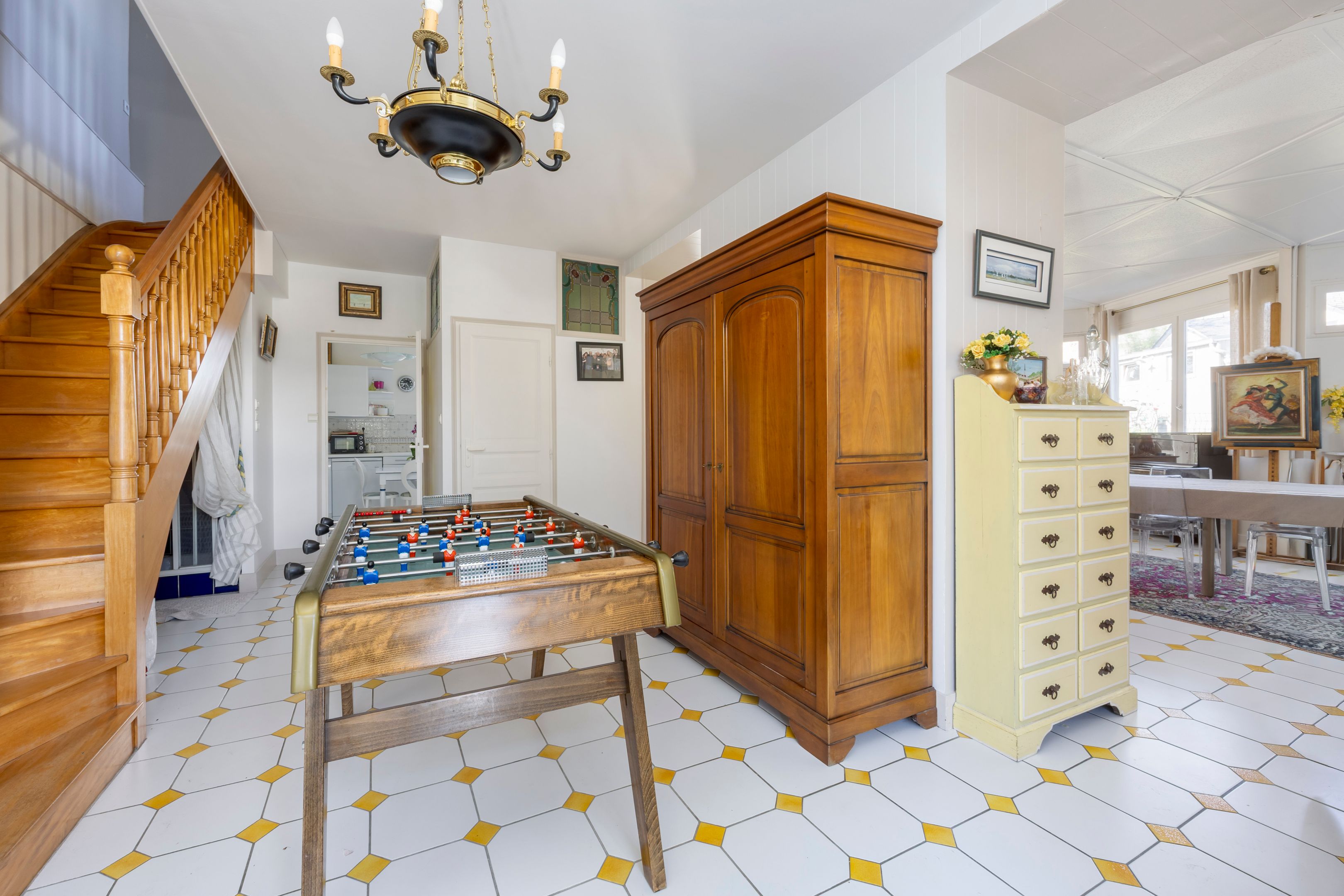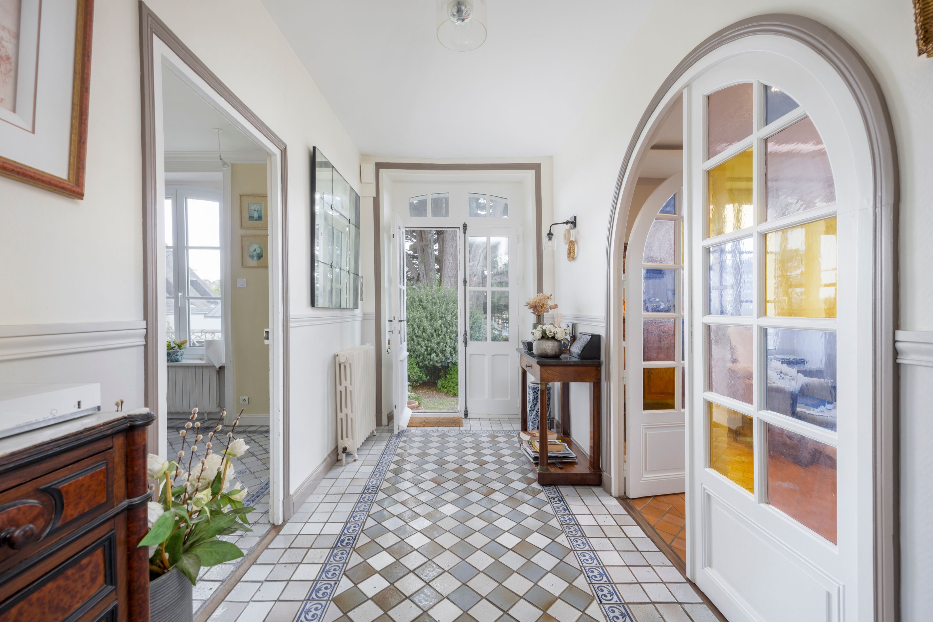 Belle propriété ancienne de 430m² idéalement située à proximité immédiate des plages, du golf et des commerces. Cette maison bénéficie d'un emplacement très recherché, d'impressionnants volumes avec ses nombreuses pièces de réception et d'un joli jardin de 1000m². Entrée, vaste séjour dans une lumineuse véranda, grande salle à manger et belle cuisine dinatoire équipée. Au 1er étage : très grande chambre parentale avec salle de bains et douche, bureau et dressing, 2de chambre avec salle d'eau et toilettes séparées. Au 2ème étage : 3 chambres, salle de bains et toilettes séparées. En rez-de-jardin : salle de jeu, salle d'eau, toilettes, buanderie, cave.