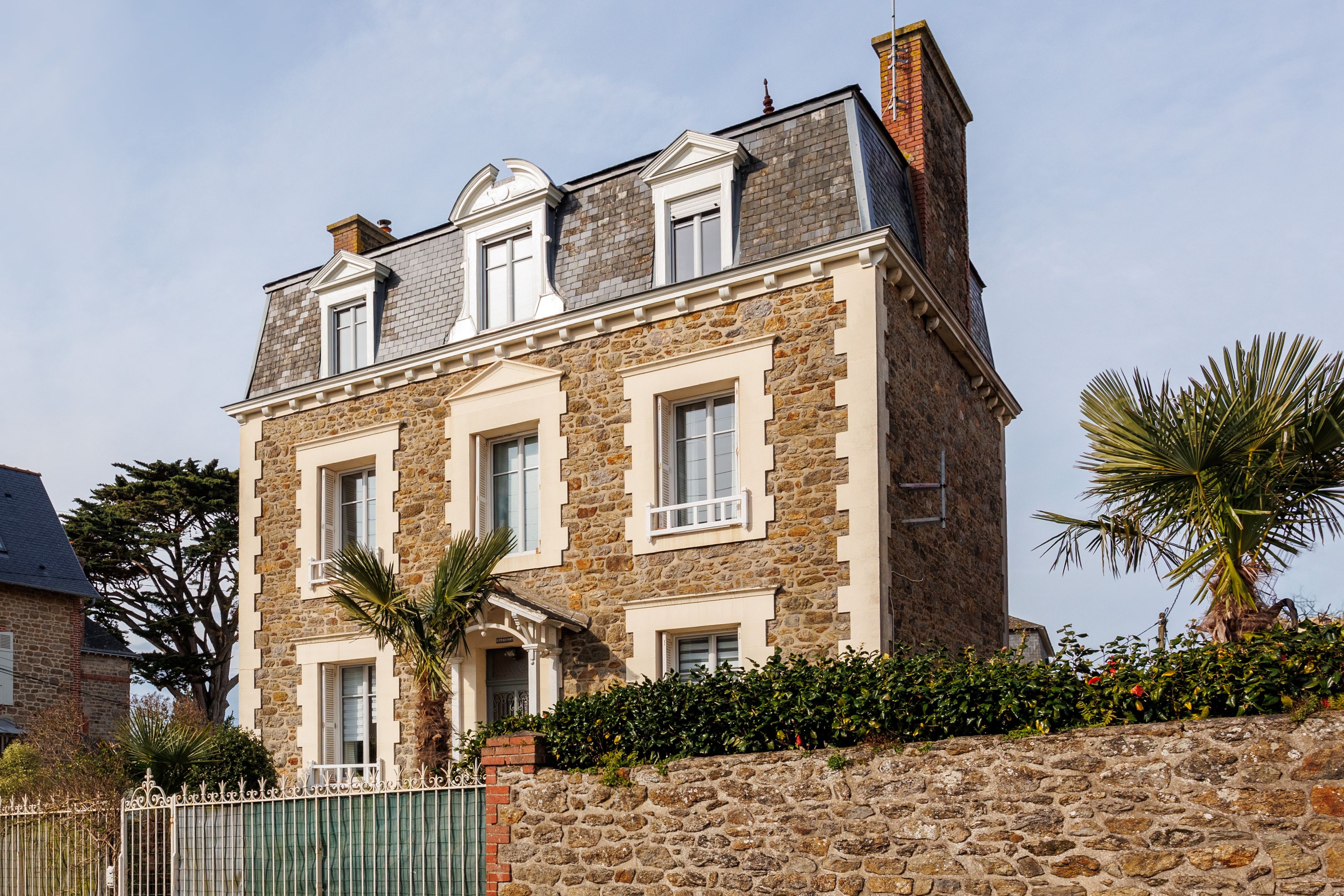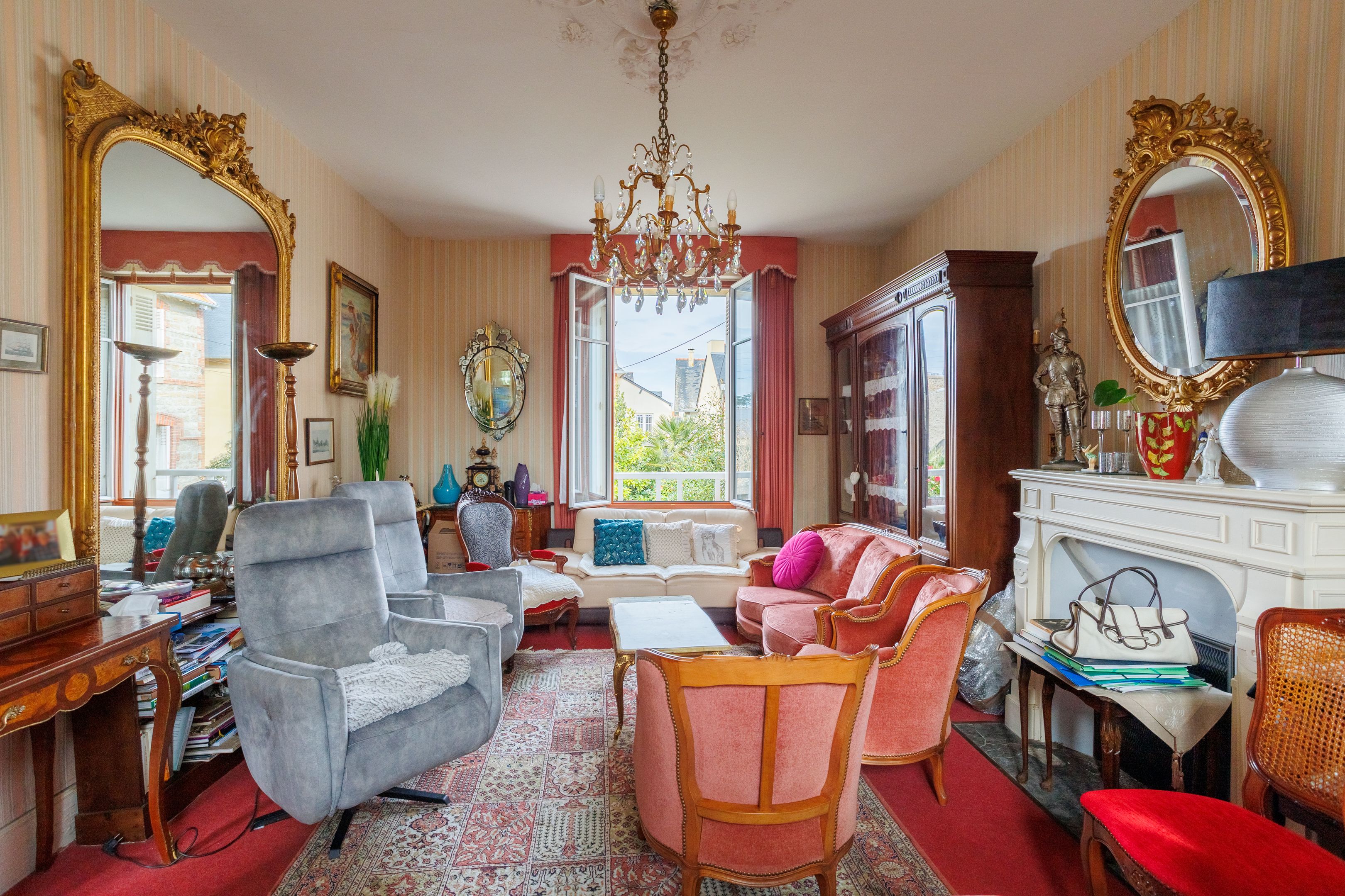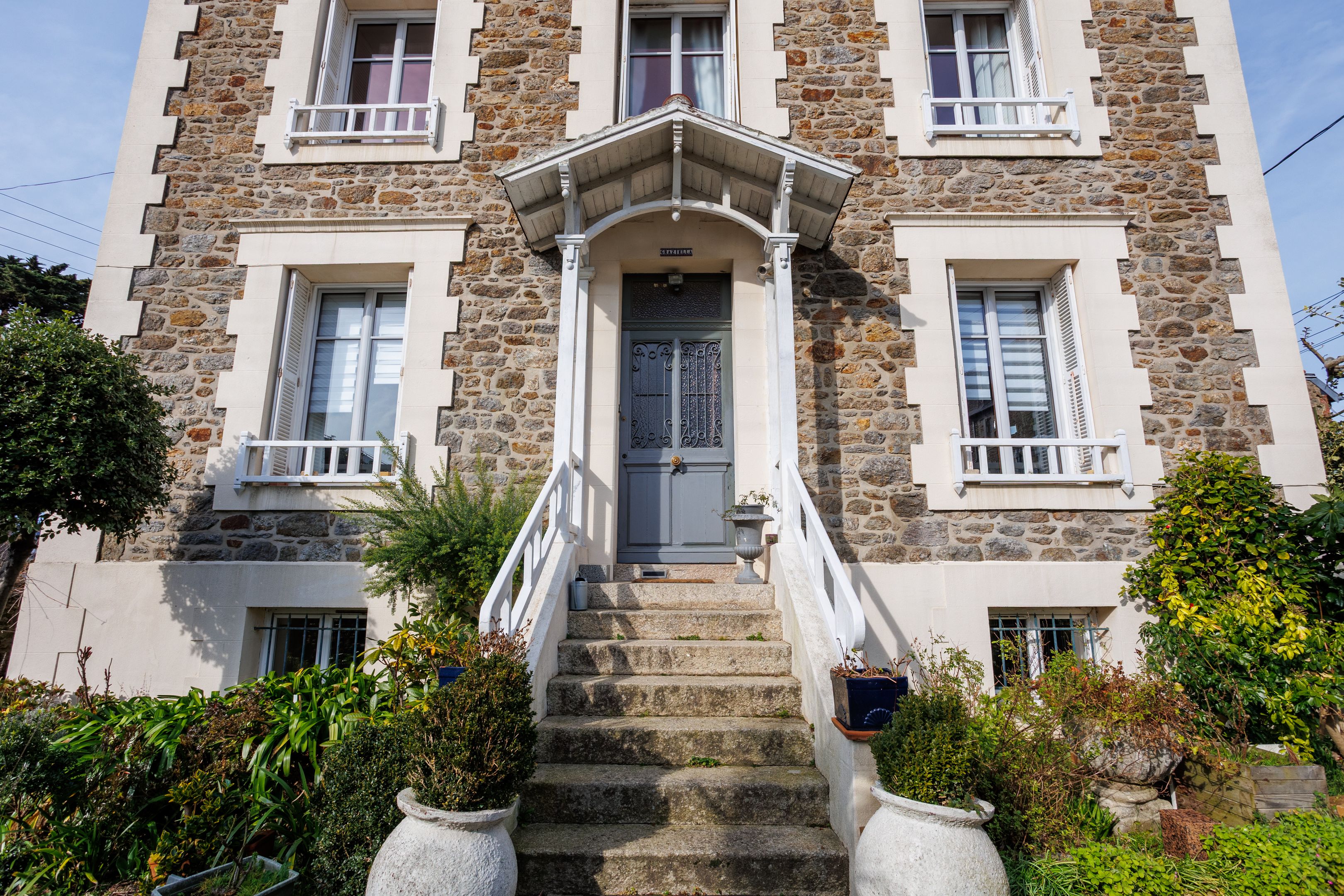Triangle St-Énogat - Malouine - Centre-ville, à seulement 250m de la plage. Sur un terrain de 575m², historique villa dinardaise bénéficiant d'un emplacement recherché, d'une bonne orientation et d'un agréable extérieur ensoleillé. Entrée, salon traversant avec moulures et cheminée, salle à manger, cuisine. Aux étages, 8 chambres dont 2 équipées de douche, 2 salles de bains, vues mer. En rez-de-jardin, appartement pouvant être indépendant composé de 3 pièces. En sus, pavillon tout équipé. Garage. Enfin, très beau jardin fleuri avec annexes.