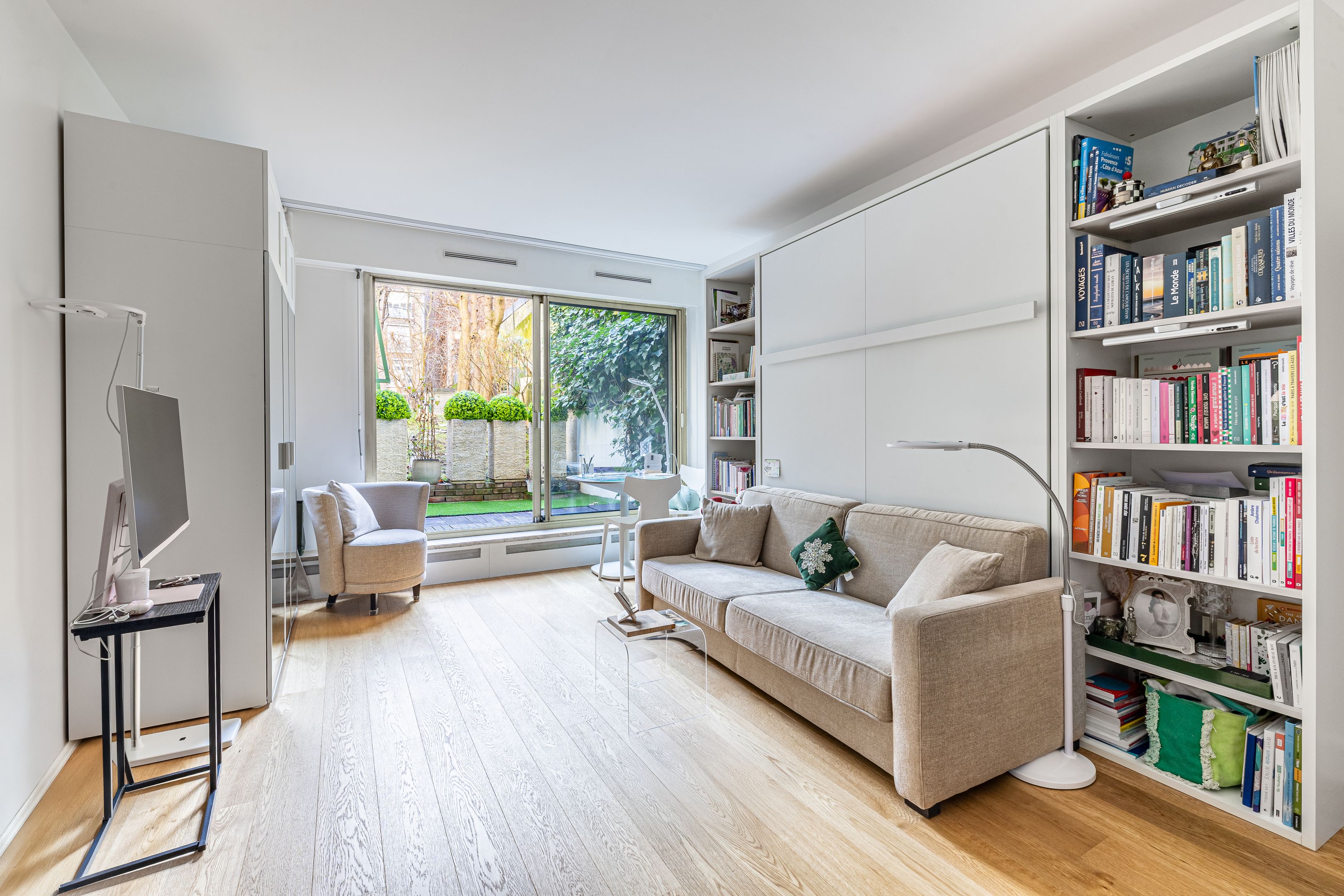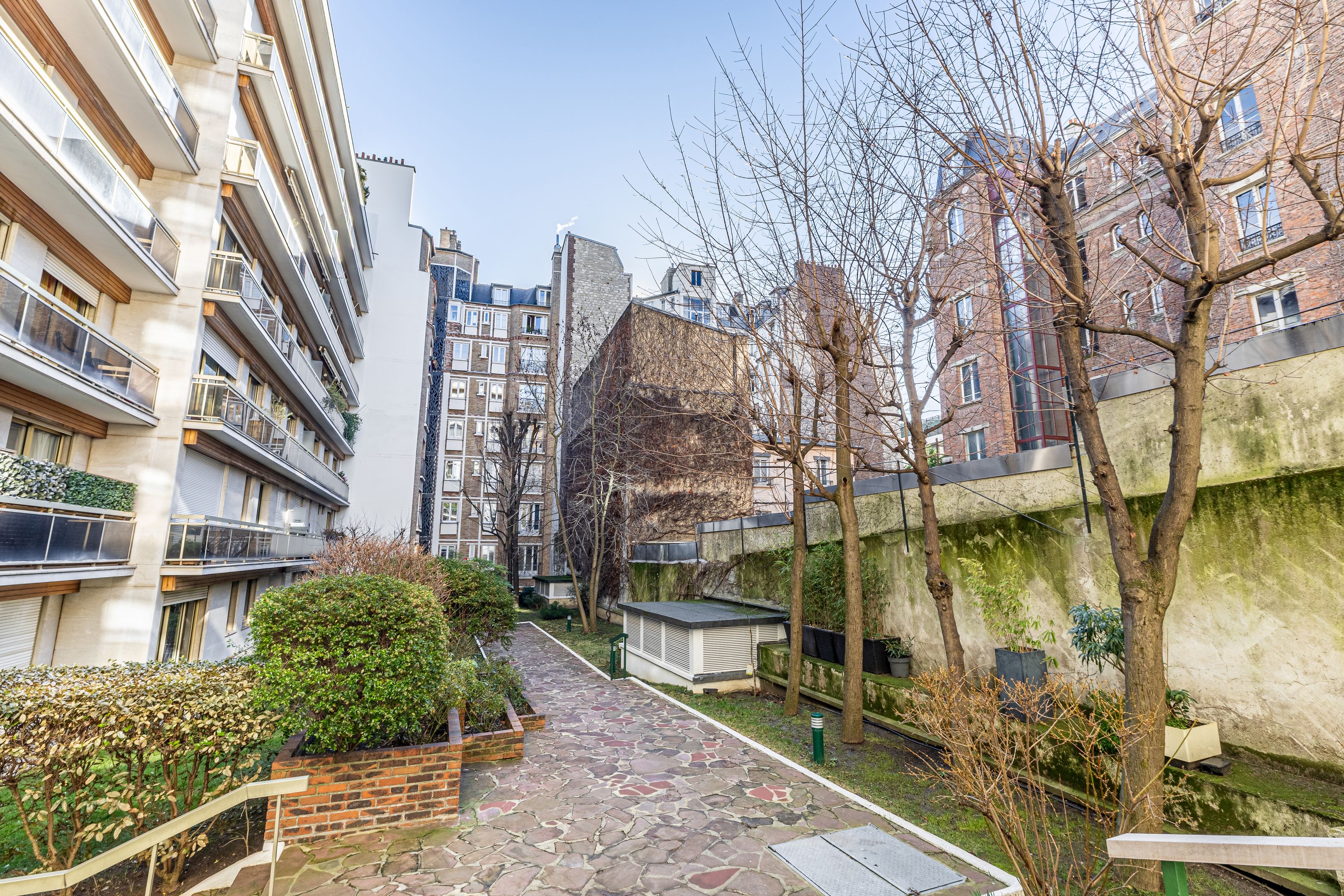 Jasmin. Immeuble de standing de 1977 au calme dans une voie piétonne à proximité immédiate de toutes les commodités. Au rez-de-jardin, studio meublé de 27,53 m² entièrement rénové avec des matériaux haut de gamme, bénéficiant d'une terrasse privative de 16,17 m² et d'une belle luminosité grâce à sa vue dégagée et son orientation sud-est. Entrée, cuisine semi-ouverte aménagée et équipée, pièce principale, salle d'eau avec toilettes. Cave.