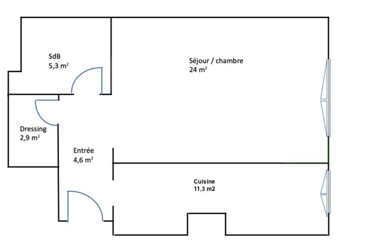 Dans un immeuble de standing avec gardien à 100m du Parc Montsouris, un grand studio à rénover de 48,25 m2 situé au 1er étage par ascenseur. Grande pièce de vie de 25 m2, cuisine indépendante, salle de bains, dressing. Vue dégagée. A rénover, possibilité de créer une chambre. Cave bétonnée, possibilité de louer un parking dans l'immeuble.