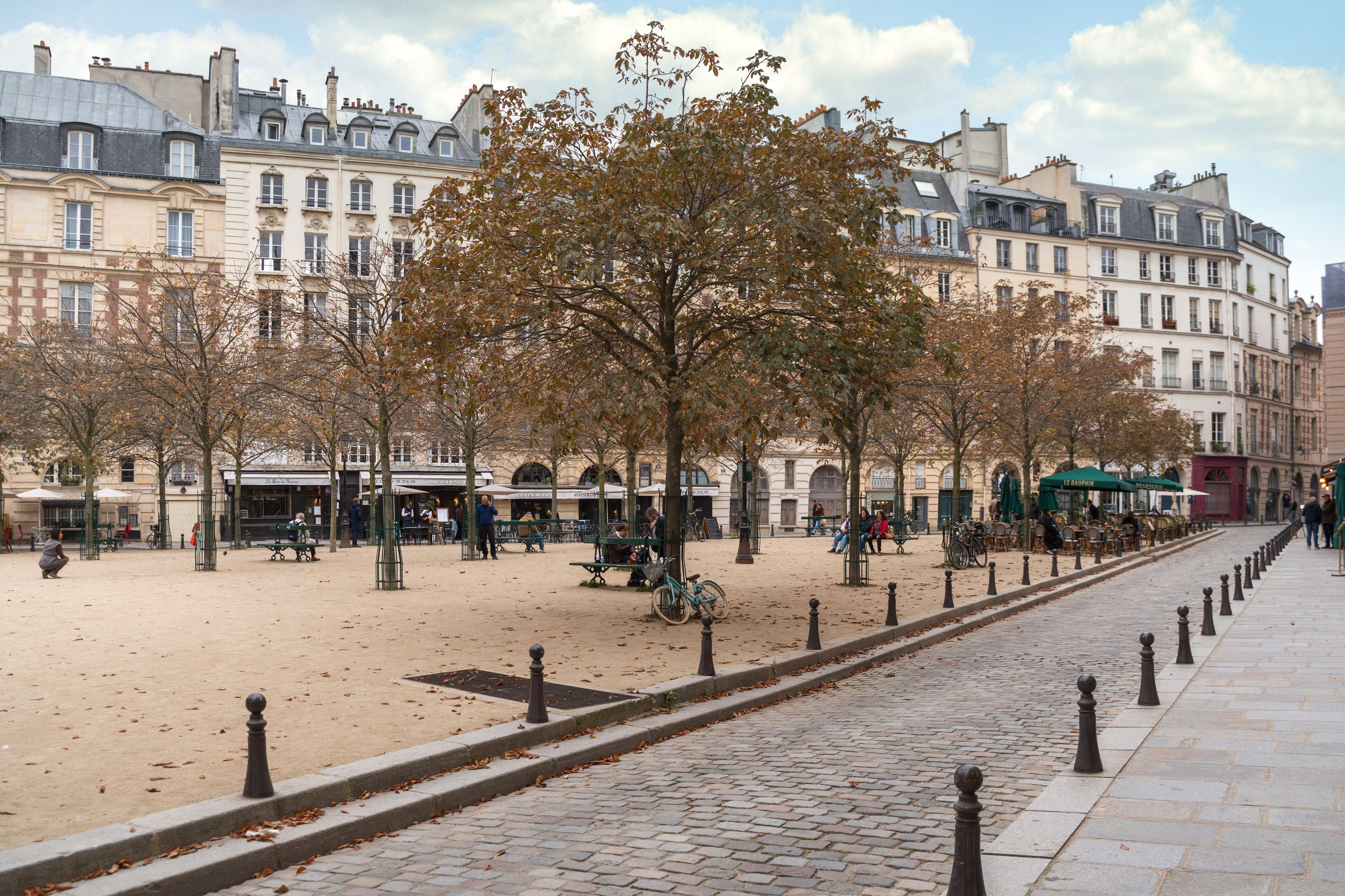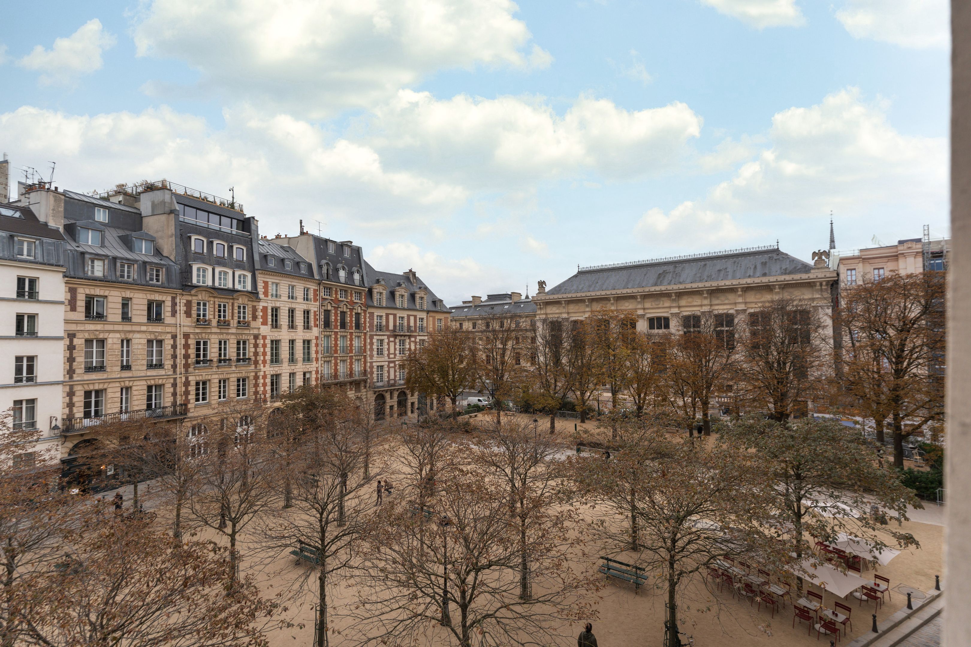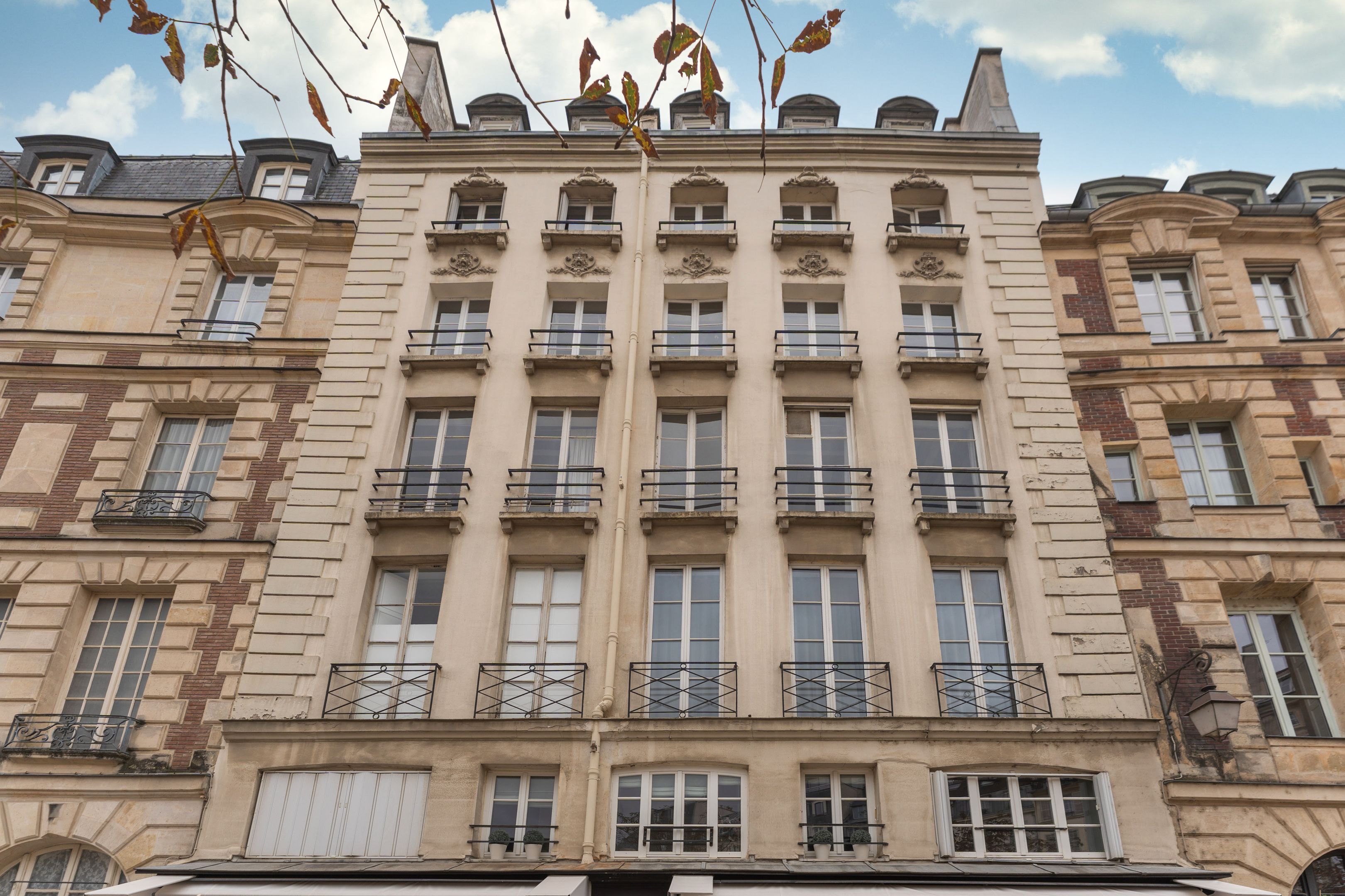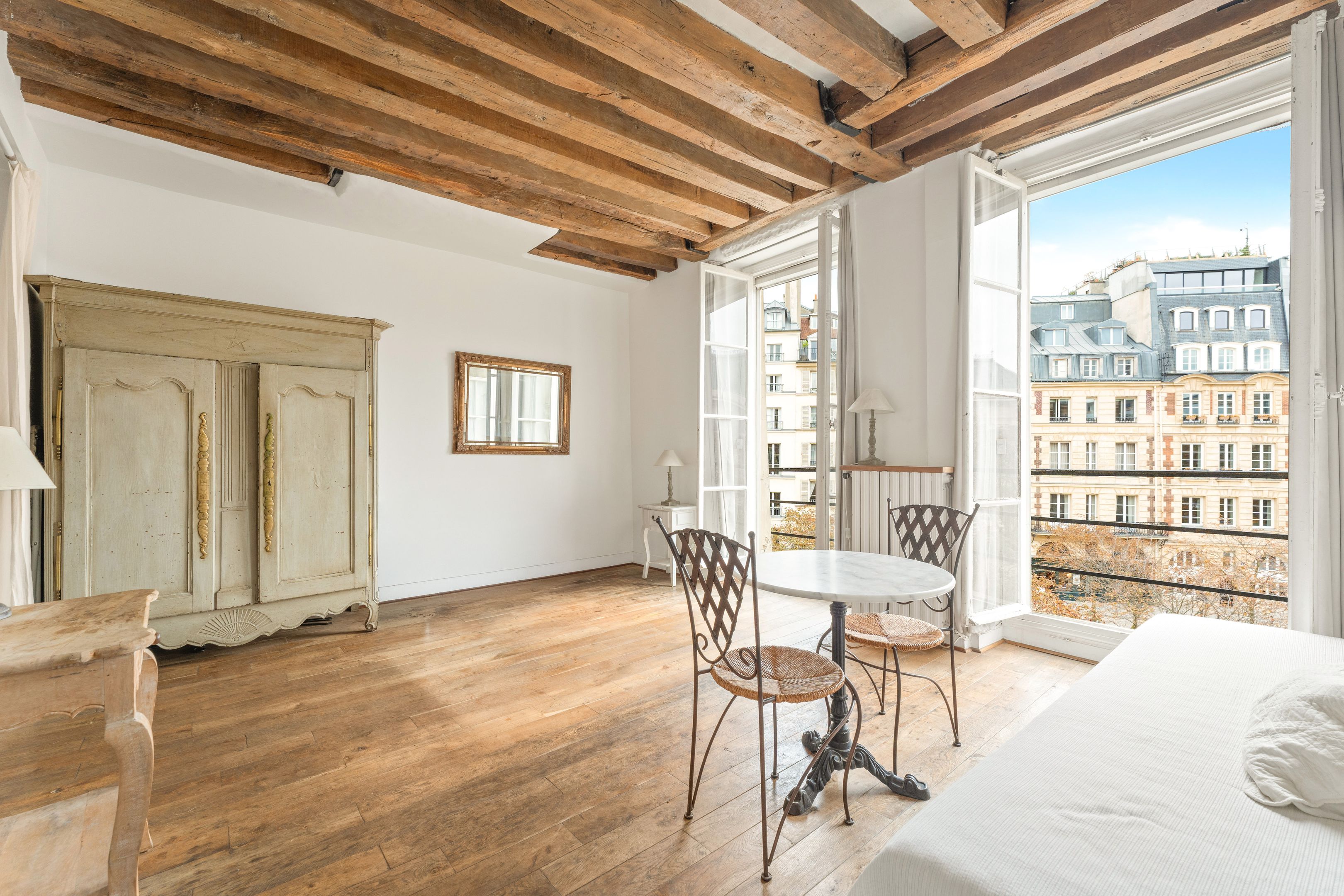 Place Dauphine - Dans un bel immeuble du 15ème siècle bien entretenu, studio en bon état de 23,78m² loi Carrez, bénéficiant d'une superbe vue sur la Place Dauphine, de poutres apparentes et situé au 3ème étage desservi par escalier. Entrée, pièce principale, coin avec cuisine, salle d'eau avec toilettes.