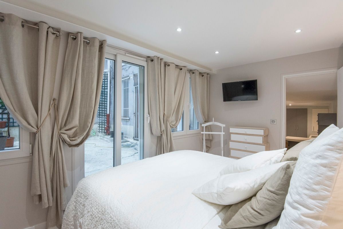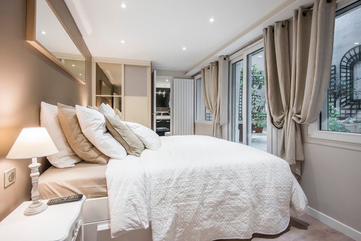 Très bel immeuble du XVIIe siècle aux parties communes soignées, appartement en rez-de-chaussée calme et très agréable donnant sur une belle cour intérieure végétalisée. Séjour avec cuisine américaine moderne, entièrement aménagée et équipée, chambre avec rangements, salle d'eau avec toilettes. Cave.