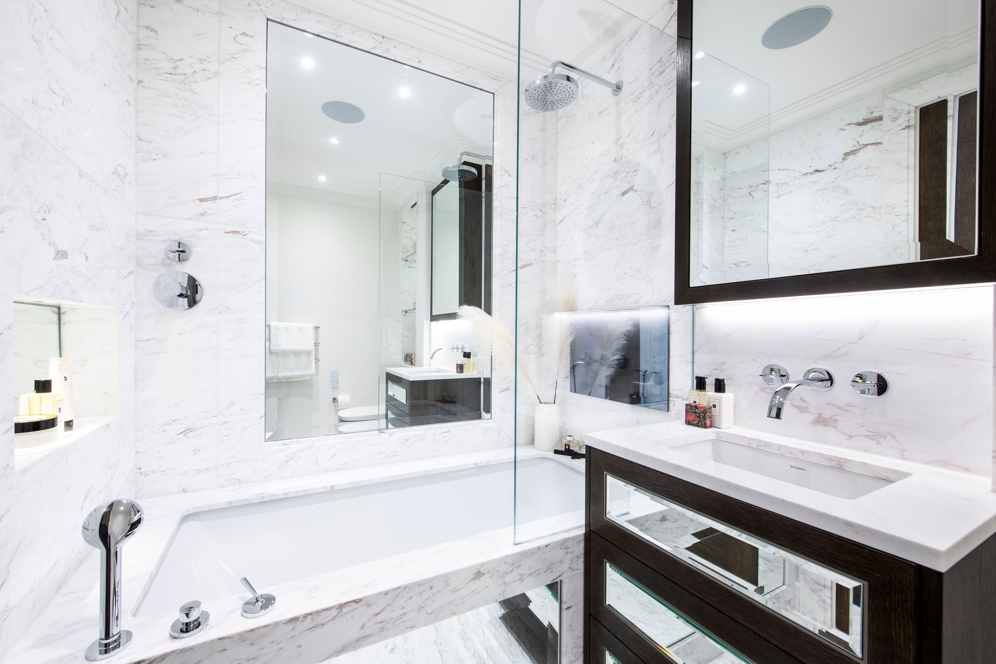 Il s'agit d'un magnifique appartement latéral, récemment rénové, situé au 3ème étage (avec ascenseur) de ce complexe exclusif d'époque. La finition haut de gamme est un mélange harmonieux de design intérieur moderne et d'éléments d'époque. La spacieuse salle de réception, dotée d'un parquet en bois et d'un système de climatisation, donne sur une grande terrasse privée. C'est l'endroit idéal pour recevoir des amis avec style ou se détendre dans le luxe. Les deux chambres doubles sont toutes deux dotées d'une salle de bains privative et de nombreux rangements, ce qui est parfait pour les amis et la famille en visite. Il s'agit d'une superbe maison londonienne pour n'importe qui !