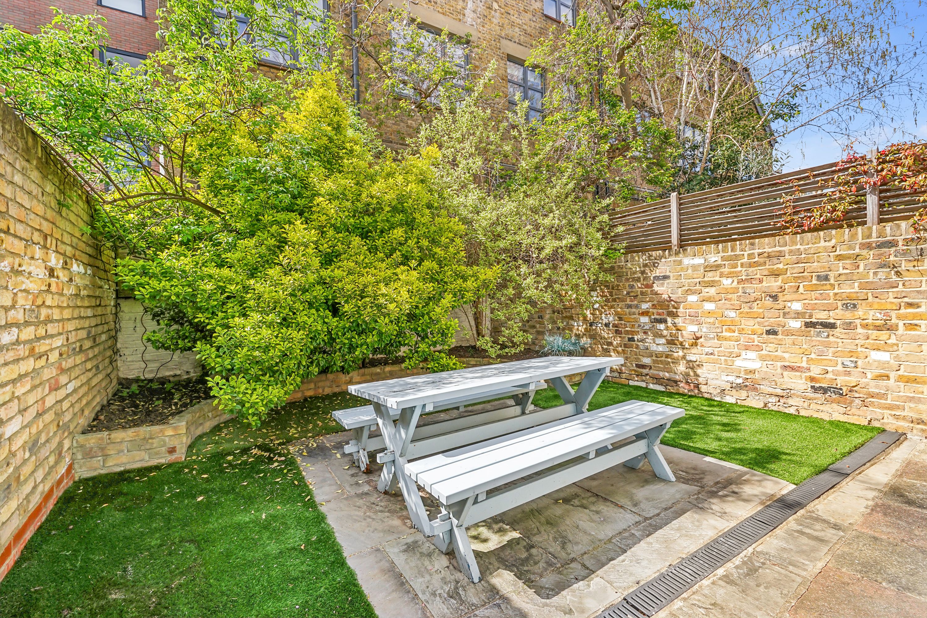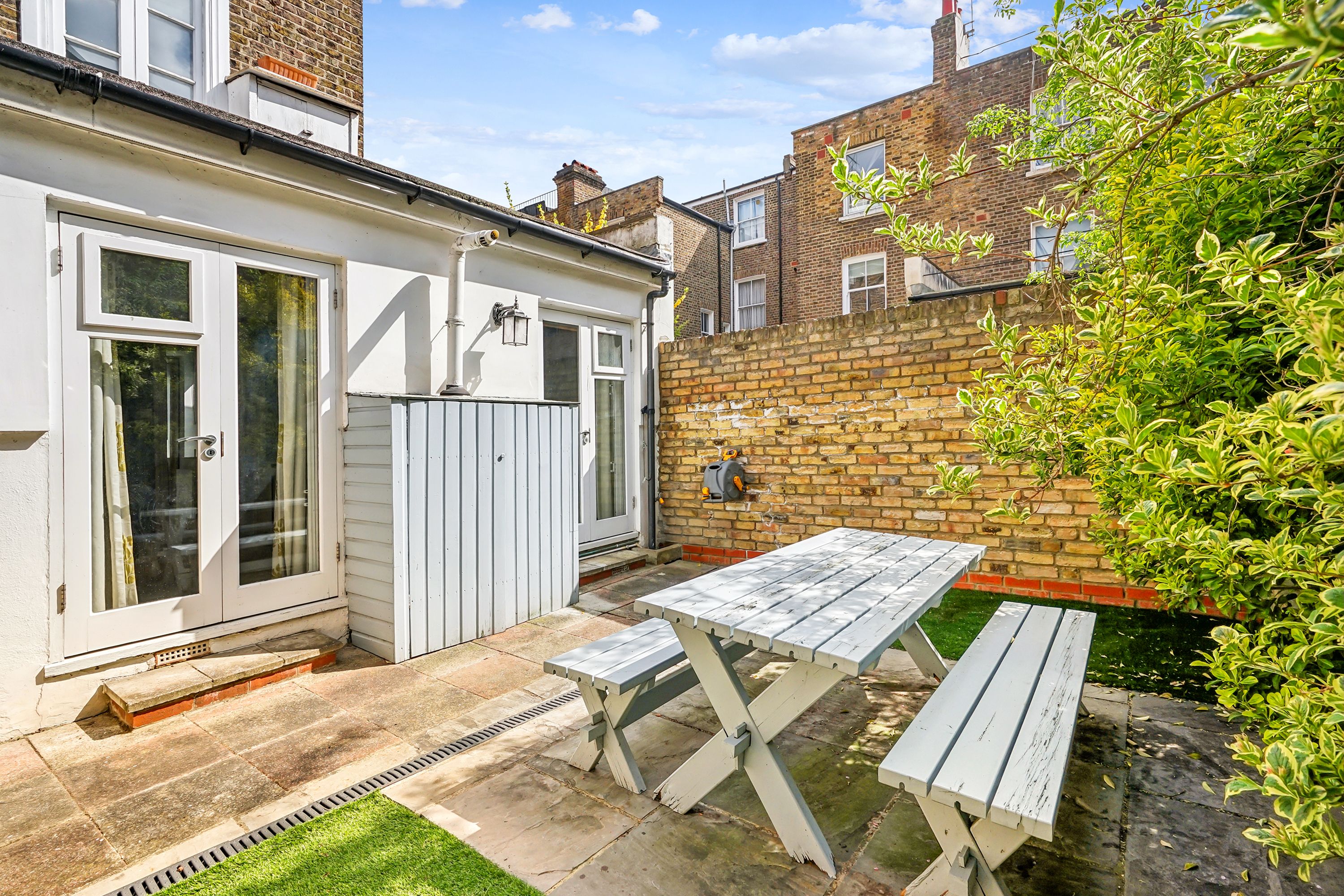 Located off the Fulham Road close to all the amenities of Parsons Green, this end of terrace property boasts a recently remodelled south-facing garden, a bright double reception room, composed of a living and dining area, featuring high ceilings, gorgeous Victorian fixtures, two bedrooms with good amount of storage, two bathrooms and a fully equipped kitchen.