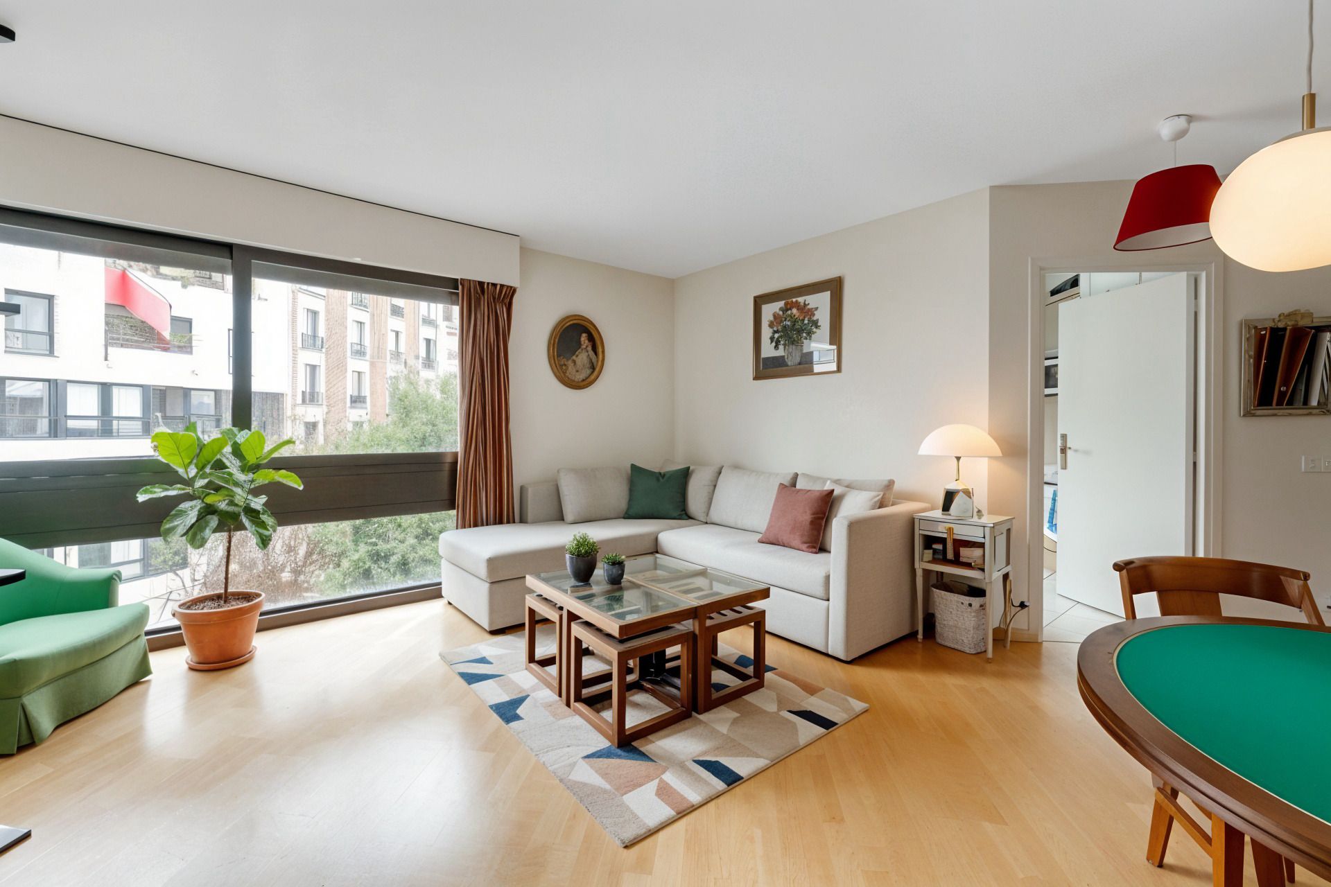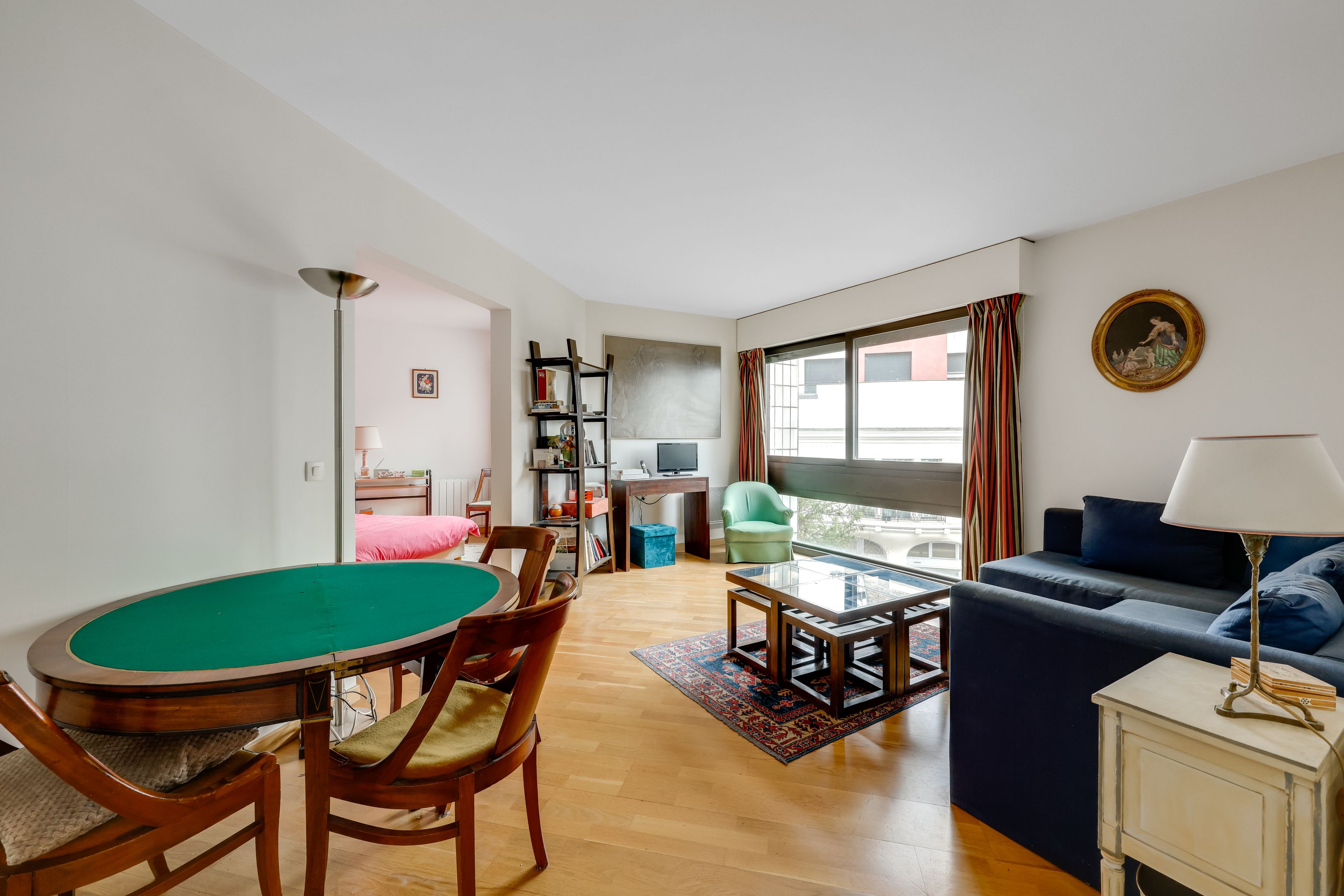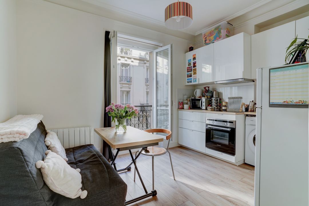 Square Bayen, au 2ème étage d'un immeuble de 1977 de bon standing et bien entretenu, beau deux pièces de 45 m² jouissant d'une vue dégagée sur les jardins de la copropriété et d'un plan compact sans perte de place. Entrée, séjour, cuisine indépendante aménagée et équipée (pouvant être ouverte sur le séjour), chambre bénéficiant d'un grand rangement, salle d'eau et toilettes. Cave.
