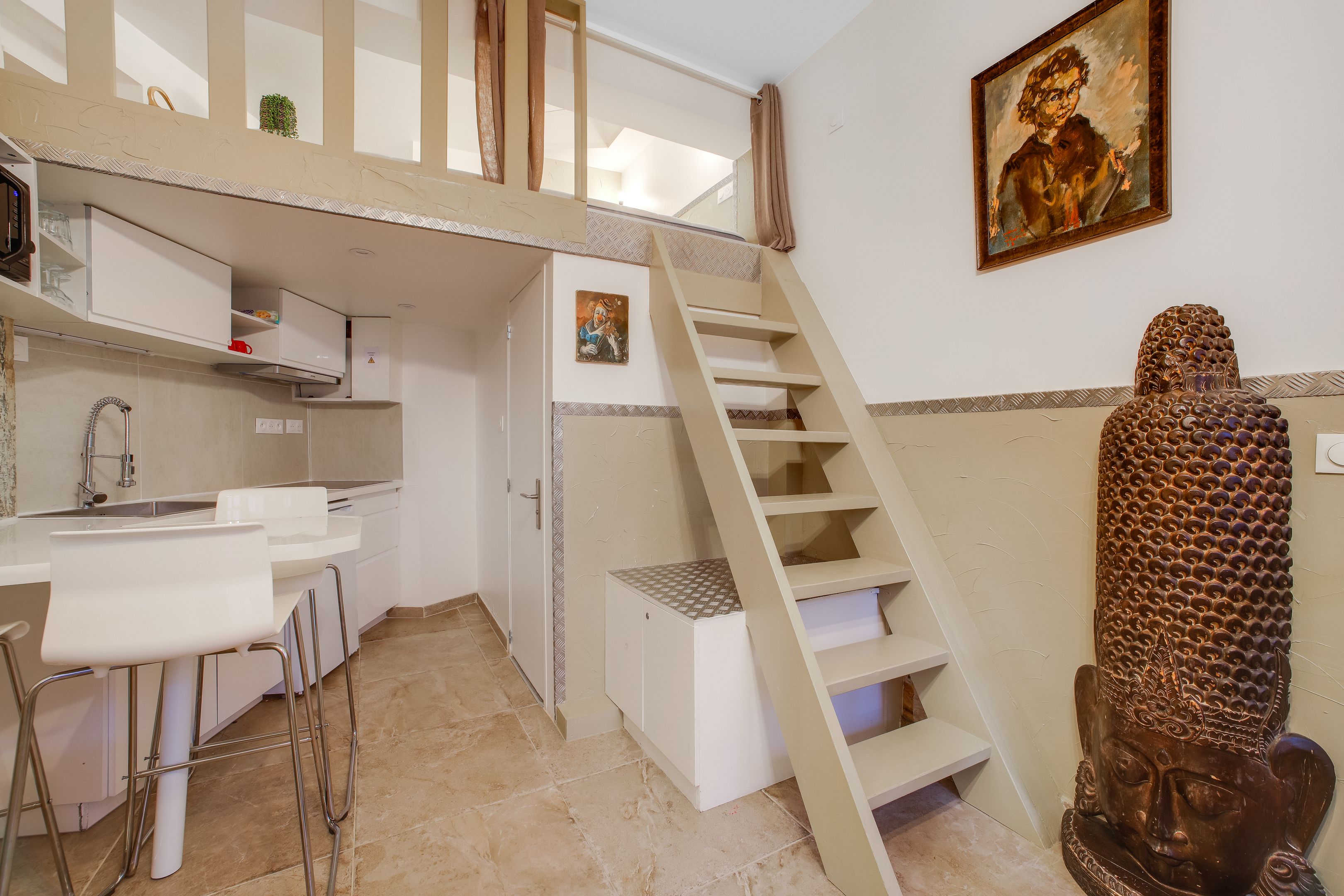 Idéalement situé à deux pas du métro Charonne, immeuble ancien, au rez-de-chaussée sur rue. Souplex type loft aménagé sur deux niveaux bénéficiant d'une belle hauteur sous plafond. Entrée, séjour avec verrière, mezzanine, cuisine ouverte, salle d'eau, toilettes. Niveau inférieur : chambre, salle d'eau, toilettes, nombreux rangements.