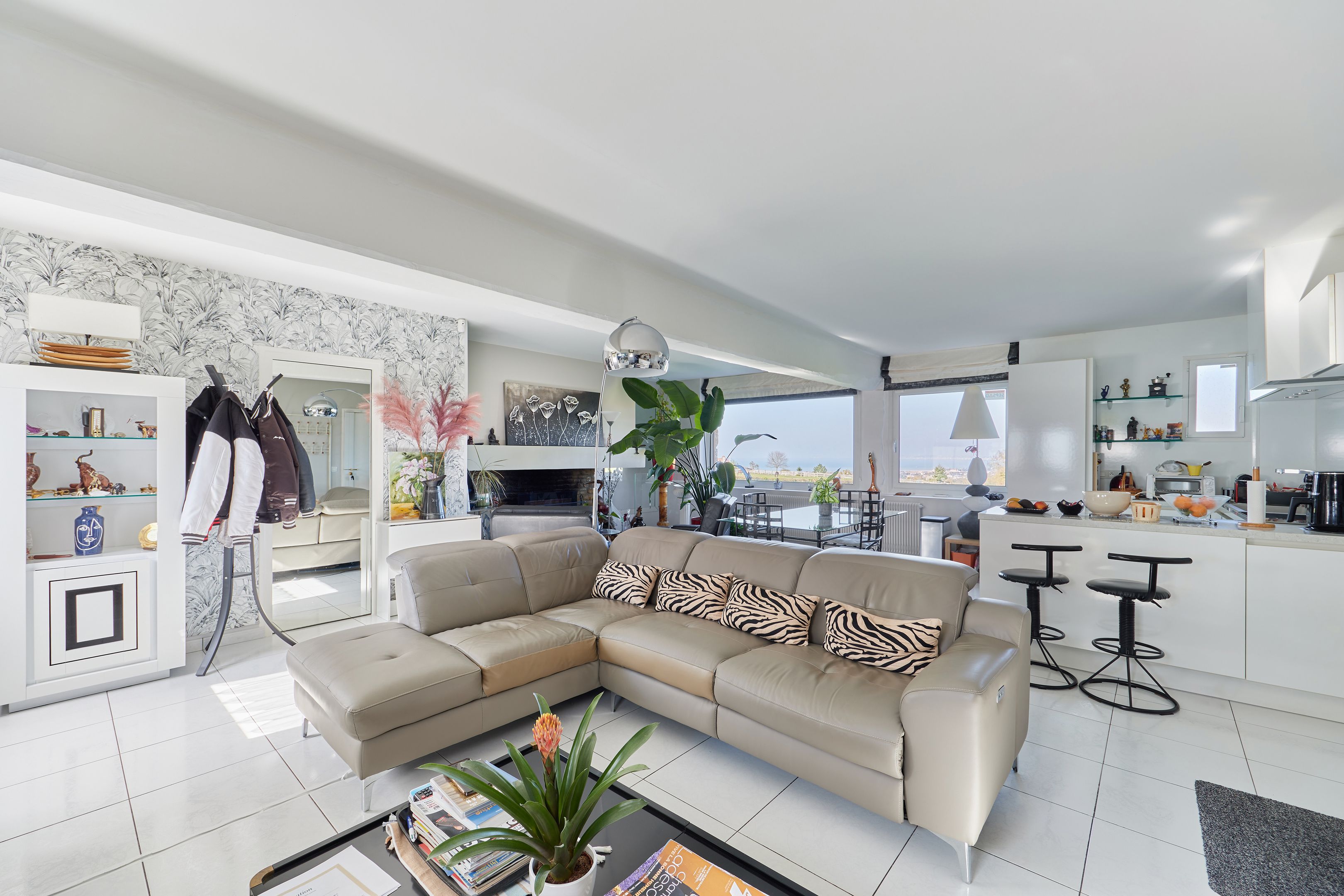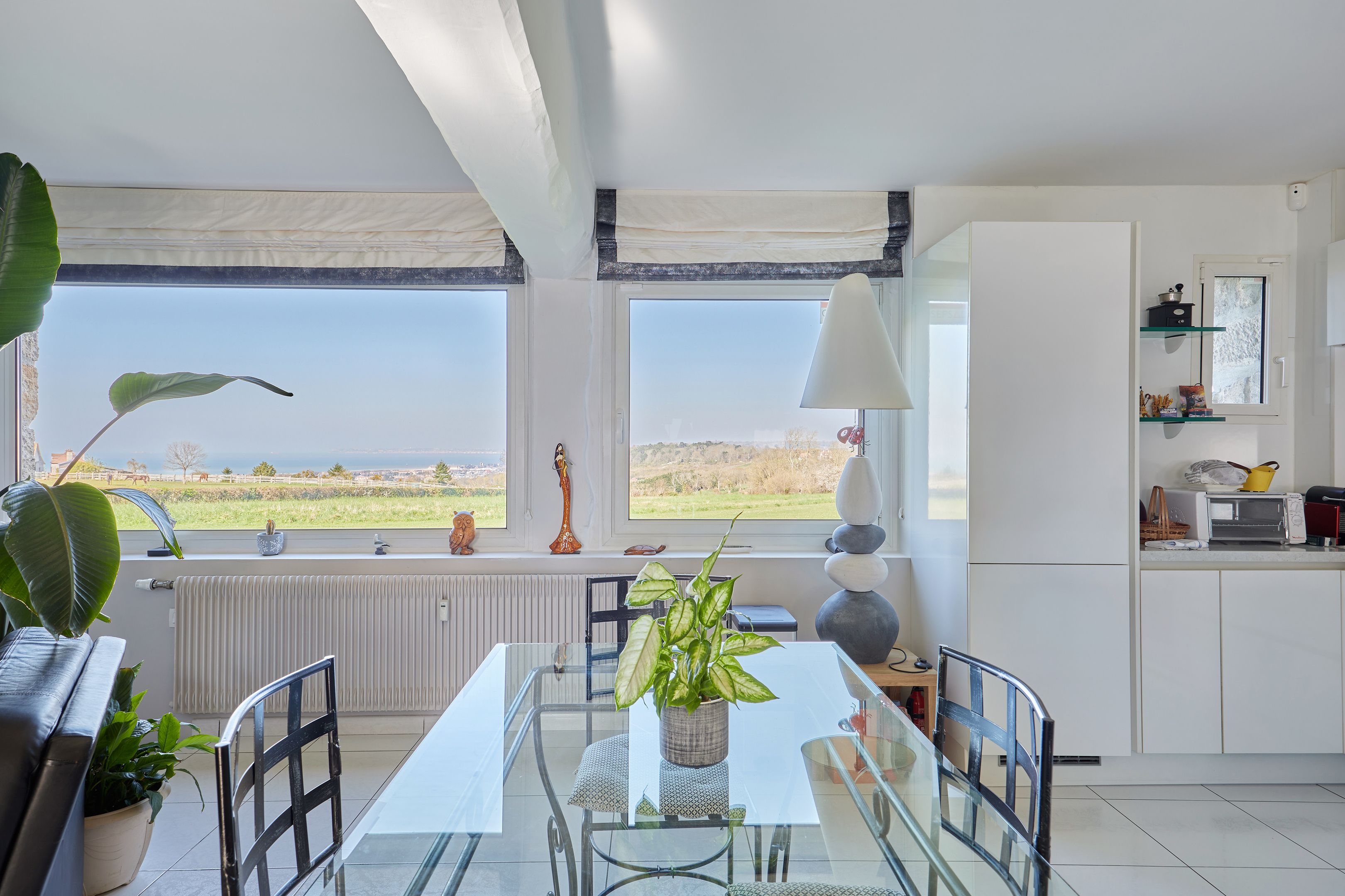 Exclusivité Breteuil - Sur les hauteurs de Tourgéville, en rez-de-chaussée d'une résidence de standing avec gardien au charme normand, appartement en souplex de 71 m². Au 1er niveau : entrée, spacieux séjour traversant avec cheminée offrant un magnifique panorama sur la mer, cuisine ouverte équipée, salle d'eau avec toilettes. Au 2ème niveau : dressing, toilettes, chambre avec salle d'eau. Grande cave carrelée à usage d'atelier et buanderie. Possibilité de créer une 2ème chambre. Parking commun dans la résidence et parc de 7 hectares arboré.