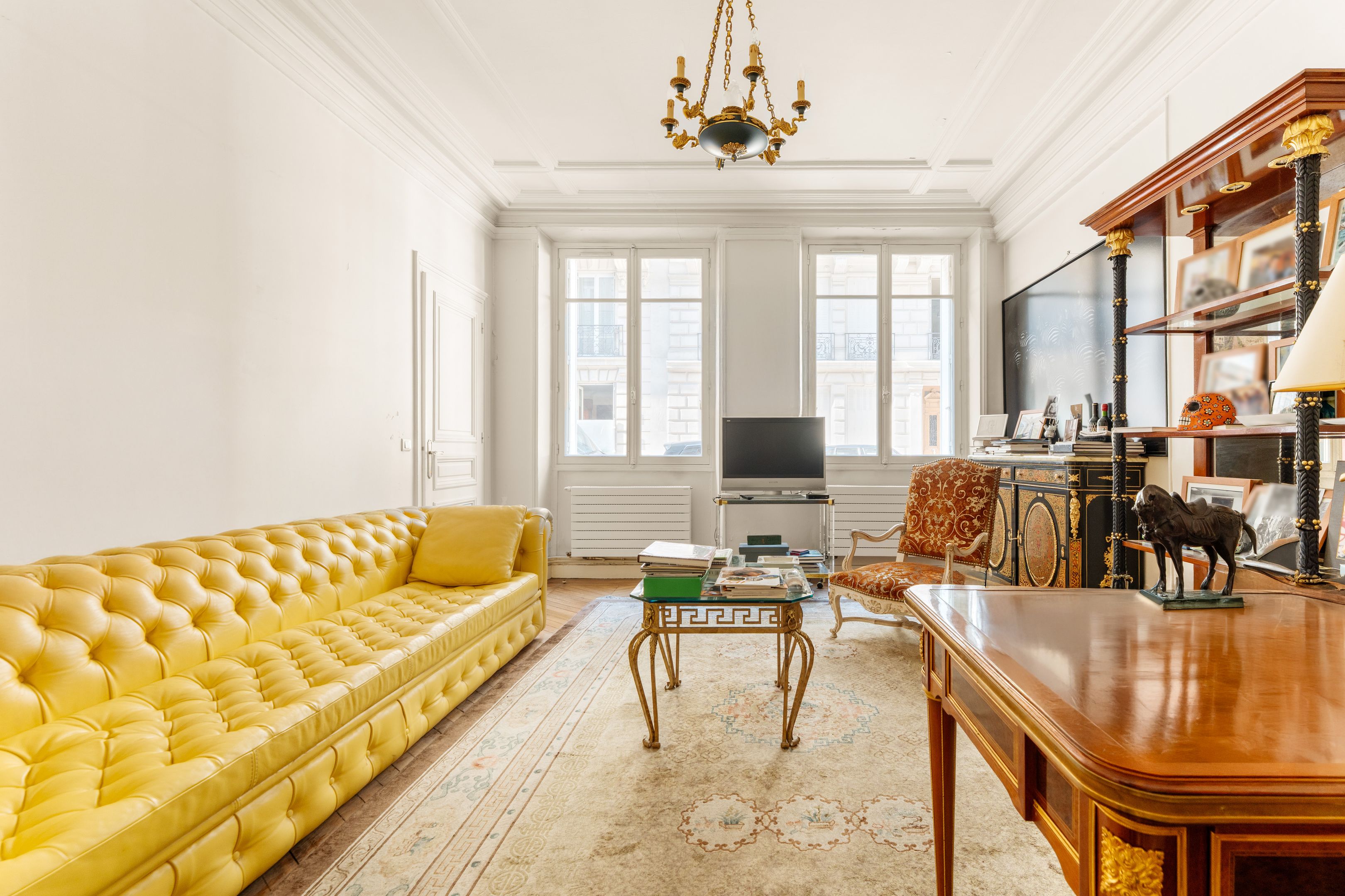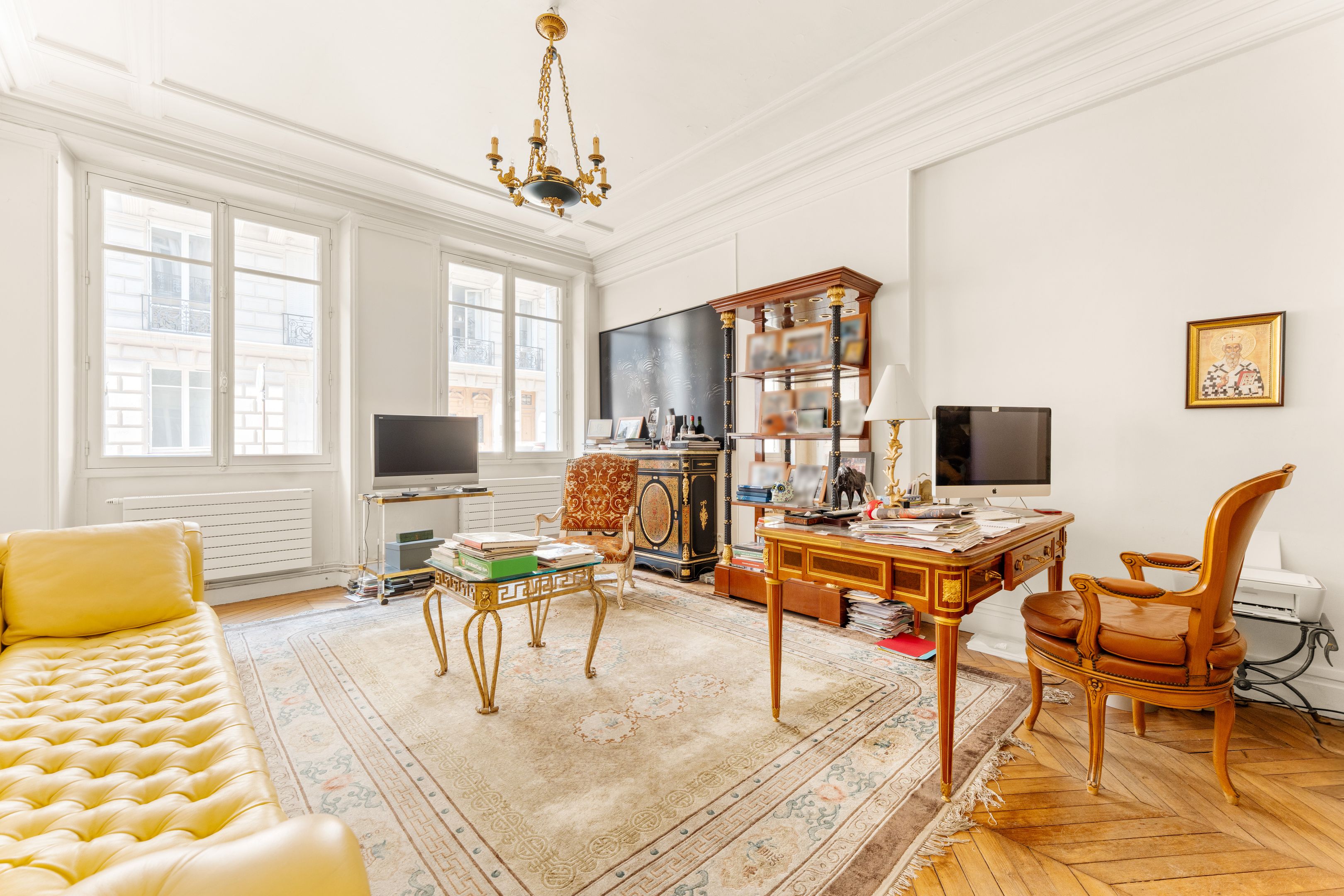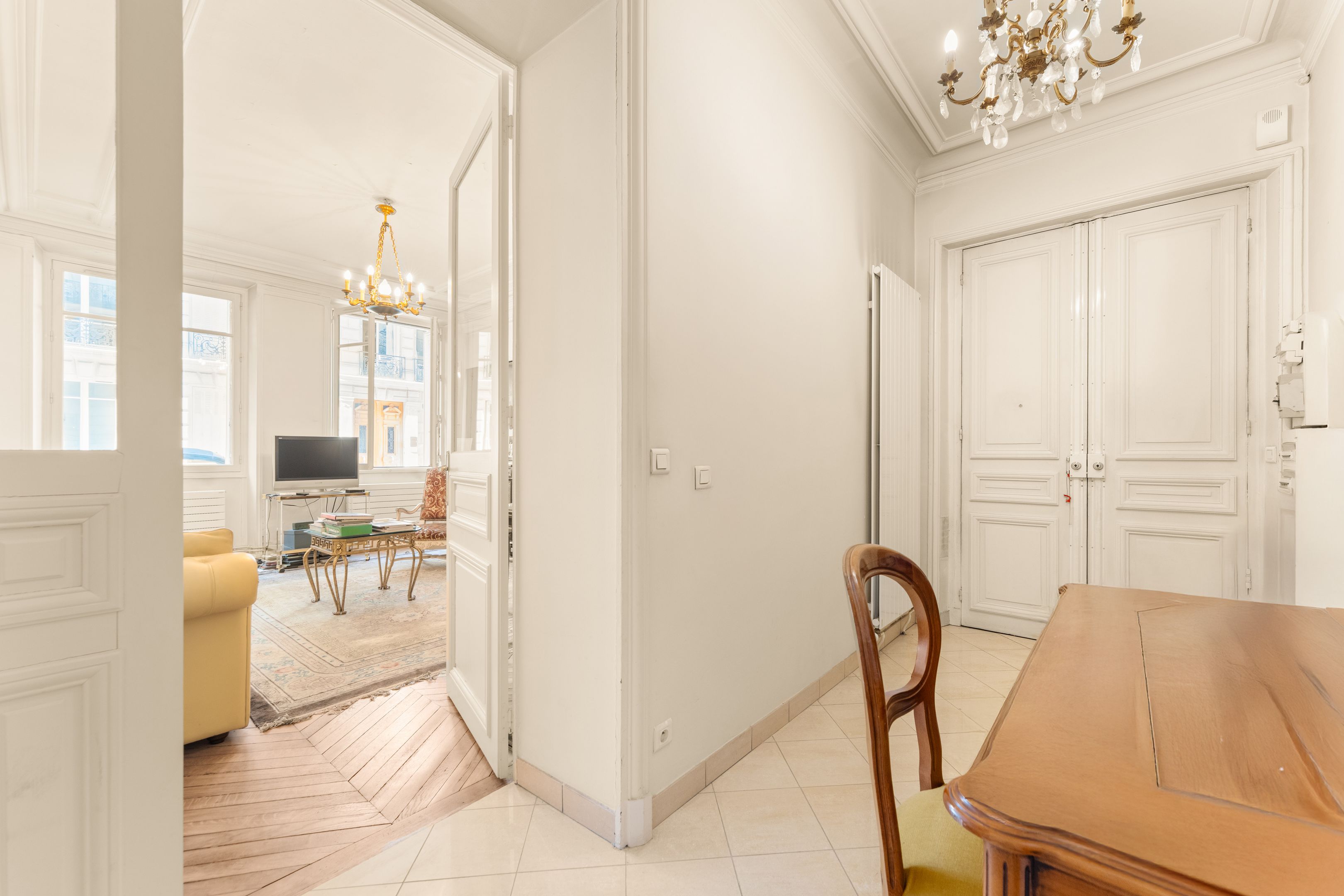 A deux pas du Plaza Athénée, des Champs Elysées et de l'Alma, immeuble haussmannien de standing, appartement de 65m2 de type parquet, moulures, cheminées idéal pour un pied à terre ou une profession libérale.