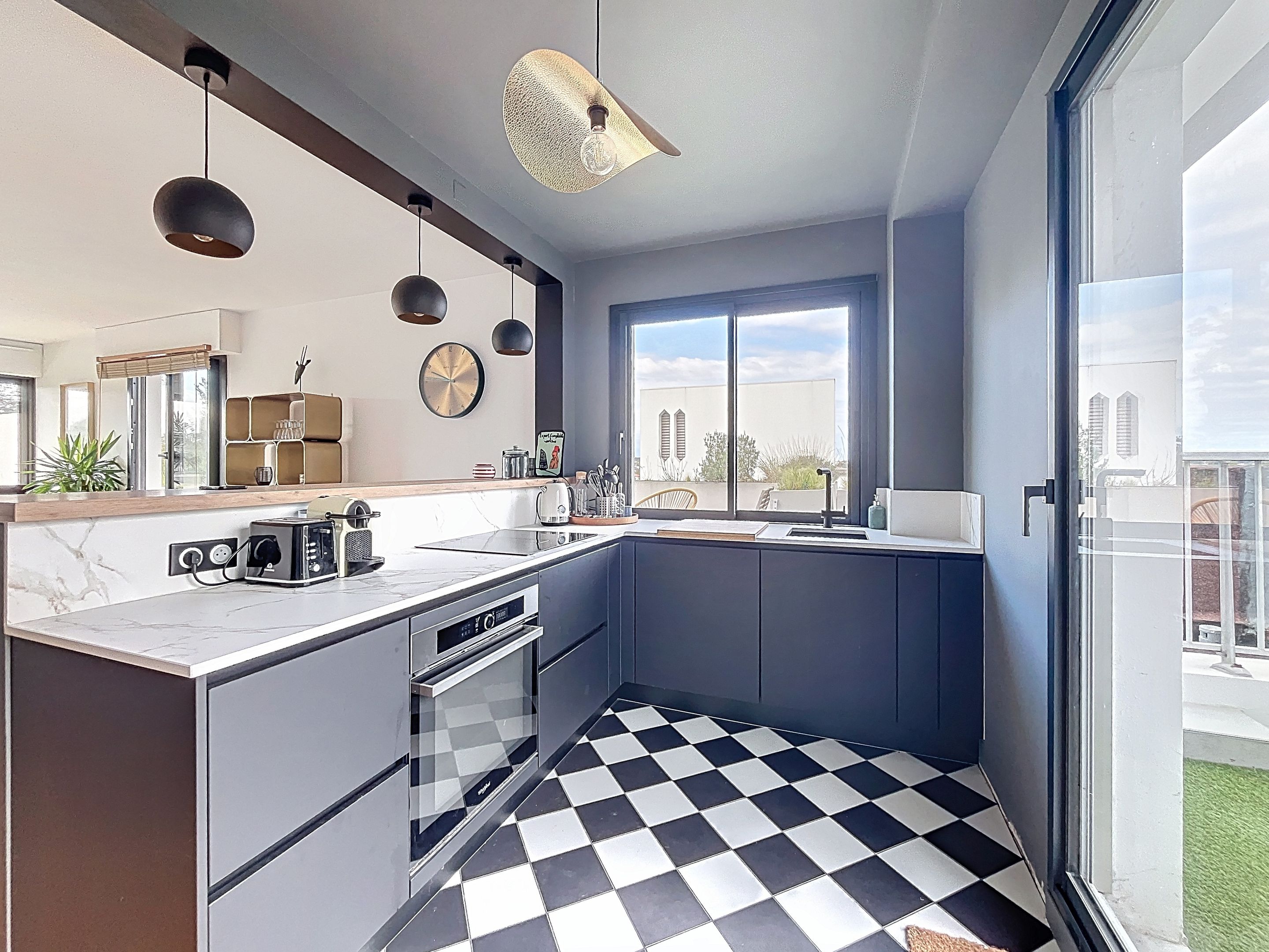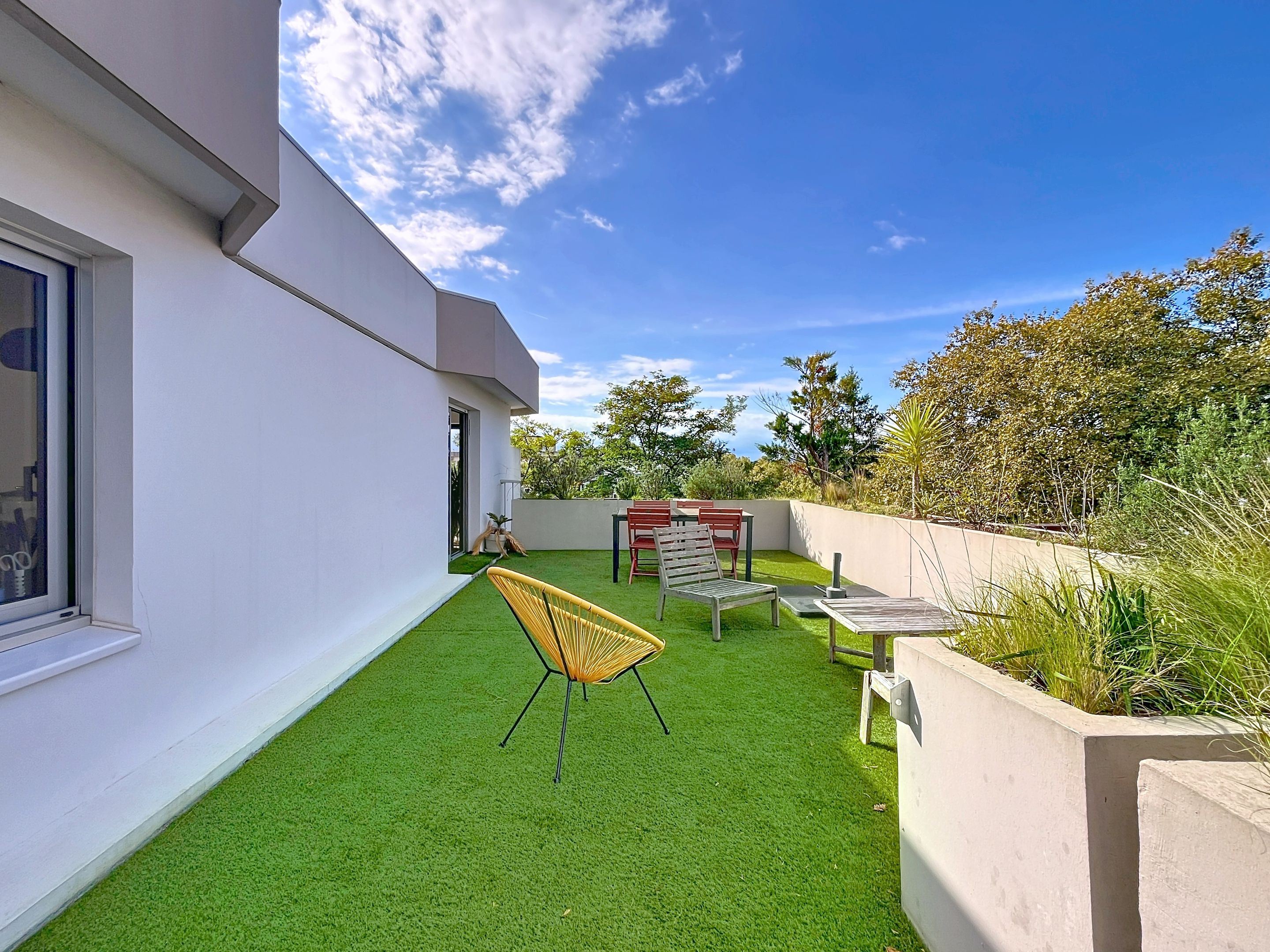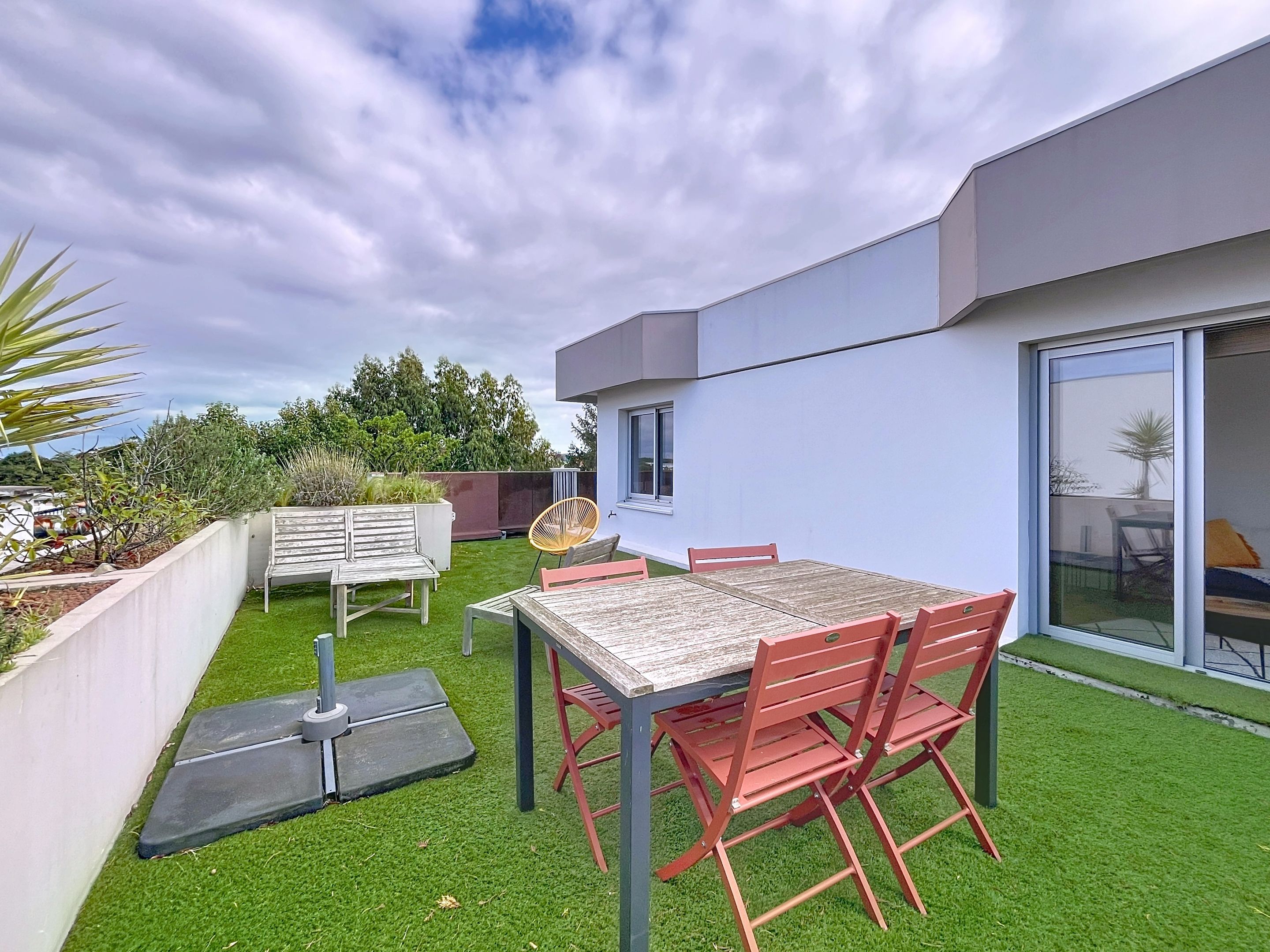 Dans le quartier prisé des Arènes à Bayonne, au sein d'une petite résidence, appartement attique de 69 m² offrant une terrasse exposée sud-ouest de 32 m², sans vis-à-vis. Entrée, salon et cuisine ouverte équipée, chambre parentale et salle d'eau attenante, seconde chambre ouvrant sur balcon filant. Cave et parking privatif.