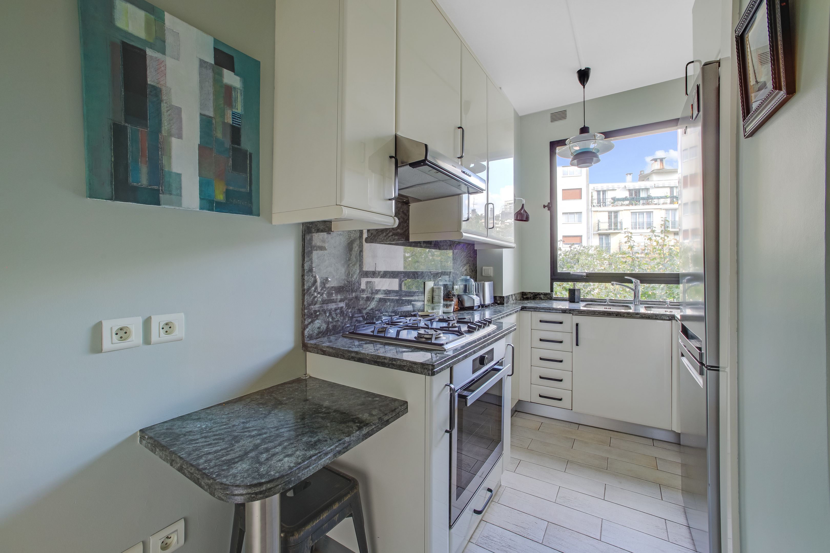 Idéalement situé à deux pas du village d'Auteuil, des commerces de la rue du Docteur Blanche et de l'avenue Mozart, résidence récente de standing aux parties communes entièrement rénovées, au 5ème étage, appartement traversant de 74 m² bénéficiant de vues dégagées et arborées, d'une belle luminosité grâce à sa double exposition est-ouest et d'un plan bien optimisé. Entrée, double séjour, cuisine aménagée et équipée, chambre, salle de bains, nombreux rangements, toilettes séparées. Cave.