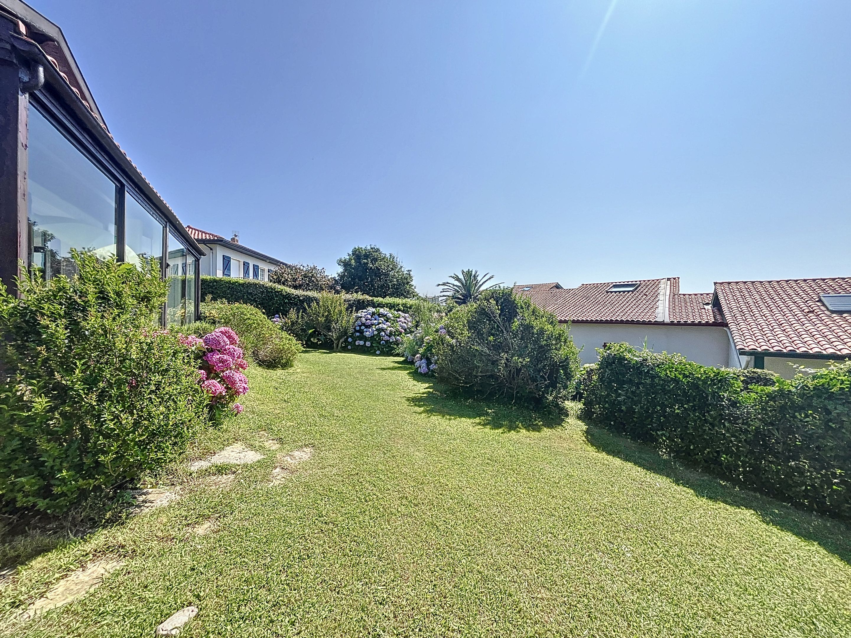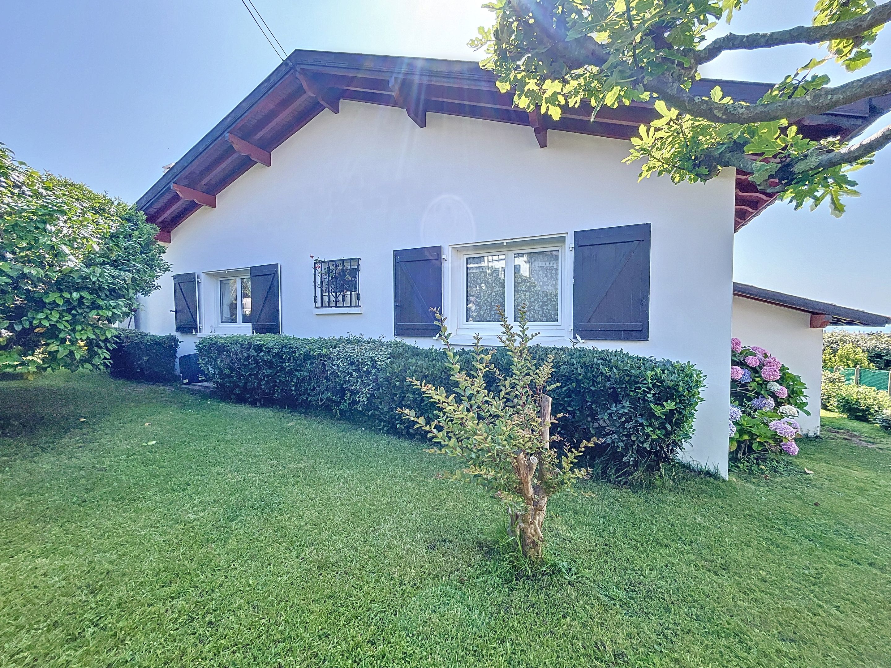 Maison de 90m² idéalement située à 5 min à pied de la plage de la Milady, jardin arboré de 530m², offrant une vue sur l'océan. Entrée, salon ouvrant sur une véranda, cuisine indépendante et cellier buanderie attenant, 2 chambres, salle de bains, combles aménagées, annexe atelier.