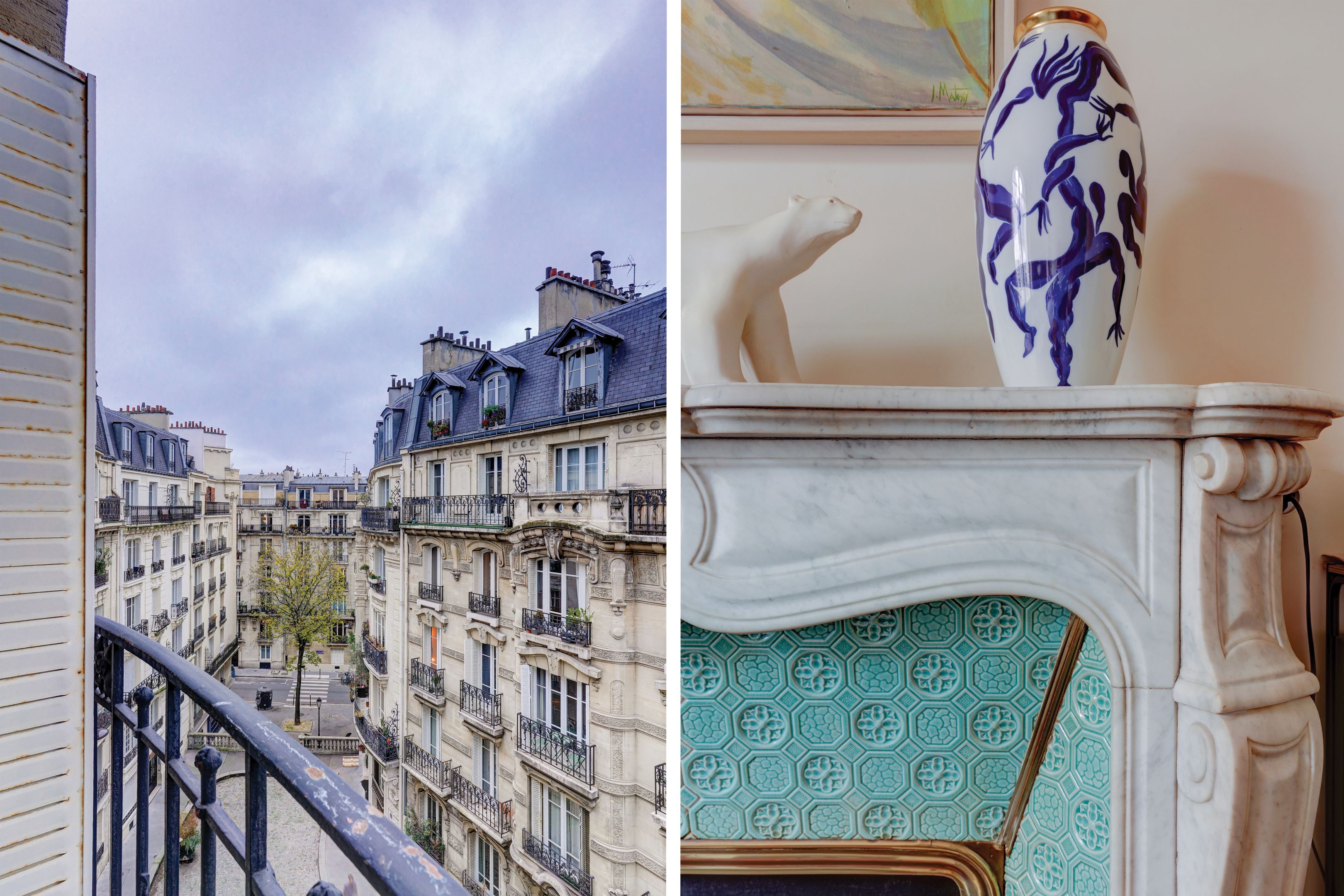 Quartier Lamarck, au quatrième étage desservi par ascenseur d'un bel immeuble haussmannien de 1900. Appartement familial de 89,46 m² au sol (88,82 m² Loi Carrez) vendu loué. Entrée, double séjour, cuisine séparée, deux chambres, dressing, une salle de bains, toilettes séparées. Parquet, moulures et cheminée fonctionnelle. Possibilité d'acquérir une chambre de service, libre, de 10,17 m². Cave.