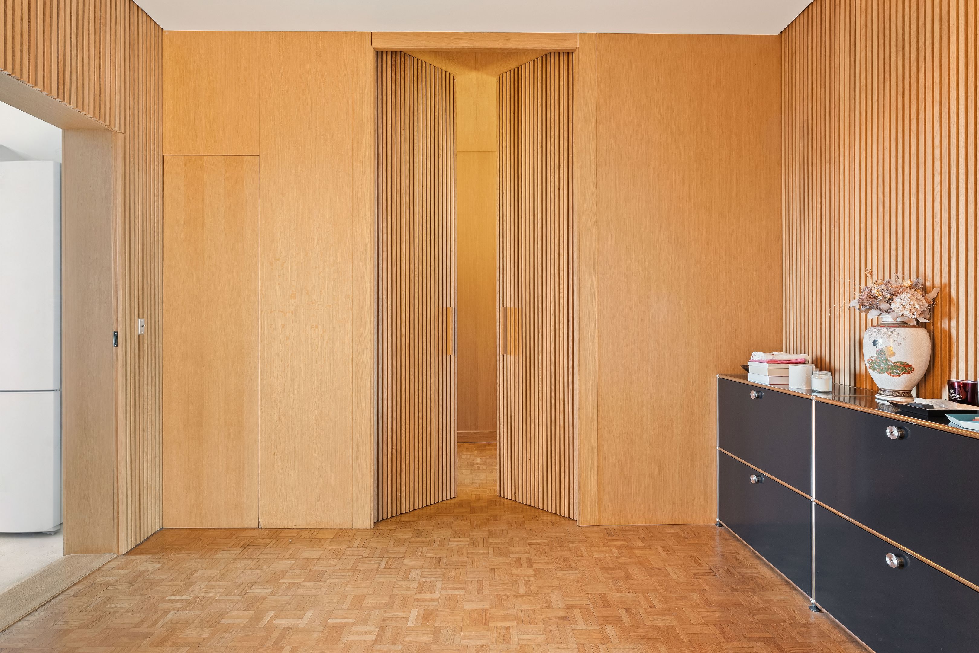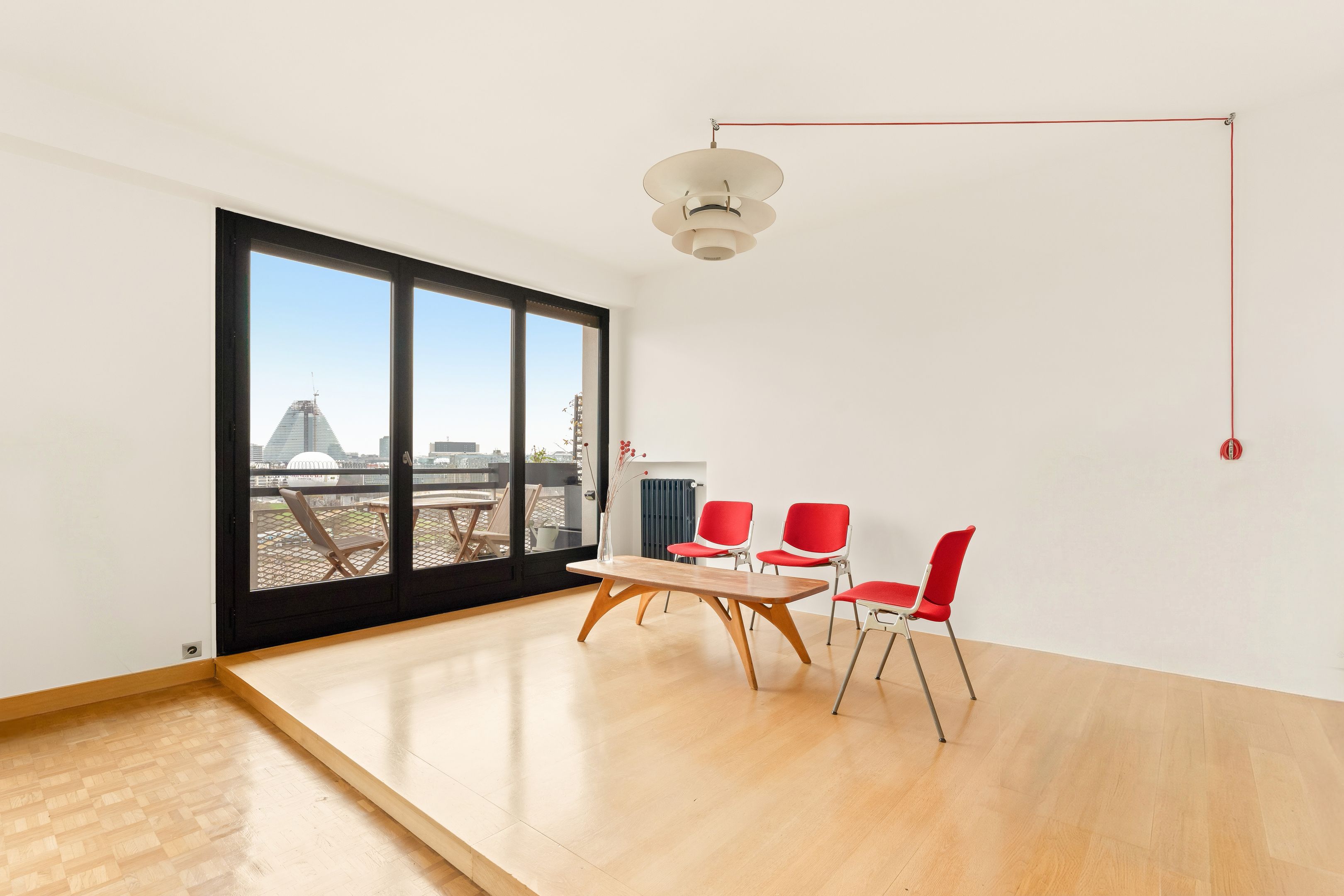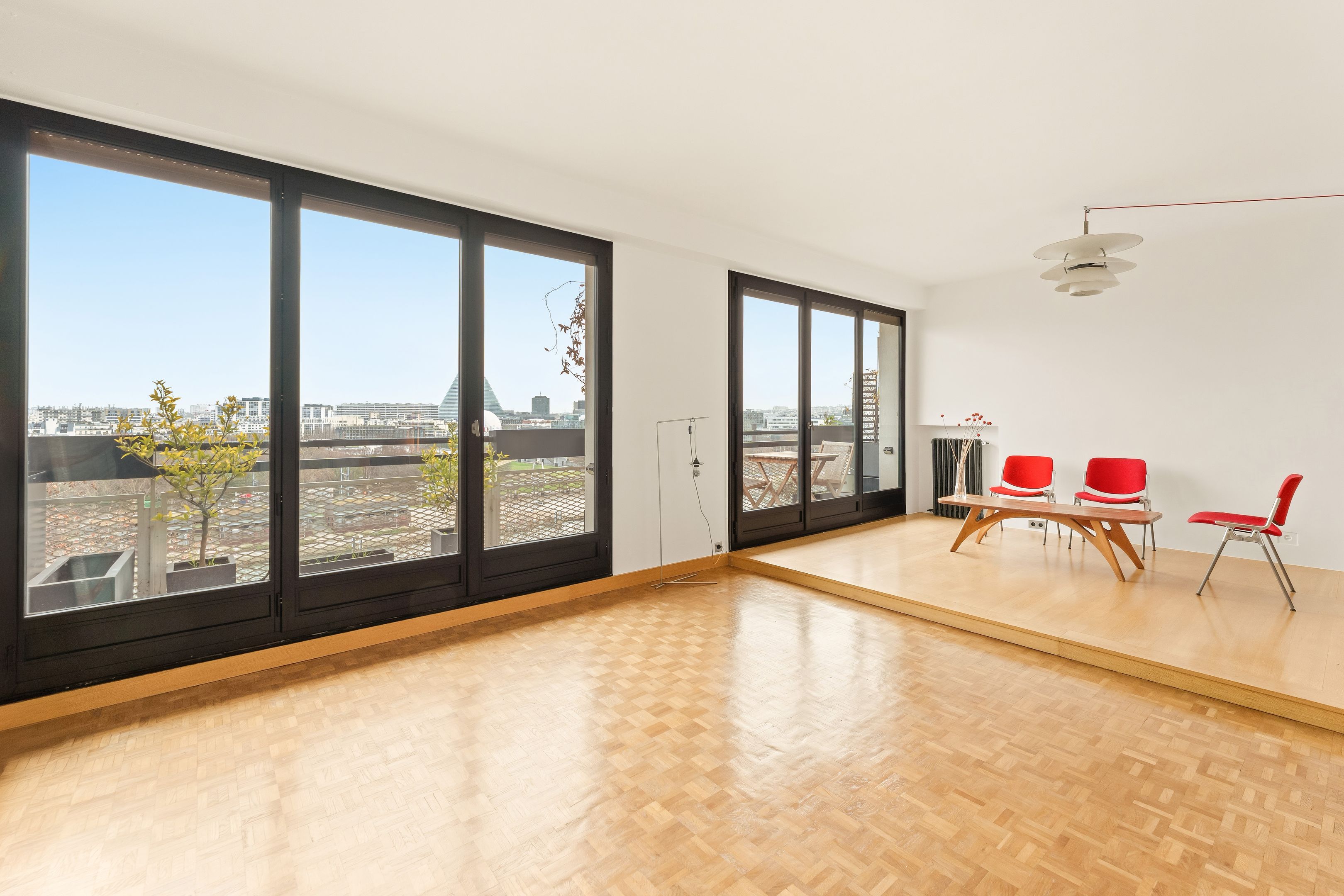 Dans un immeuble semi-récent de bon standing de 1953, à quelques pas de toutes les commodités et des écoles de renom, bel appartement traversant de 94 m² au 8ème étage avec ascenseur. Une grande galerie d'entrée distribue un double séjour lumineux orienté sud-est, donnant sur un balcon filant avec vue sur la Seine et Paris, une cuisine indépendante équipée, de nombreux rangements sur mesure, un couloir avec rangements desservant deux chambres symétriques, une salle de douches avec toilettes et une salle de bains également avec toilettes. L’ensemble a été rénové dans un esprit « mid-century » avec une forte présence de bois vernis et de matériaux de qualité. Cave et place de parking en extérieur.