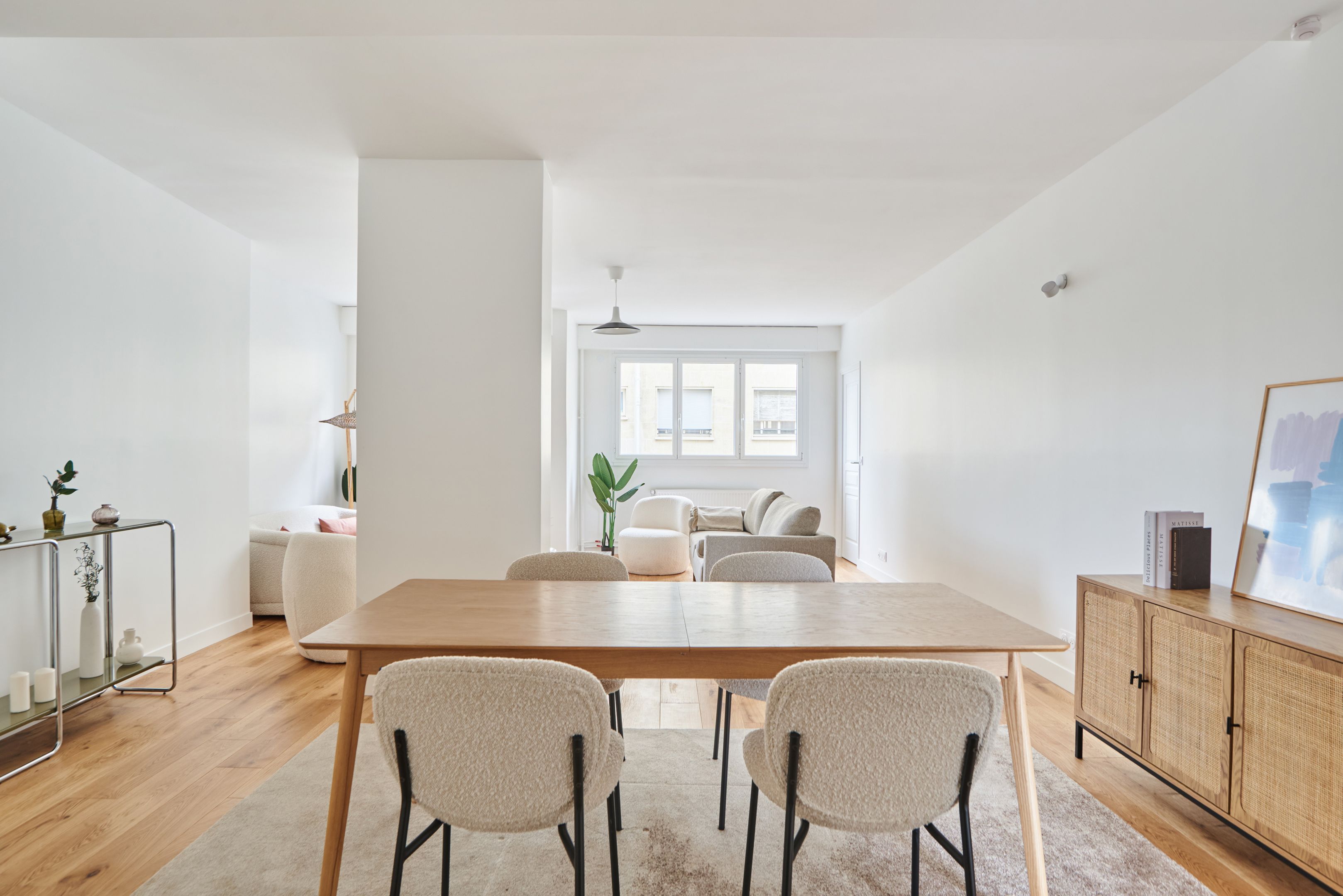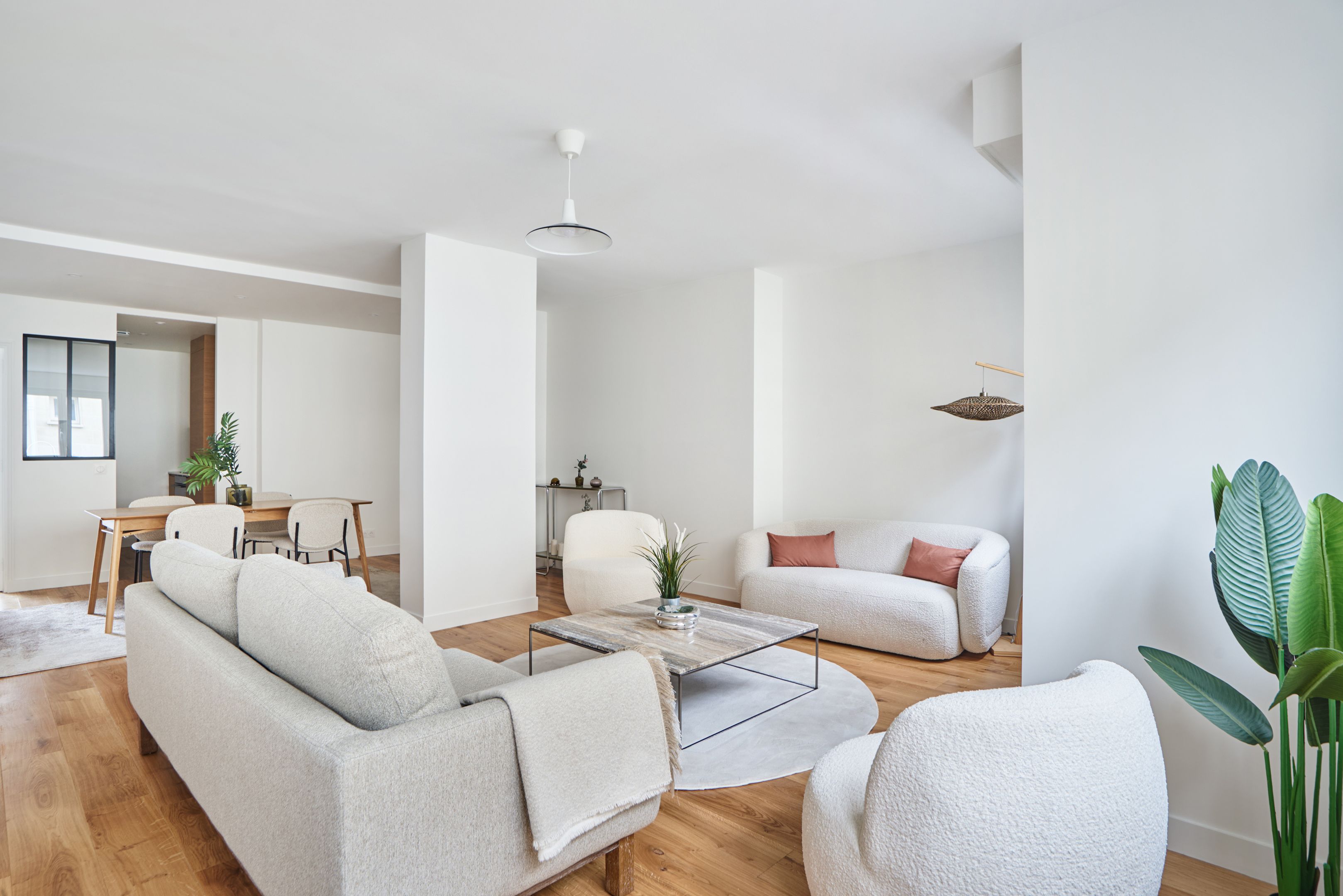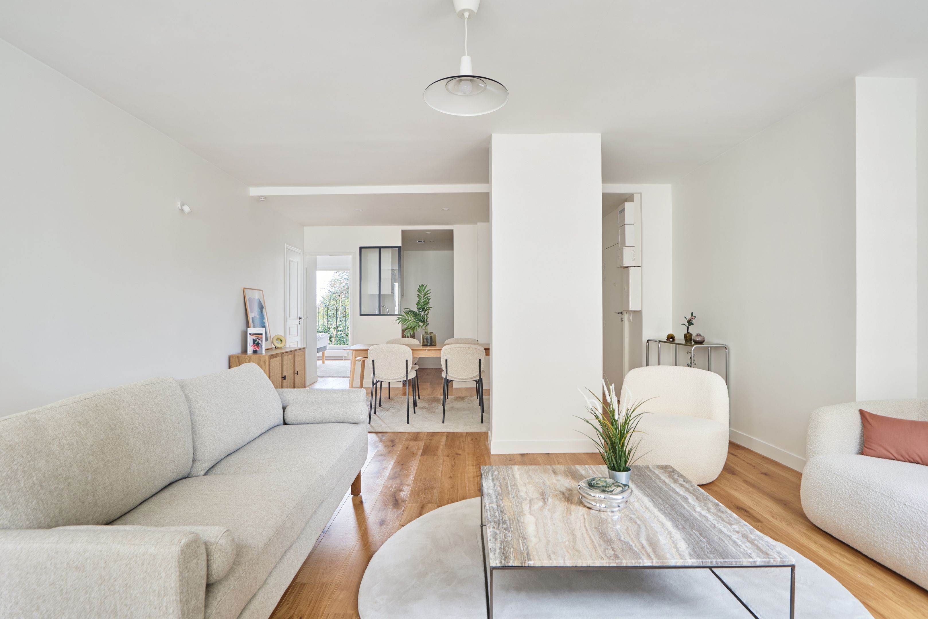 Mozart. Au 3ème étage, appartement de 77,19m² parfaitement rénové. Entrée, vaste séjour de 36,48m², cuisine ouverte aménagée et équipée, deux chambres en suite avec salle de bains et salle d'eau avec toilettes, toilettes invités. Cave. Sectorisation scolaire Jean de la Fontaine. Exclusivité Breteuil.