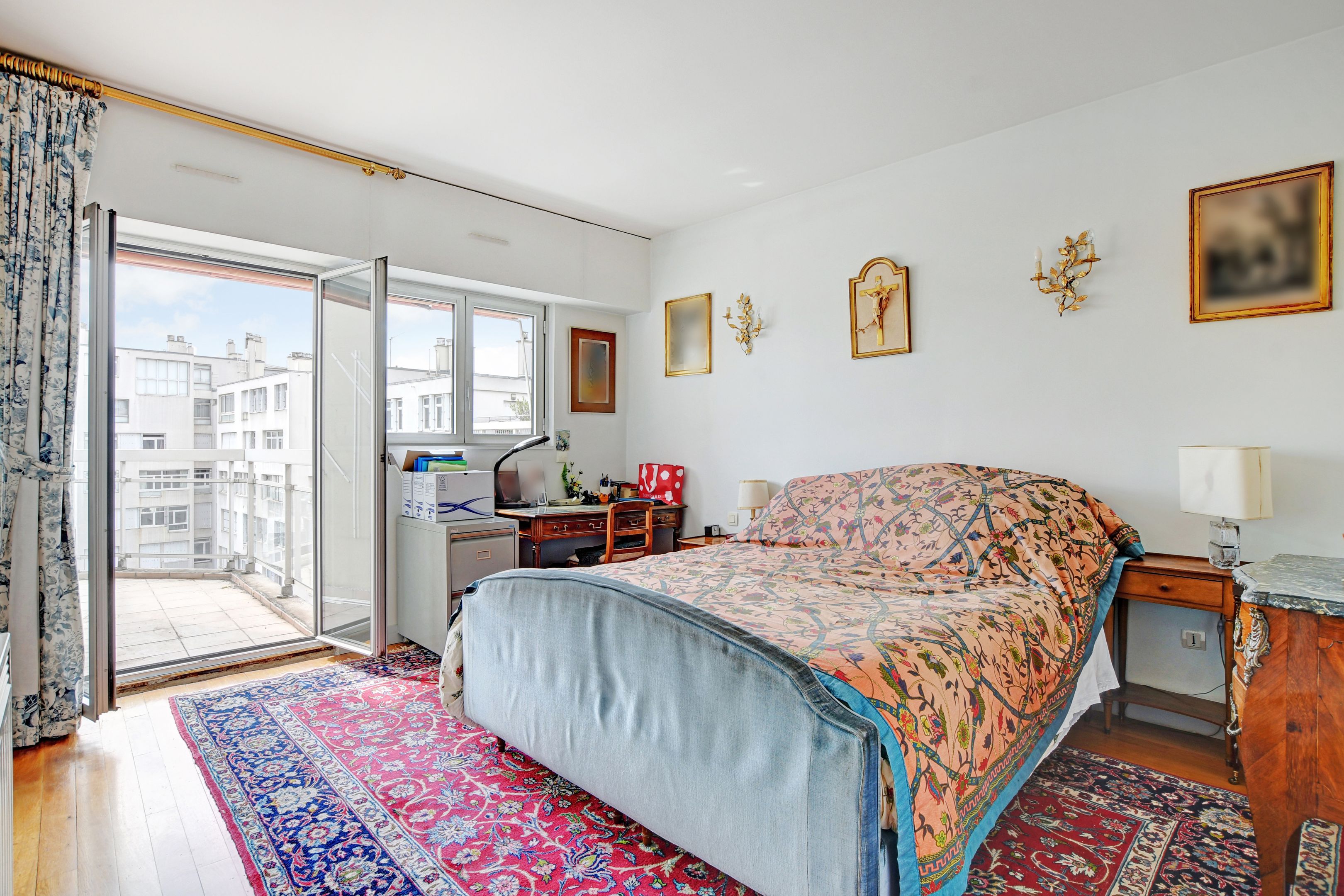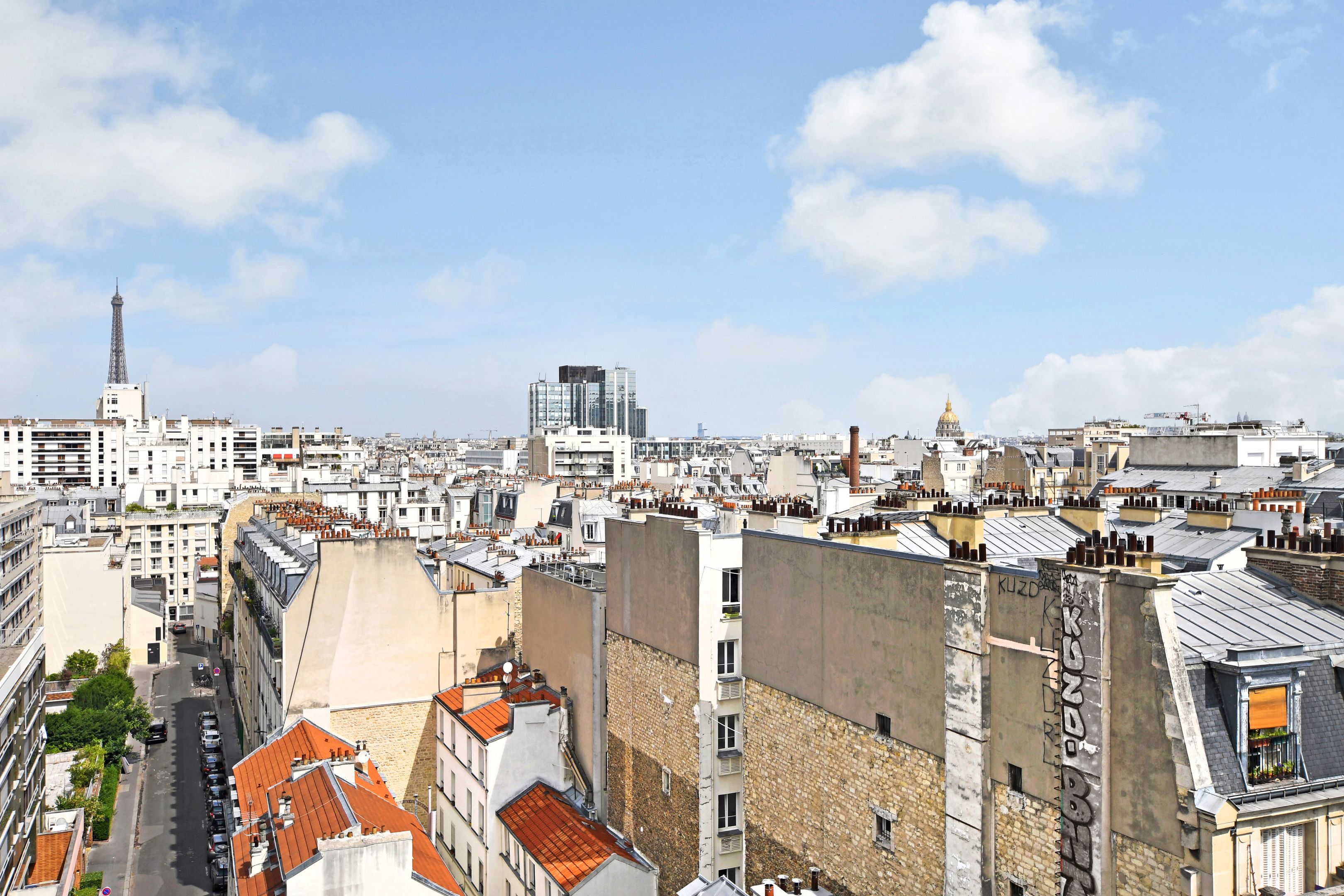 Dans une résidence de service sécurisée (Hespérides), M° Volontaires, bel appartement situé au 9ème et dernier étage, doté d'une terrasse de 19m², d'un balcon de 4m² et bénéficiant d'une belle vue panoramique de Paris et de ses monuments. Entrée, séjour d'angle de taille appréciable, cuisine séparée, 2 chambres (l'une sur rue et donnant sur la terrasse, l'autre sur jardin et donnant sur le balcon), salle de douches, toilettes séparées, buanderie et rangements. En option, un double emplacement de parking boxé (+40 000€).