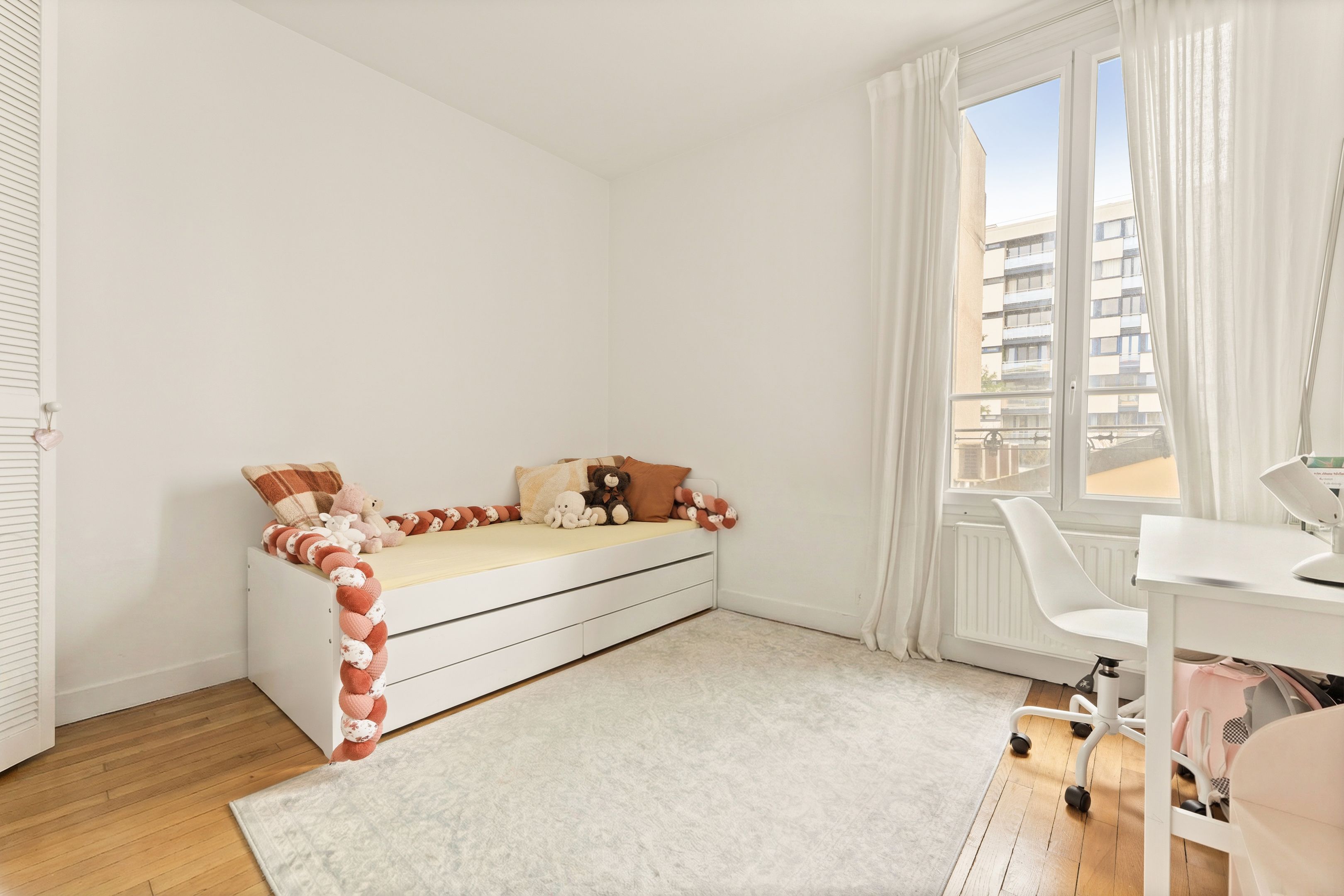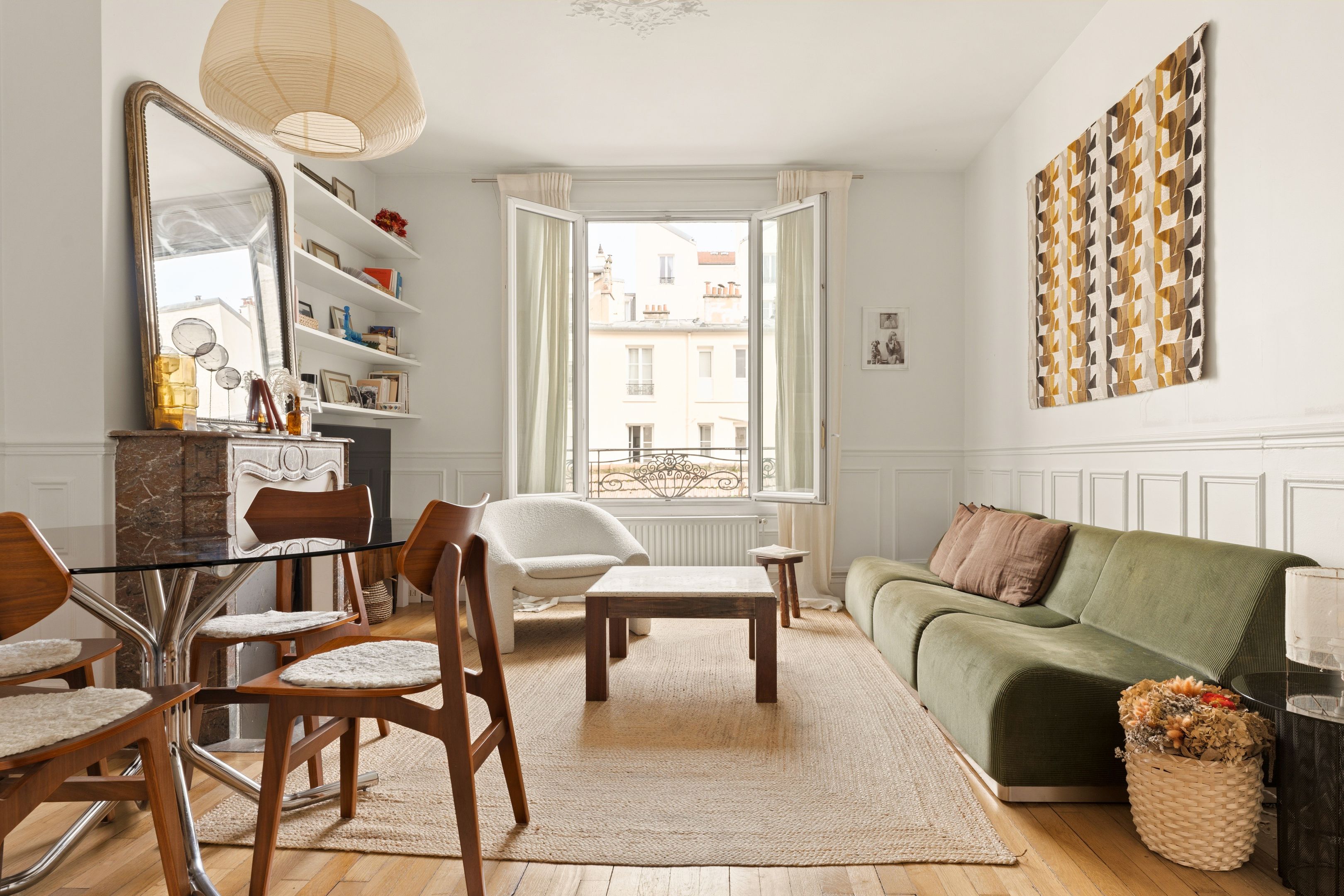 Levallois-Louise Michel. Seul à l'étage dans un immeuble ancien de 1900, appartement traversant en excellent état. Séjour, deux chambres, cuisine indépendante aménagée et équipée, salle de bains et toilettes invités. Nombreux rangements. Cave.