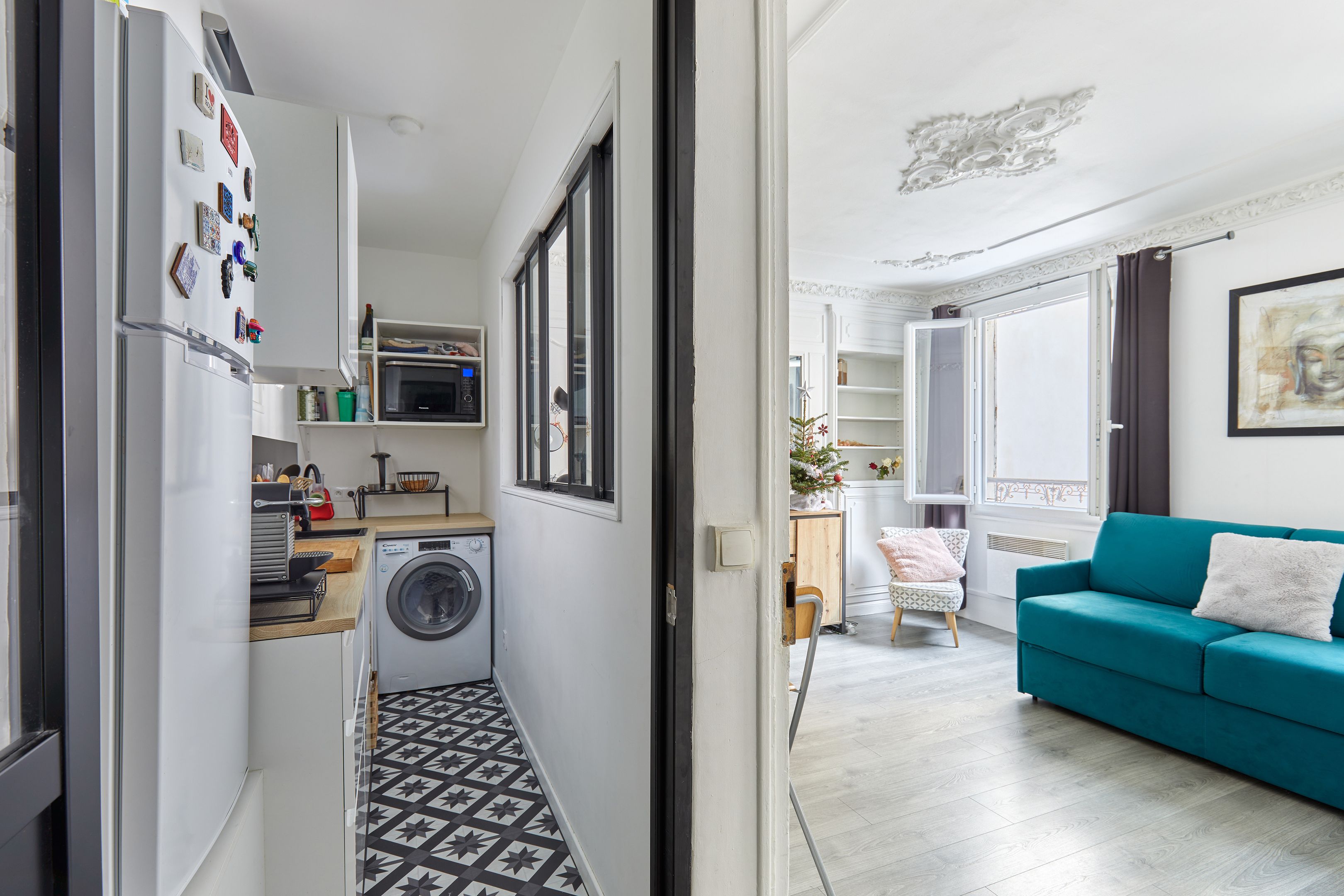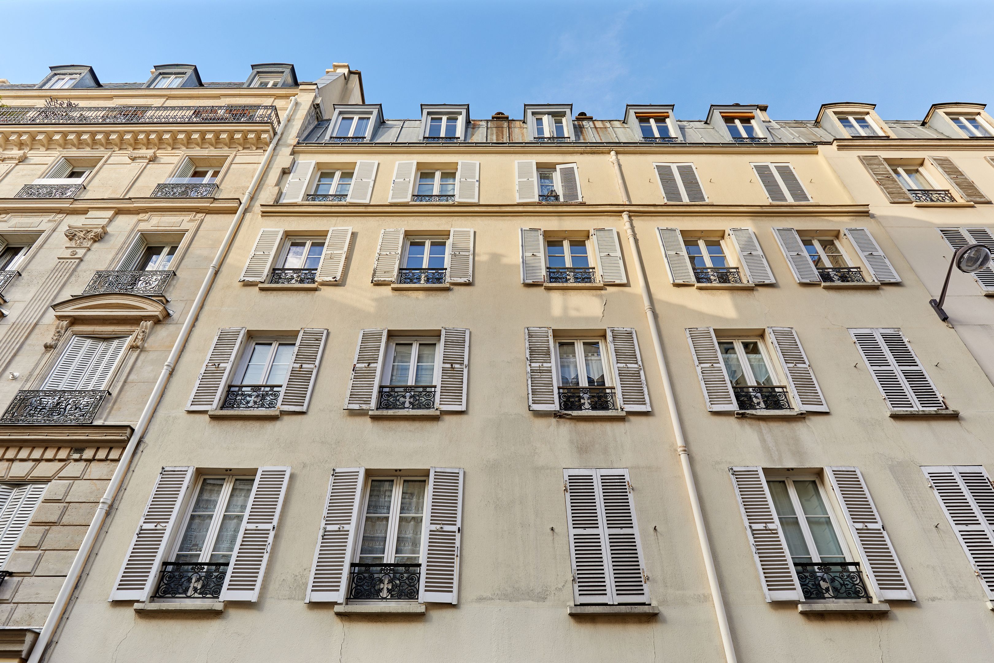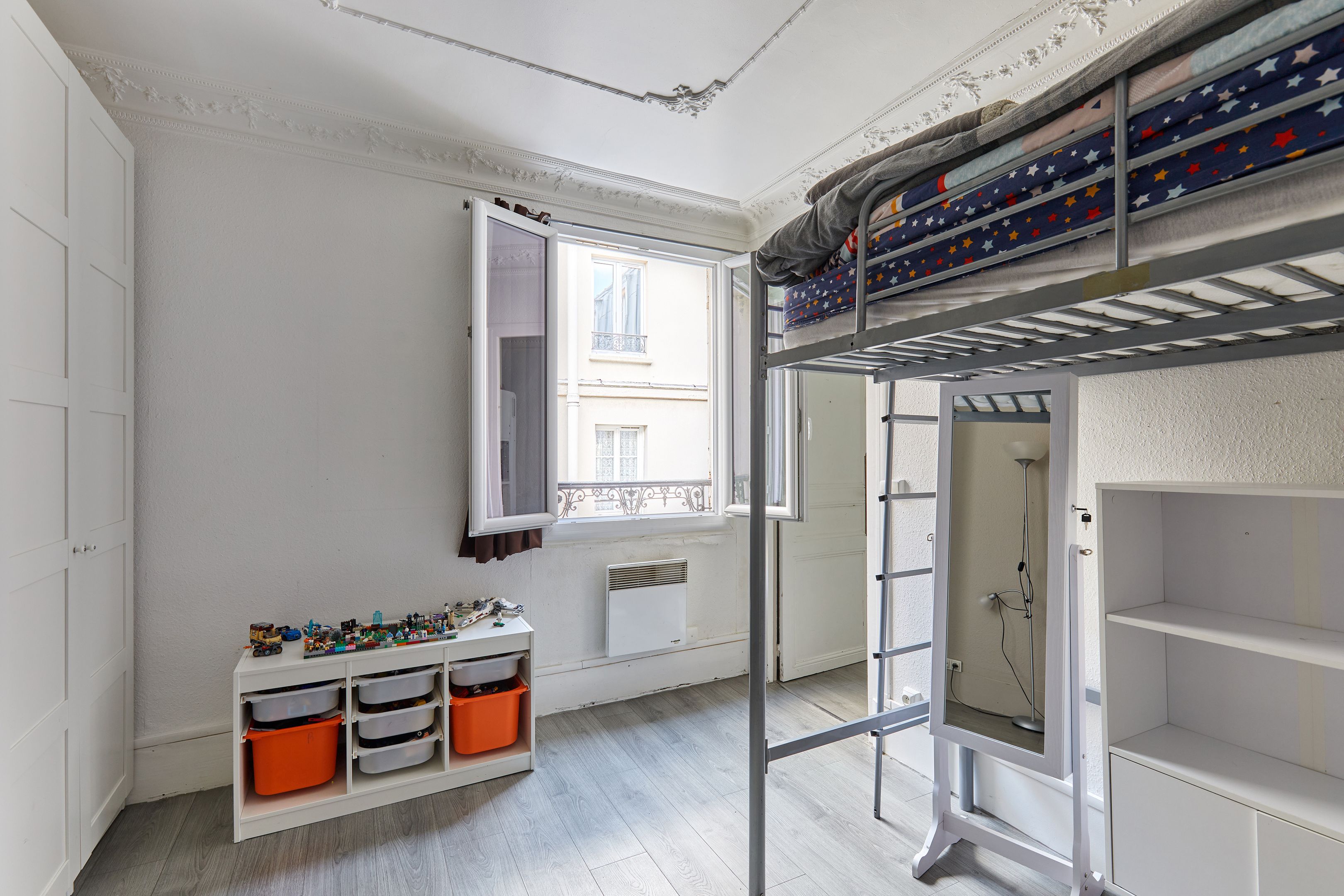 Dans une rue charmante, idéalement localisé au coeur du quartier du marché Levis , cet appartement de 46m² loi Carrez, orienté nord-ouest au calme d'une grande cour dégagée, se situe au 3ème étage desservi par escalier d'un immeuble ancien, plan sans perte d'espace. Entrée, beau séjour, cuisine séparée, deux chambres de belle taille et salle d’eau avec toilettes.