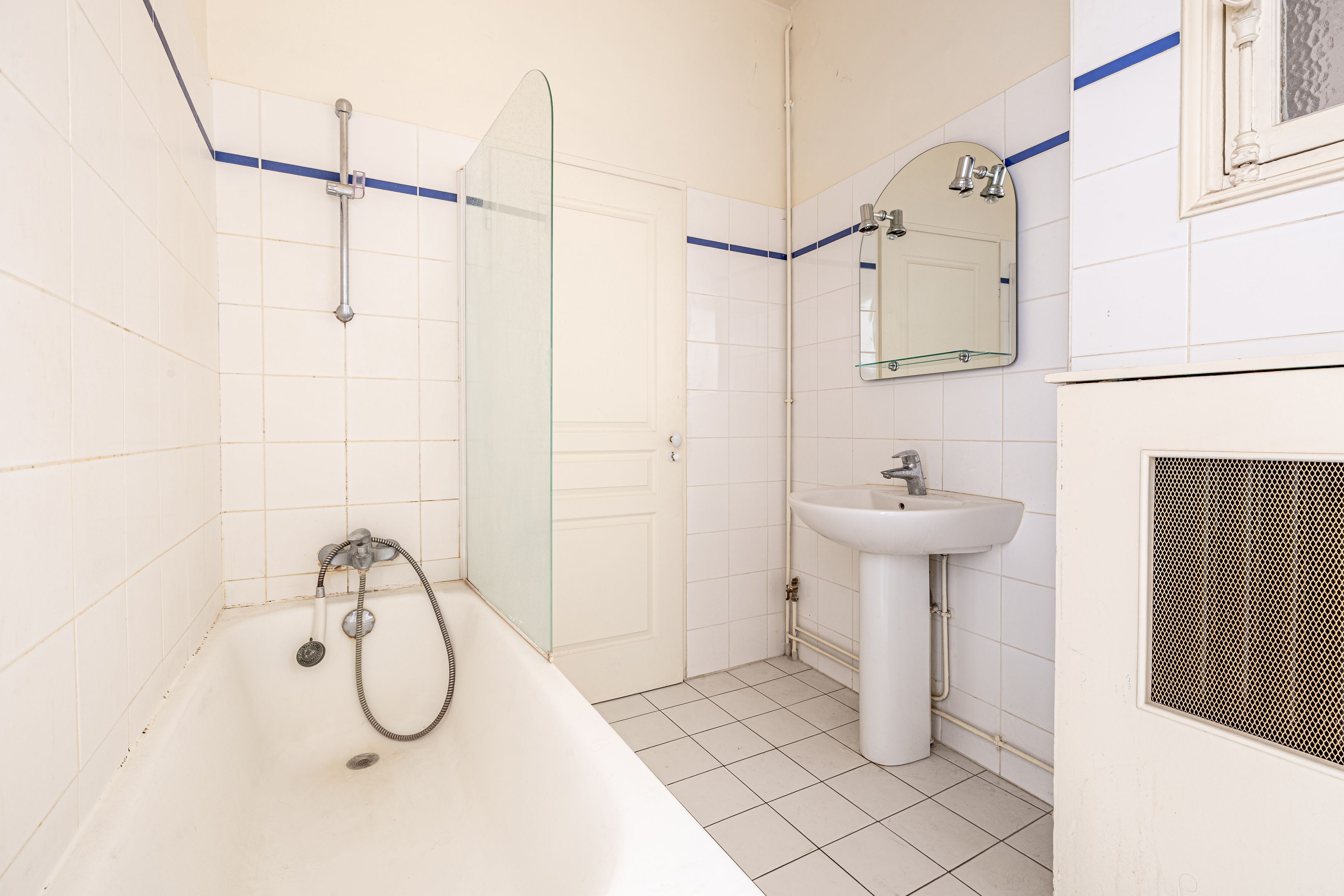 PROFESSION LIBERALE POSSIBLE. Au coeur des nombreux commerces, transports et écoles. Au rez-de-chaussée d'un très joli immeuble ancien pierre de taille de grand standing et sécurisé, bel appartement de 79.44m² loi Carrez (80.89m² au sol) au charme de l'ancien ainsi qu'aux volumes généreux, bénéficiant d'un plan fonctionnel et optimisé. Galerie d'entrée, réception, deux chambres dont l'une avec point d'eau, la seconde donnant accès à une salle de bains, cuisine séparée ouvrant sur deux terrasses/courettes, toilettes séparées, dégagement, nombreux rangements. Un débarras indépendant. Cave. Exclusivité BRETEUIL.