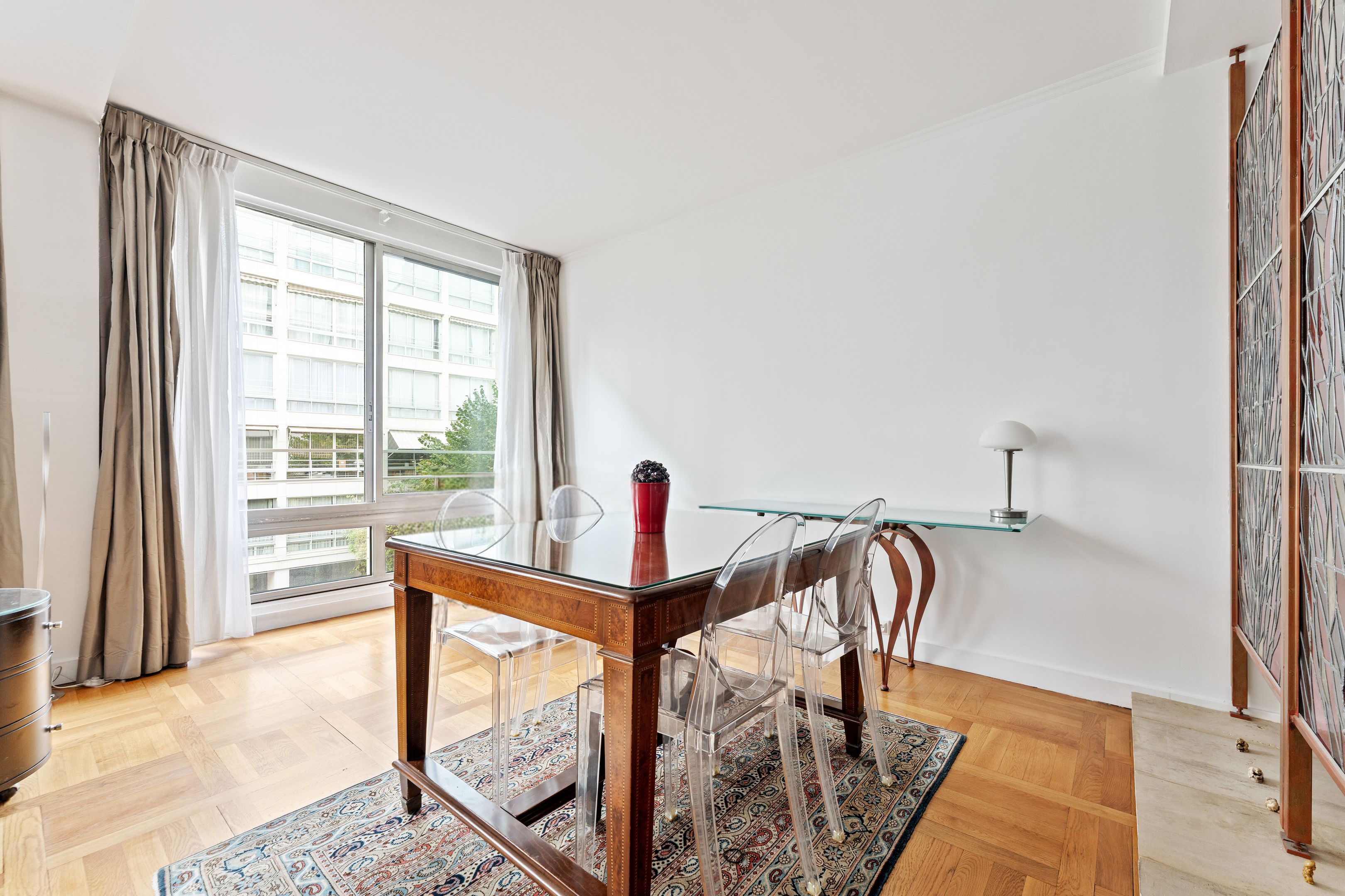 Idéalement situé au cœur des nombreux commerces, transports et bonnes écoles de Passy. Au deuxième étage desservi par ascenseur d'une agréable résidence milieu XXème de standing, sécurisée et arborée, joli appartement familial et lumineux d'une surface de 105,86 m² loi Carrez bénéficiant d'un plan parfait sans aucune perte d'espace, d'un calme absolu, ainsi que d'un bel ensoleillement grâce à son orientation au sud-ouest. Entrée, vaste séjour, cuisine séparée aménagée (3ème chambre possible), dégagement, deux grandes chambres, salle d’eau avec toilettes, salle de bains avec toilettes, nombreux rangements. Cave. Possibilité d'acquérir un emplacement de parking dans un immeuble voisin au prix de 55 000 €. Exclusivité Breteuil.