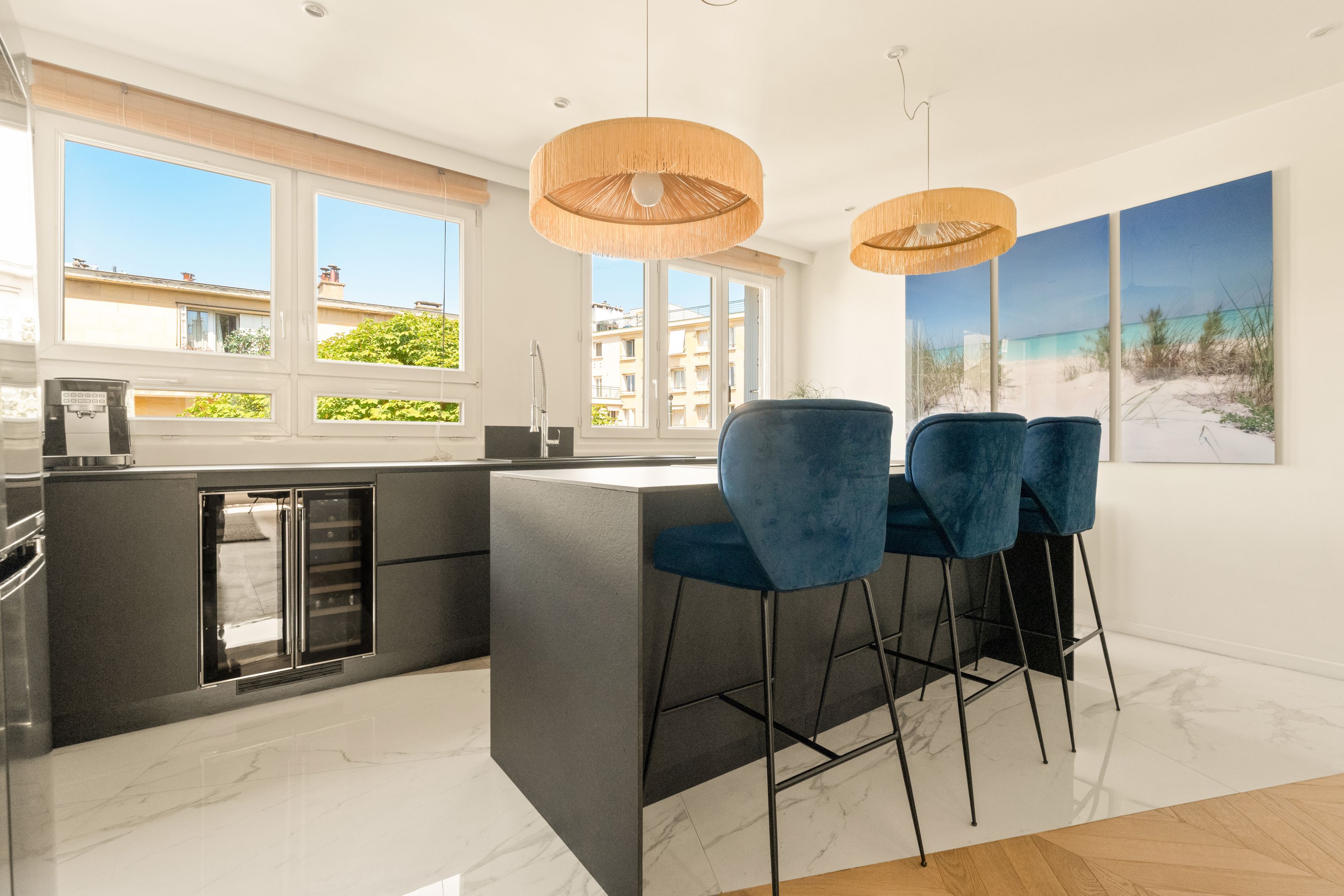 Situé dans une rue au calme de Neuilly, au sein d’un bel immeuble d’une copropriété de bon standing. Appartement de 83,65 m² en parfait état au deuxième étage, traversant et lumineux. Entrée, séjour avec balcon, salle à manger (2ème chambre possible) plein ouest, cuisine individuelle équipée et aménagée, une chambre, nombreux rangements, salle d'eau, toilettes. Cave. Possibilité d'acquérir en sus un box de 16m².