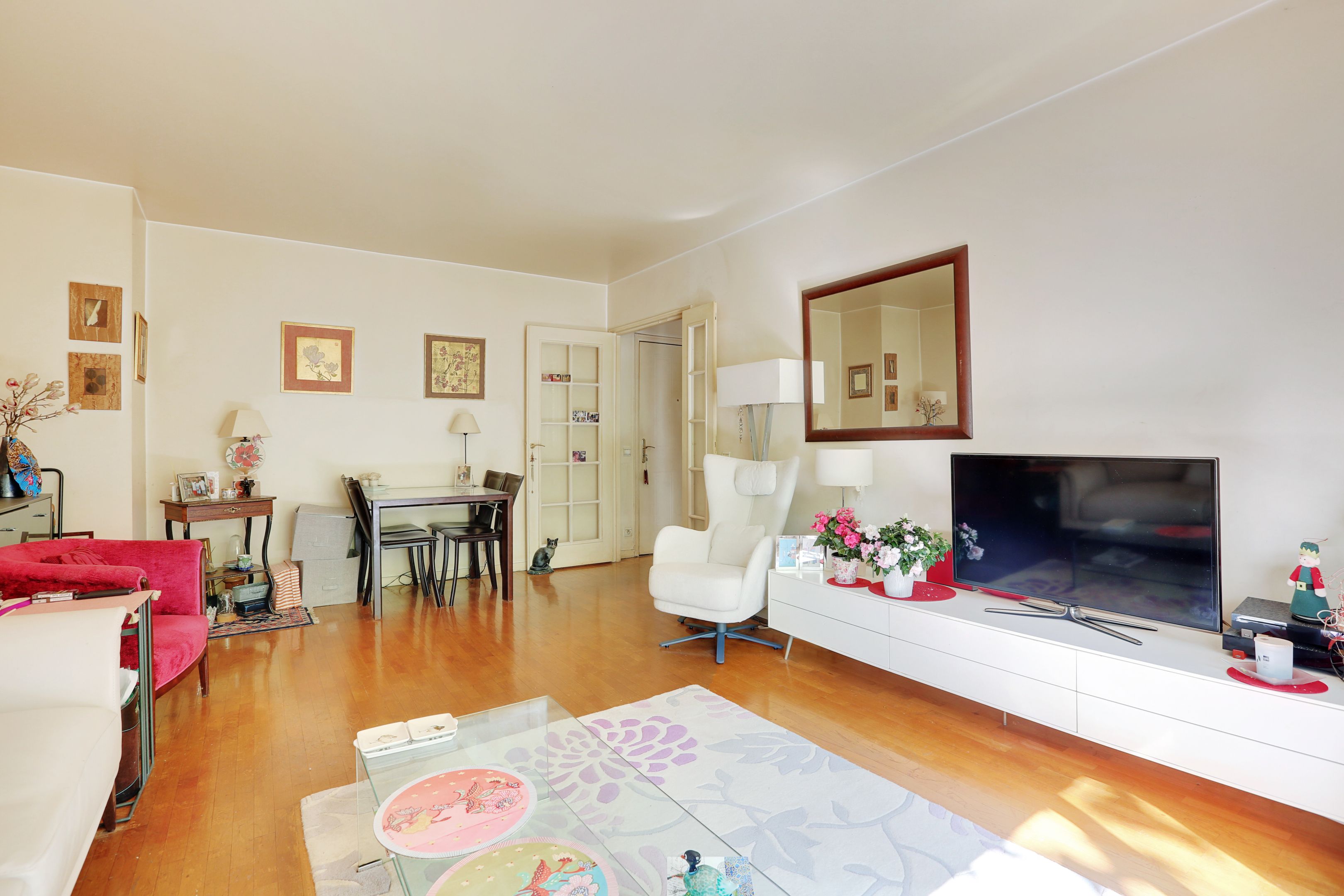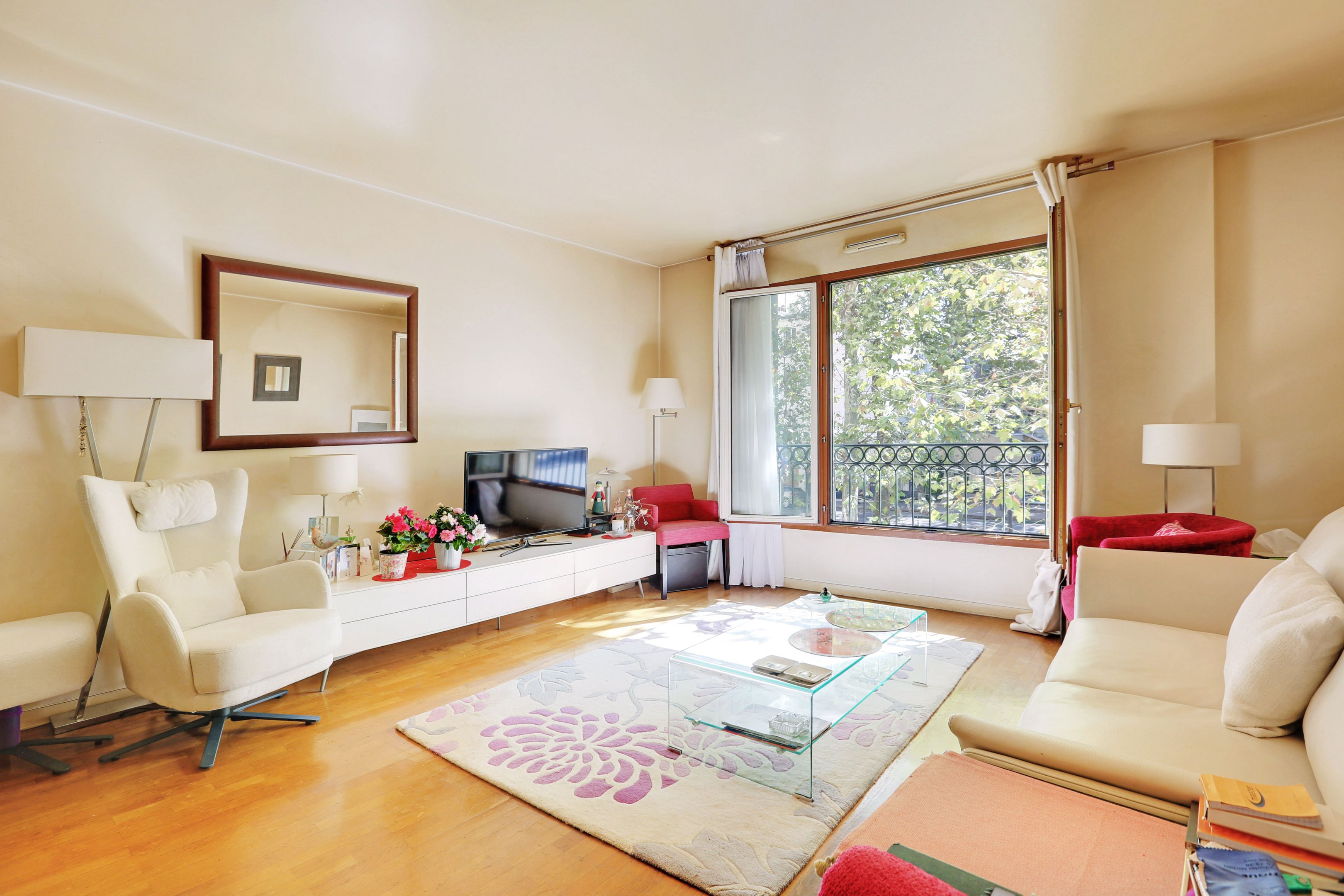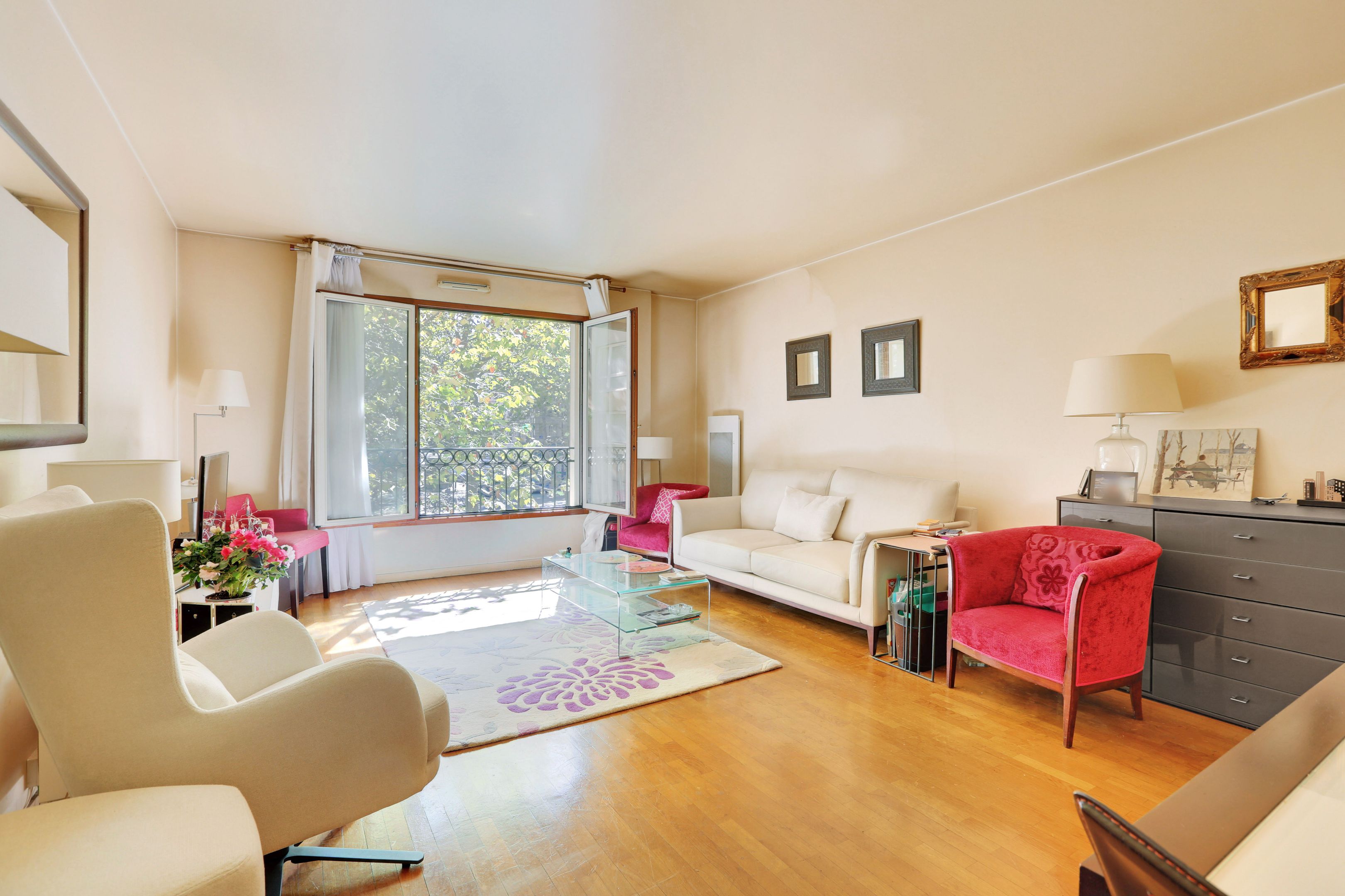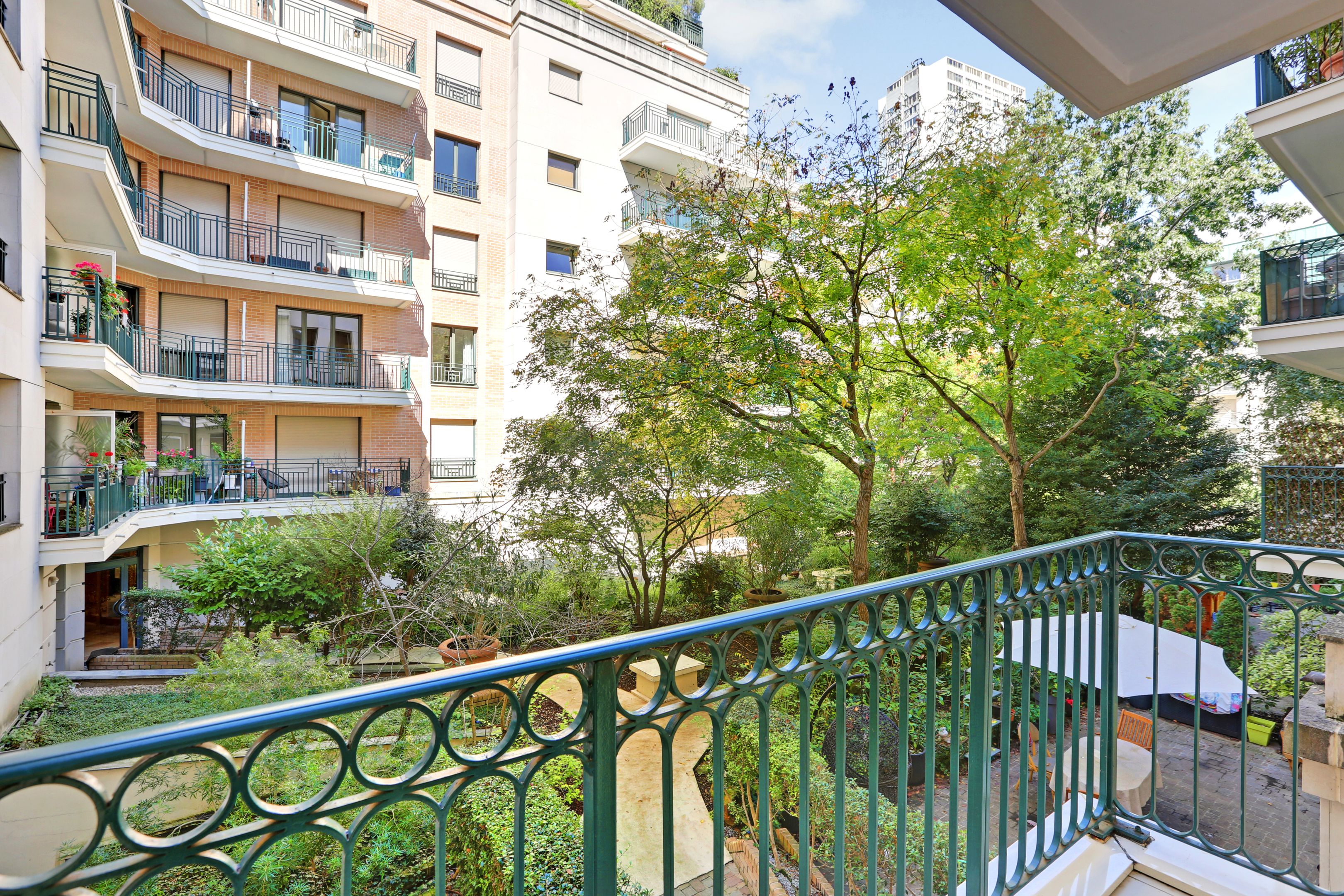 Immeuble moderne de standing avec gardien, bel appartement situé au 1er étage desservi par ascenseur, donnant sur une jolie place arborée, doté d’un balcon, lumineux, traversant et bénéficiant d'une agréable vue dégagée de part et d'autre. Entrée, séjour de taille appréciable, cuisine séparée, 2 chambres (dont une donnant sur jardin et ouvrant sur le balcon), salle de bains, toilettes séparées, rangements et cave. Emplacement de parking possible dans l’immeuble (+30 000€).