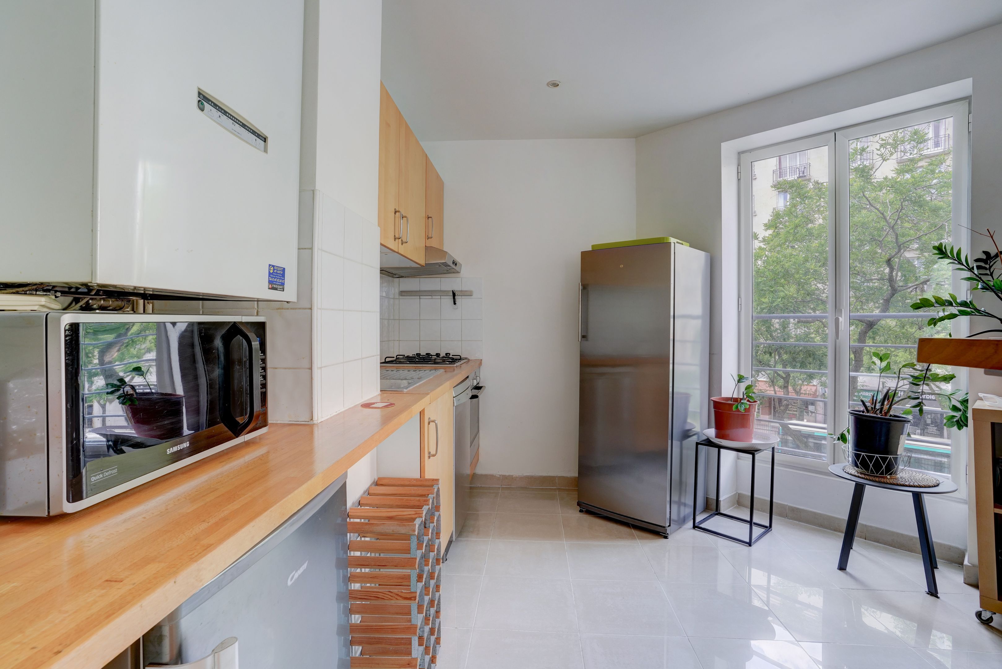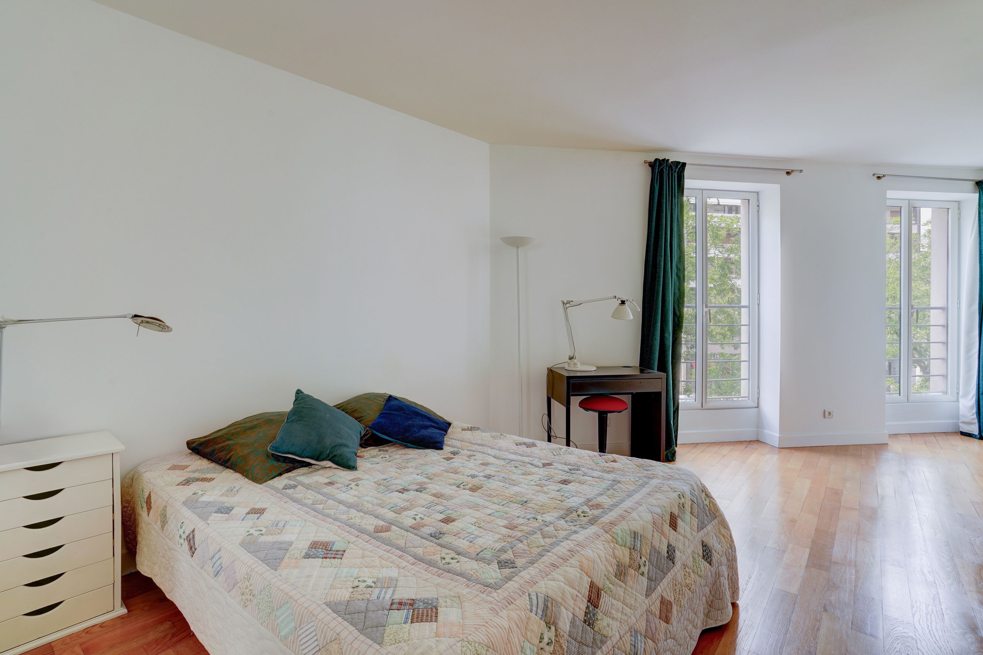 Immeuble moderne (2002) très bien entretenu et situé à quelques pas du marché de l'avenue de Versailles. Au 2ème étage desservi par escalier, appartement d'environ 97m² bénéficiant de vues dégagées, d'une belle luminosité et d'un calme parfait. Entrée, séjour, cuisine ouverte, grande chambre avec salle de bains, deuxième chambre avec salle d'eau, nombreux rangements, toilettes séparées. Possibilité de créer une troisième chambre et d'acquérir un emplacement de parking en supplément.