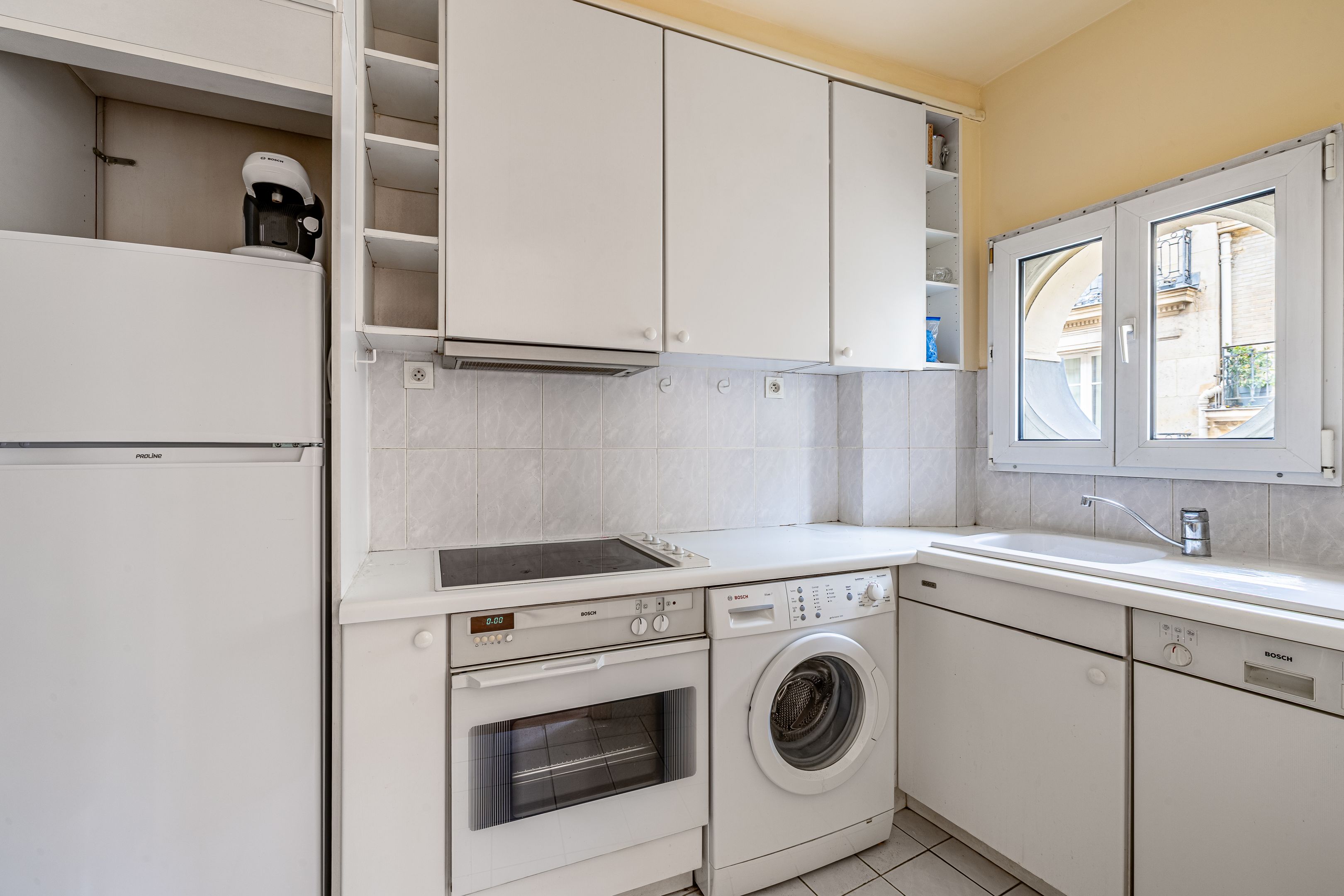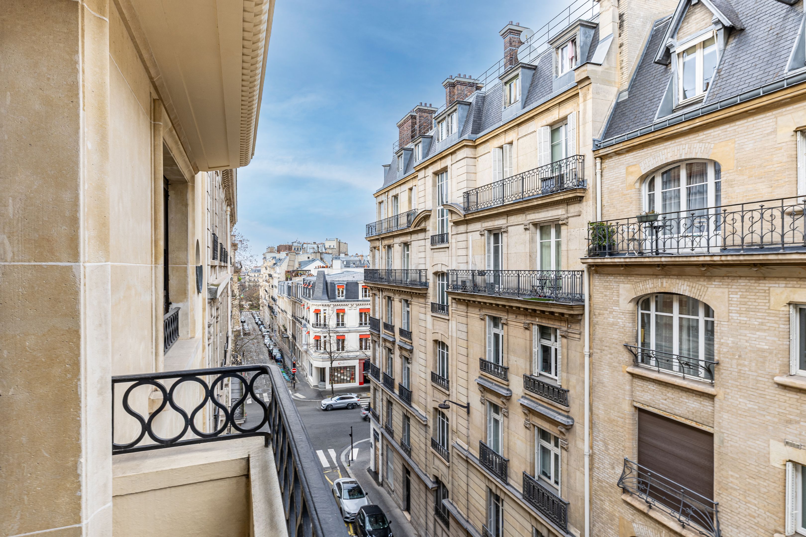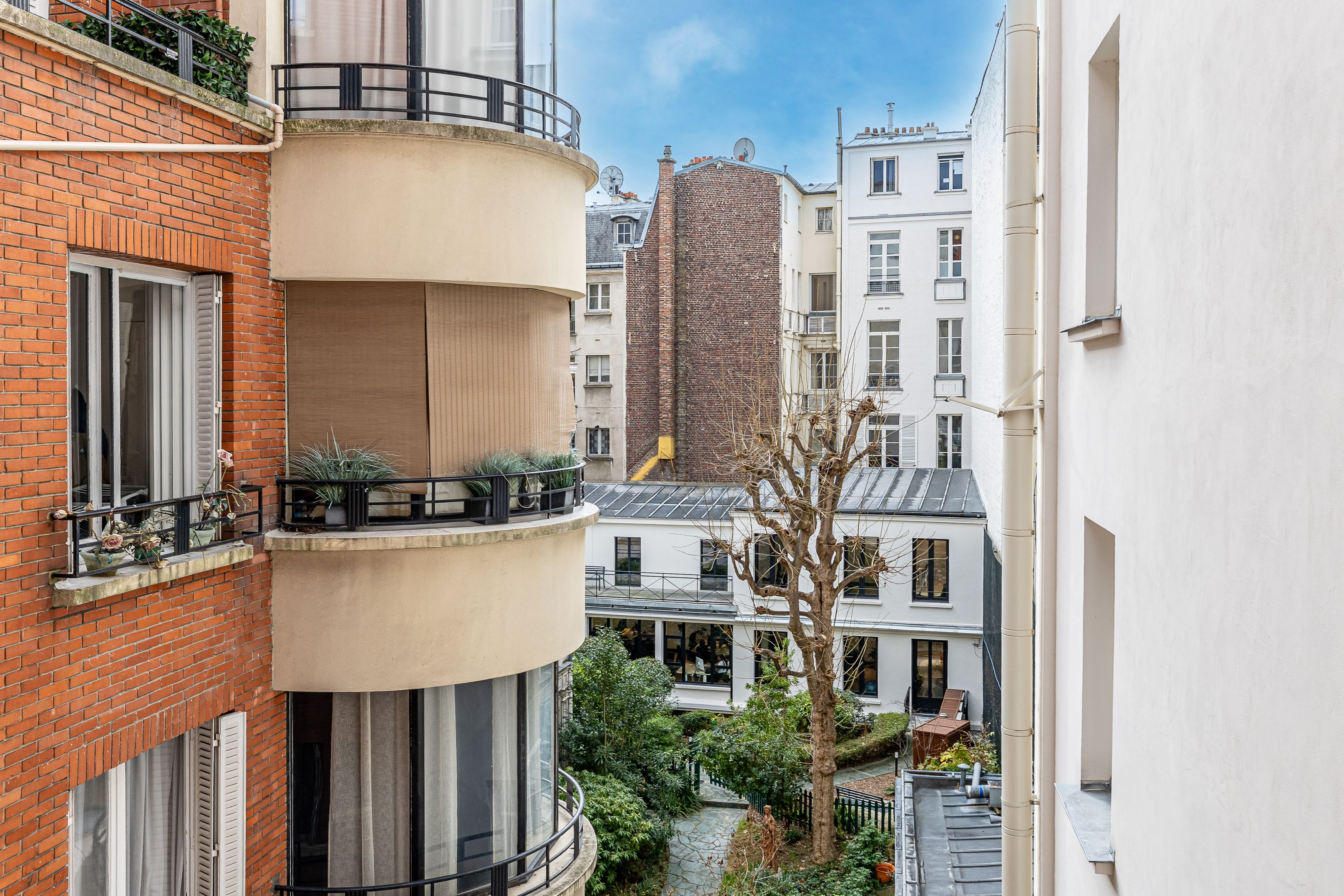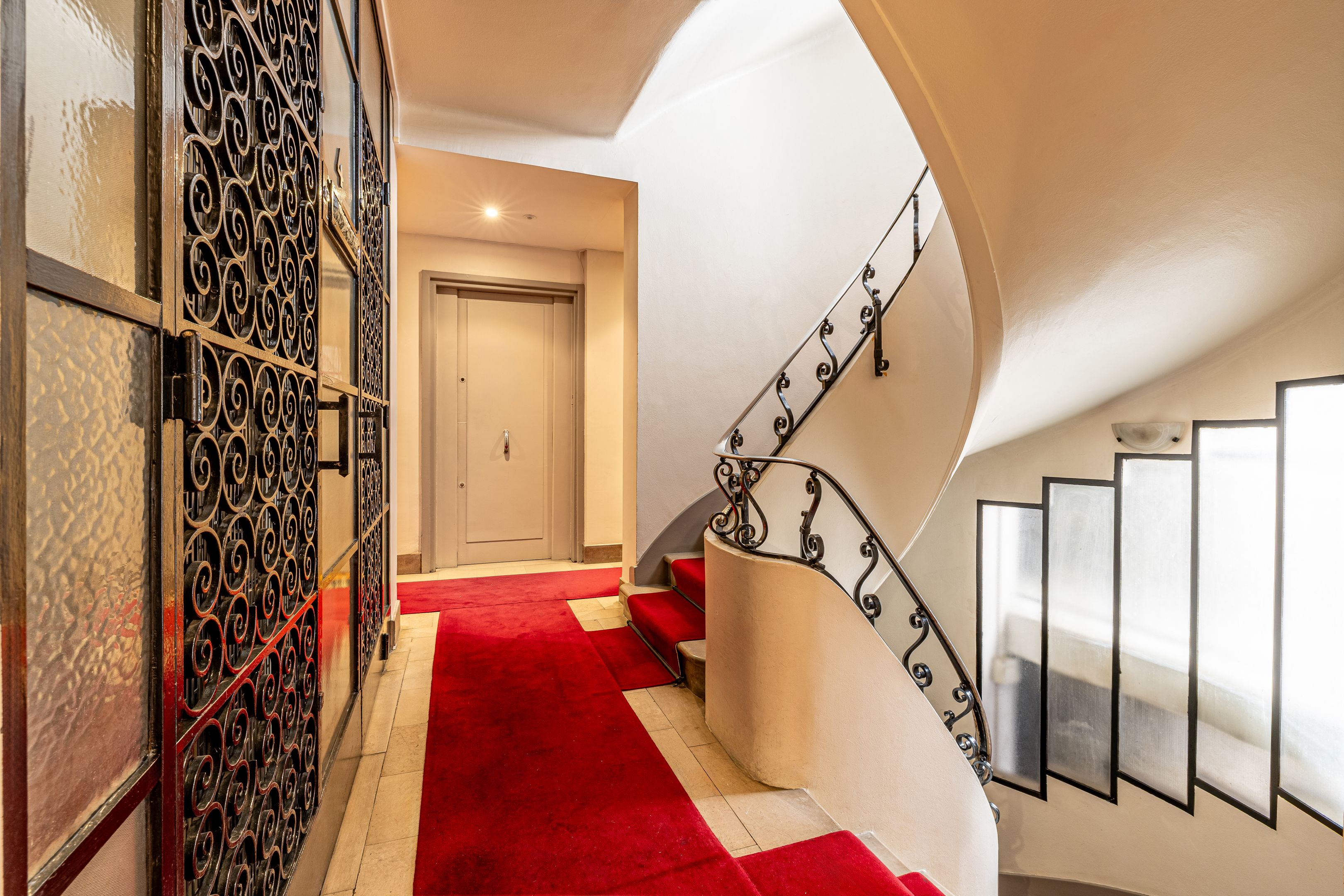 Victor Hugo - Chaillot. Idéalement situé à proximité de nombreux commerces et transports. Au quatrième étage desservi par ascenseur d'un bel immeuble ancien en pierre de taille, style art déco de standing et sécurisé, joli appartement d'une surface de 62,14 m² Loi Carrez bénéficiant d'un plan exemplaire offrant de nombreuses possibilités d'aménagement. Entrée, double séjour lumineux orienté à l'est ouvrant sur un large balcon, cuisine séparée aménagée (ouverture possible sur le séjour), chambre au calme orientée à l'ouest avec toilettes et point d'eau, salle de bains, toilettes séparées, nombreux rangements. Idéal pied-à-terre dans un secteur prisé. Cave. Un emplacement de parking en supplément indissociable de l'appartement au prix de 55 000 €. Exclusivité Breteuil.