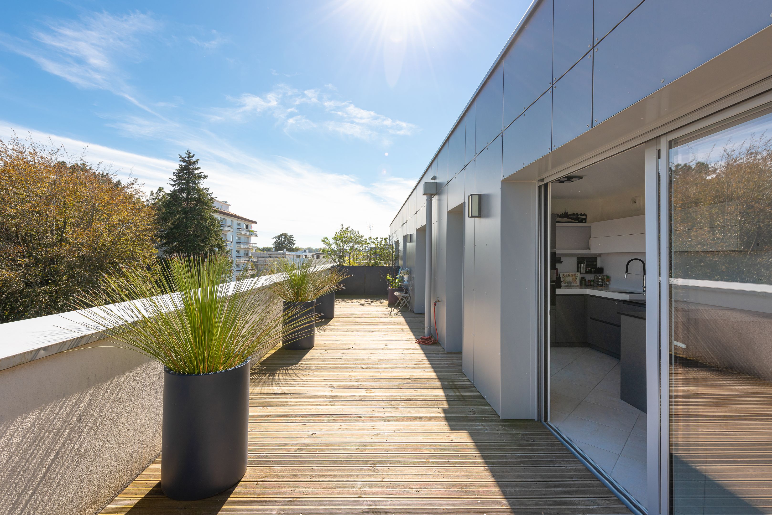 Au coeur du quartier prisé des Arènes de Bayonne, résidence récente et de standing. Situé au 4ème et dernier étage, desservi par ascenseur, appartement lumineux et traversant de 112m² exposé est ouest, doté de 2 belles terrasses de 35 m² chacune, offrant une vue dégagée. Entrée, double séjour avec cuisine ouverte, trois chambres avec placards, 3 salles d'eau. 2 parkings privatifs en sous-sol et boxables.