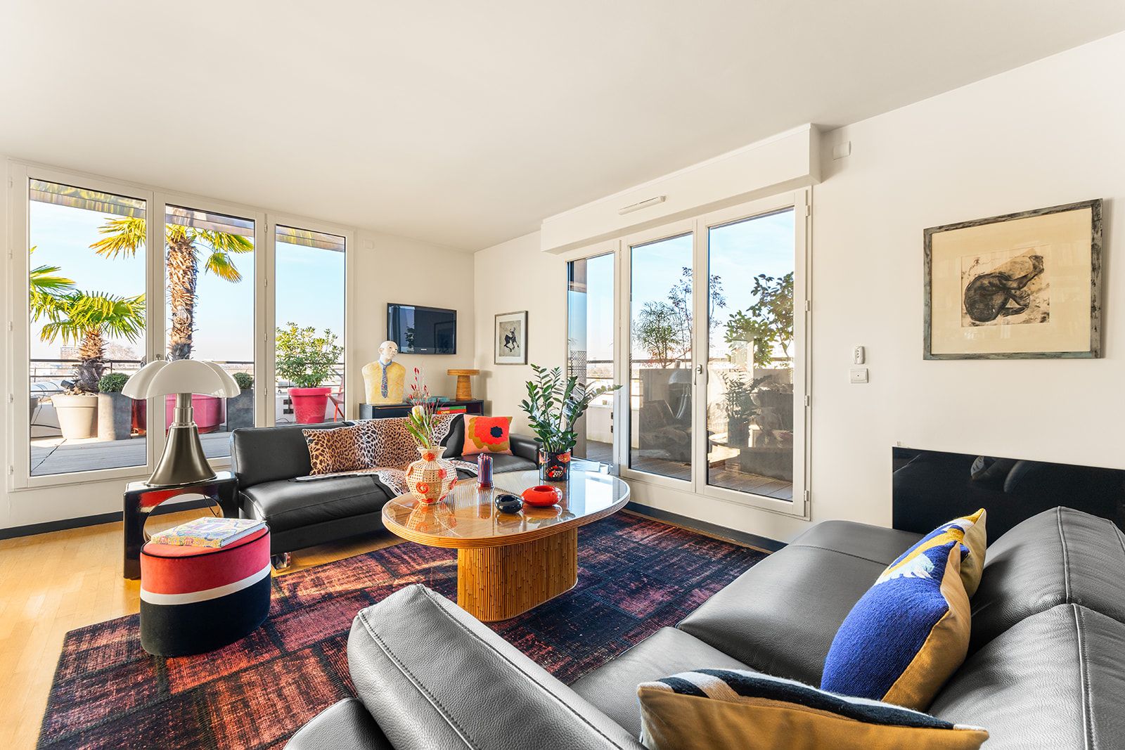 À deux pas des bords de Seine et de l'île Saint-Germain, au sein d'une résidence arborée de standing, penthouse de 95,5 m² en très bon état avec une terrasse de 50 m² plein ciel. L'appartement, très lumineux, est composé d'une entrée, d'un grand séjour, salle à manger, cuisine ouverte aménagée et équipée, de deux chambres (possibilité 3) dont une avec sa salle de douche et ses toilettes, d'une salle de bains et de toilettes invitées. Nombreux rangements. Cave. Possibilité d'acquérir en supplément un grand double parking en enfilade et boxable. Exclusivité Breteuil.