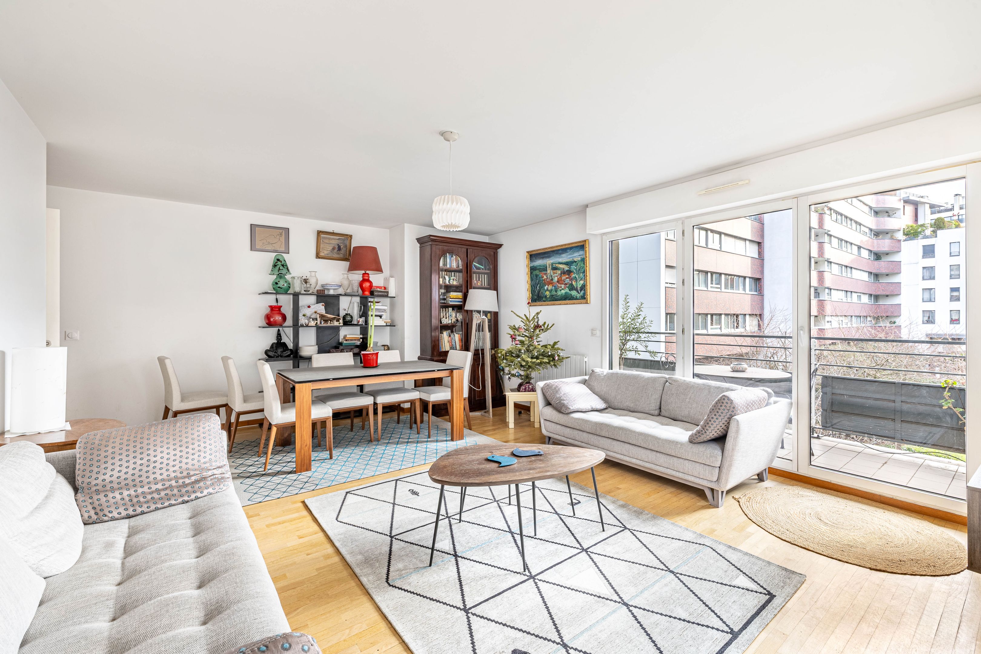 Dans l’un des quartiers les plus prisés de Boulogne, cet appartement familial de 92,12 m² Loi Carrez se trouve au sein d’un élégant immeuble de 2011, au 2ème étage avec ascenseur. Il offre une pièce de vie lumineuse exposée plein sud, ouvrant sur un balcon-terrasse avec vue sur le jardin arboré de la résidence, ainsi que trois chambres, une cuisine indépendante entièrement équipée, une salle d’eau avec toilettes, une salle de bains et des toilettes séparées.