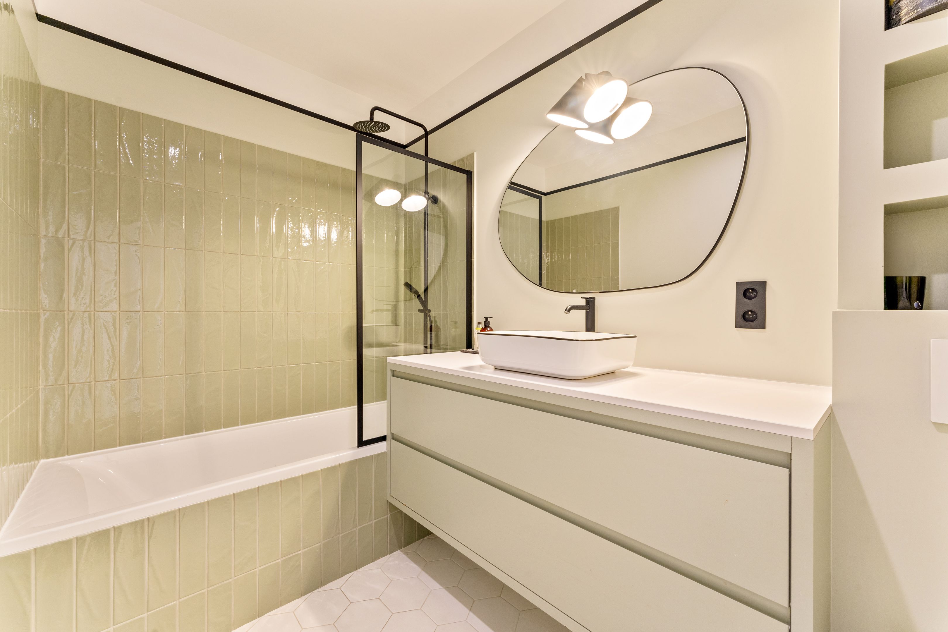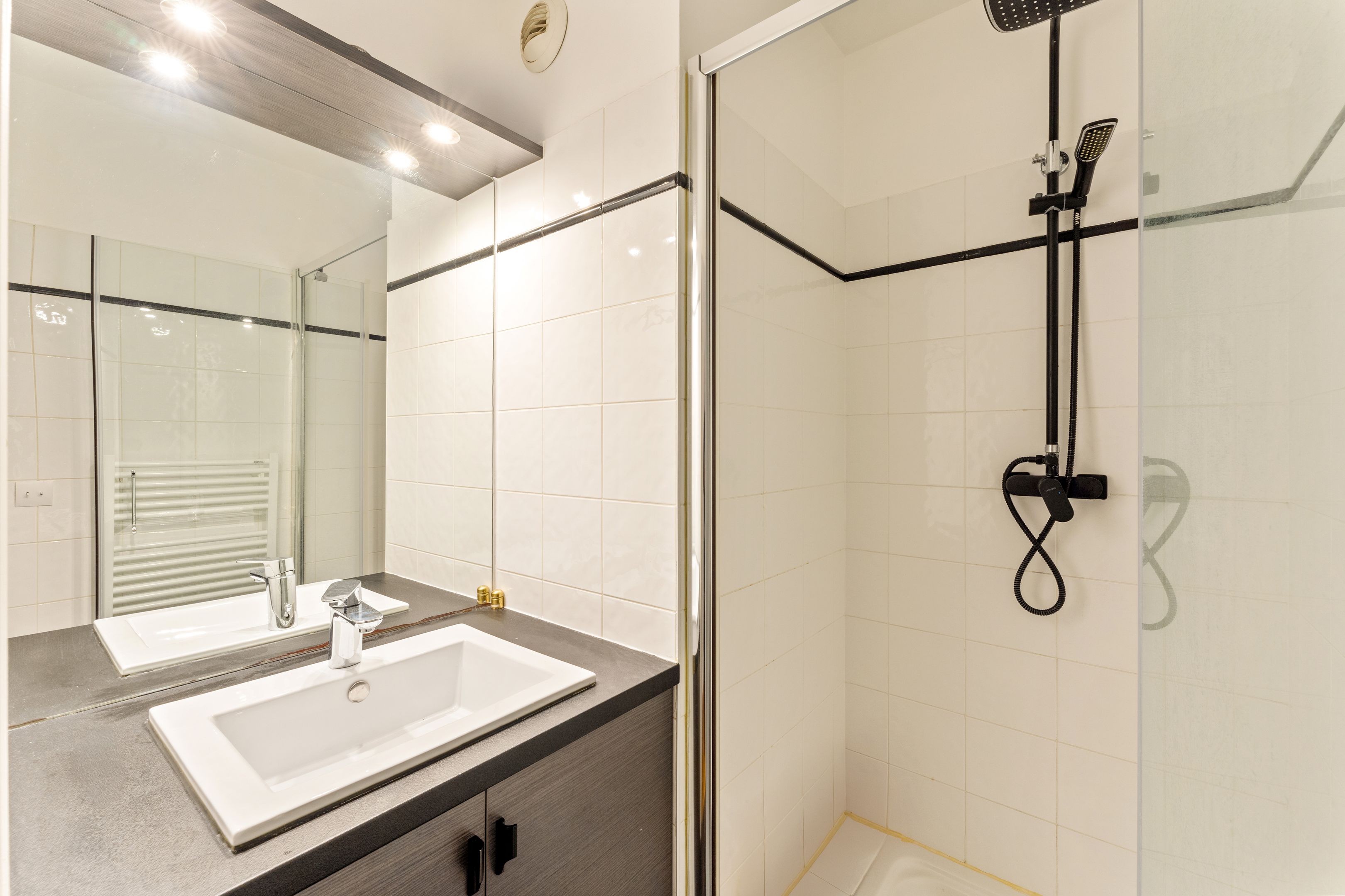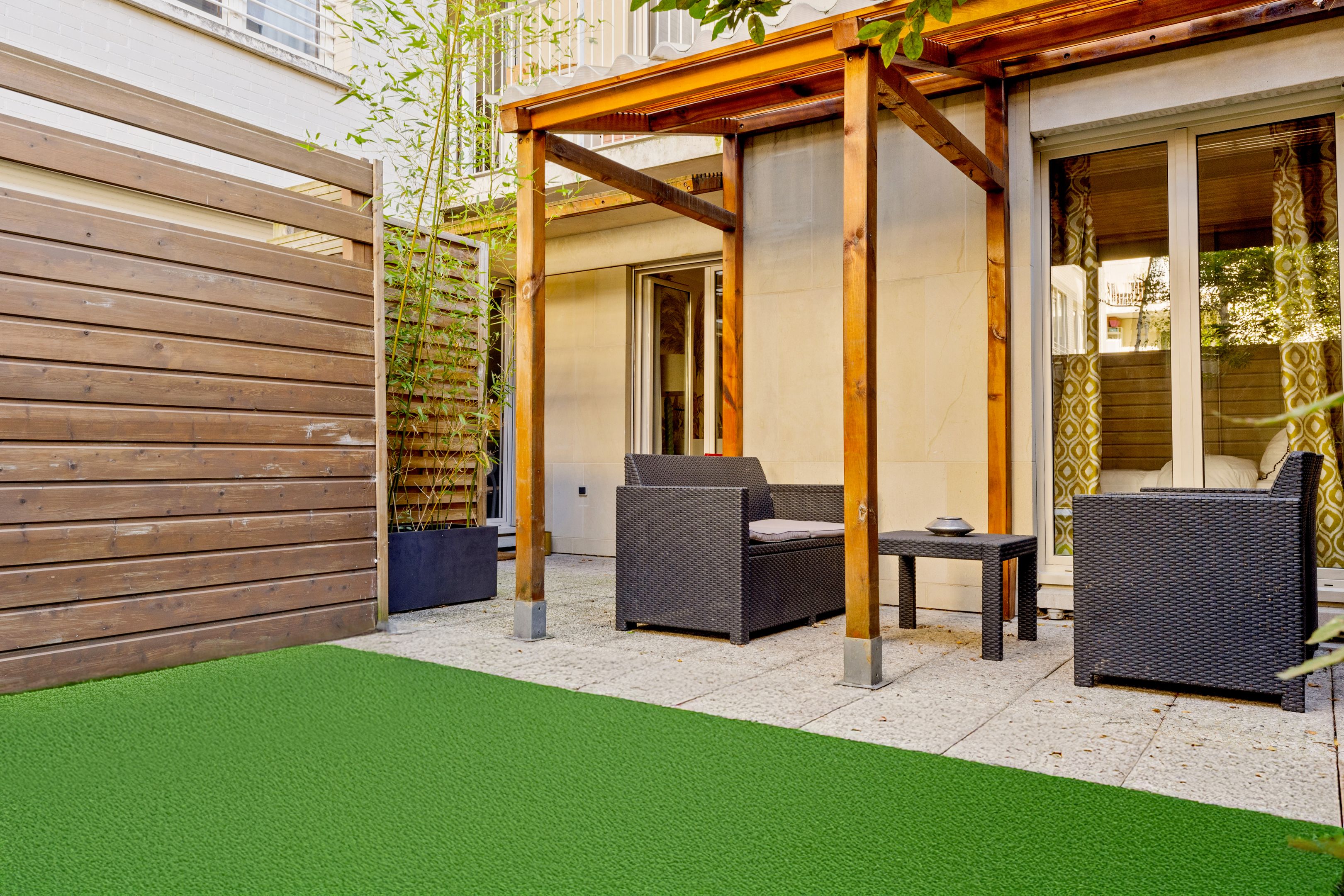 Boulogne Centre - Les Passages. Idéalement situé au coeur des nombreux commerces et transports. Au deuxième étage accessible par ascenseur d'un joli immeuble moderne de grand standing et bien entretenu, superbe appartement familial d'une surface de 85.97m² loi Carrez (96m² pondéré à un tiers de la terrasse) en excellent état et bénéficiant d'un plan fonctionnel ainsi que d'une grande luminosité. Entrée, séjour, salle-à-manger (troisième chambre possible), cuisine séparée ouvrant sur une grande terrasse de 29.62m², deux chambres dont une suite parentale profitant de sa salle d'eau, salle de bains, toilettes séparées. Cave.