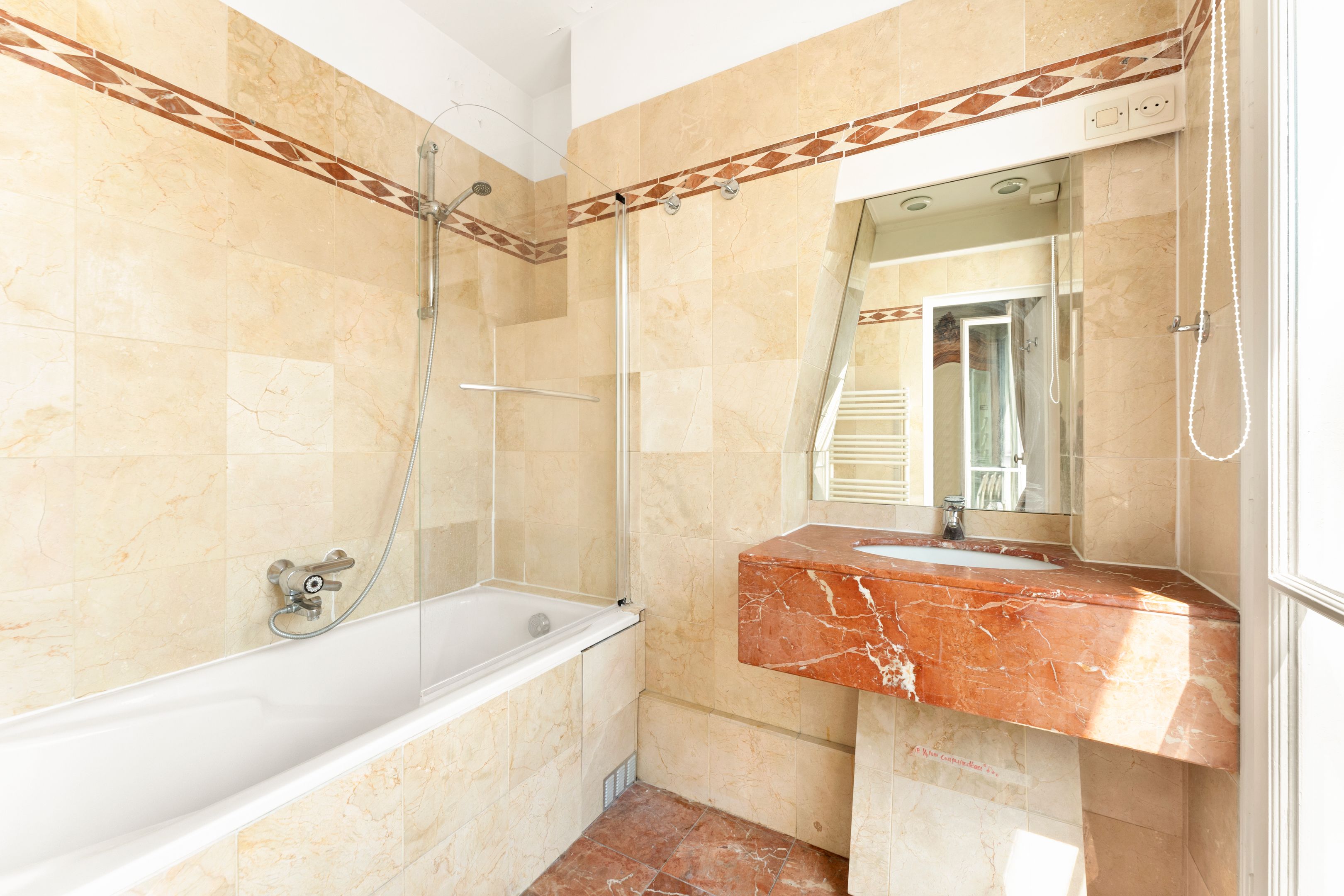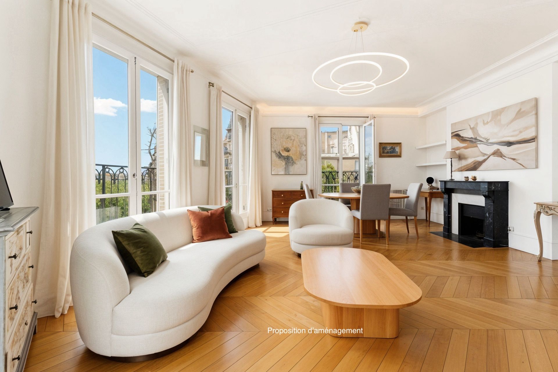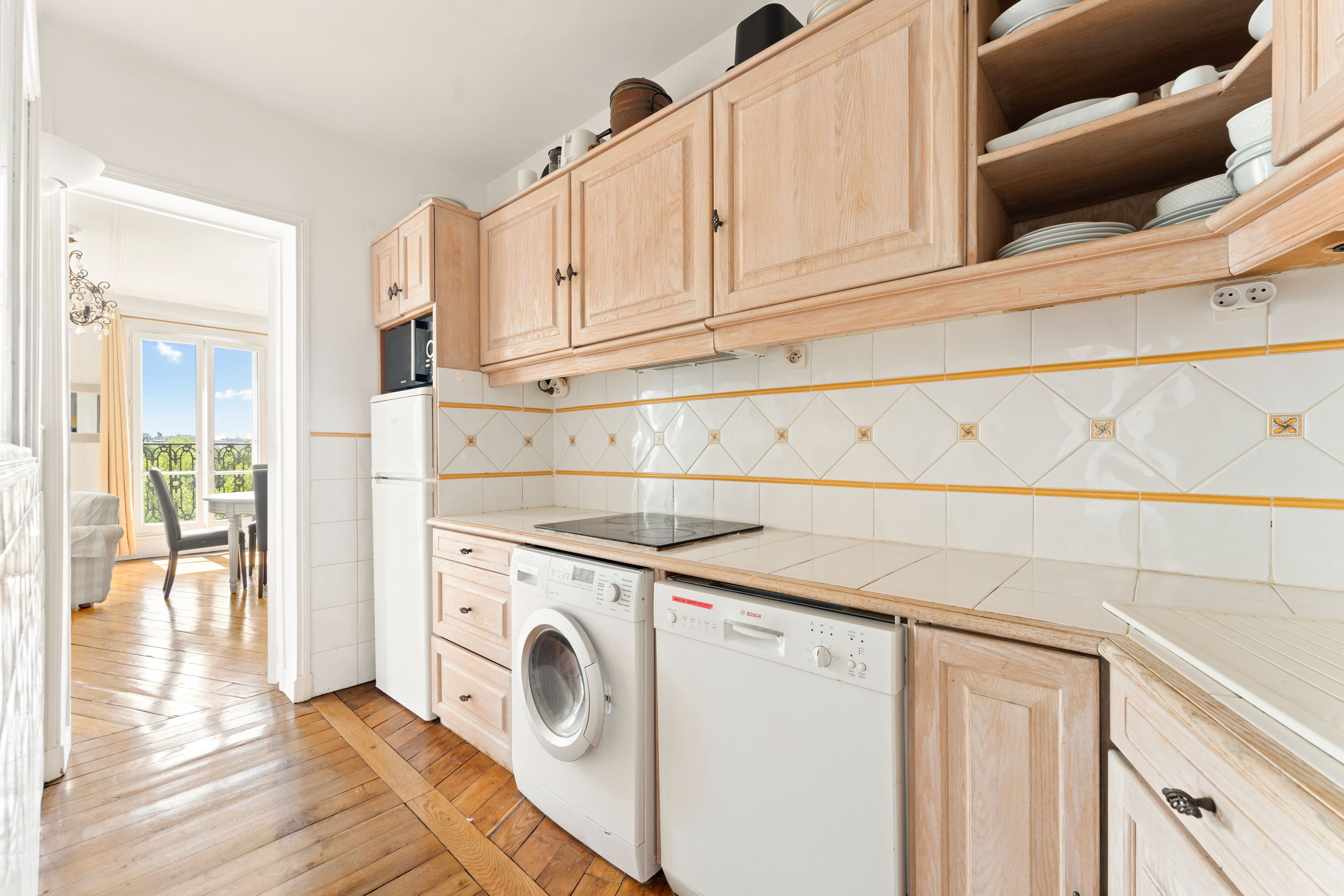 Au coeur du quartier du Gros Caillou, immeuble d'angle en pierre de taille de bon standing jouissant de parties communes très bien entretenues, appartement traversant de 73,31m² au sol (72,69m² loi Carrez), bénéficiant d'une belle luminosité, d'un plan optimisé, d'un balcon filant et d'exceptionnelles vues sur la Tour Eiffel et le dôme des Invalides, situé au 5ème étage desservi par ascenseur. Entrée, vaste double séjour disposant de 4 porte-fenêtres ouvrant sur le balcon filant, cuisine séparée, deux chambres dont une avec salle de bains privative, salle de bains, 2 toilettes séparées, nombreux rangements. Cave.