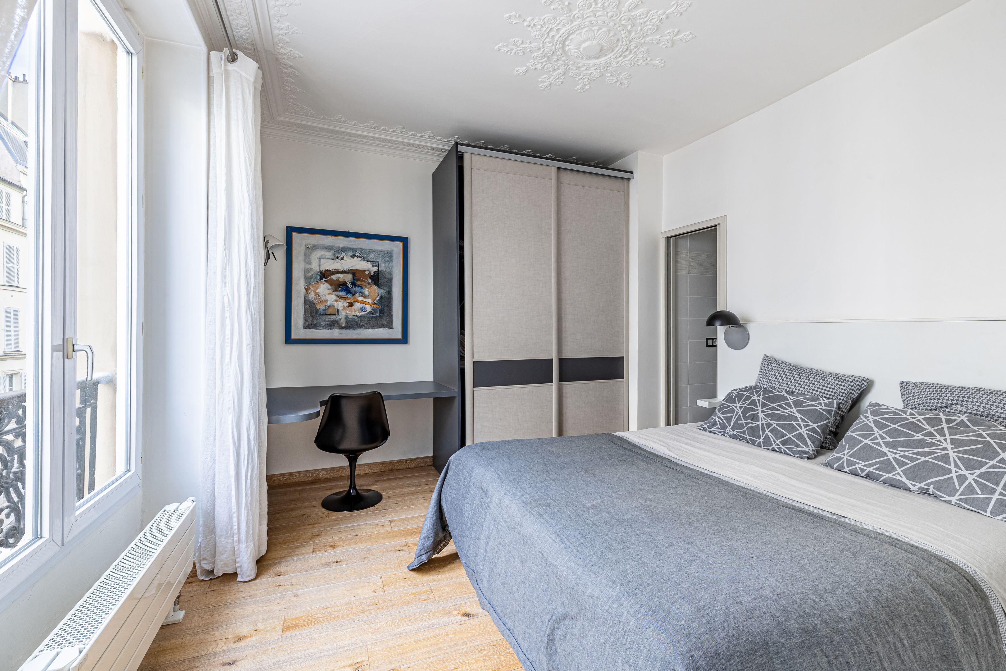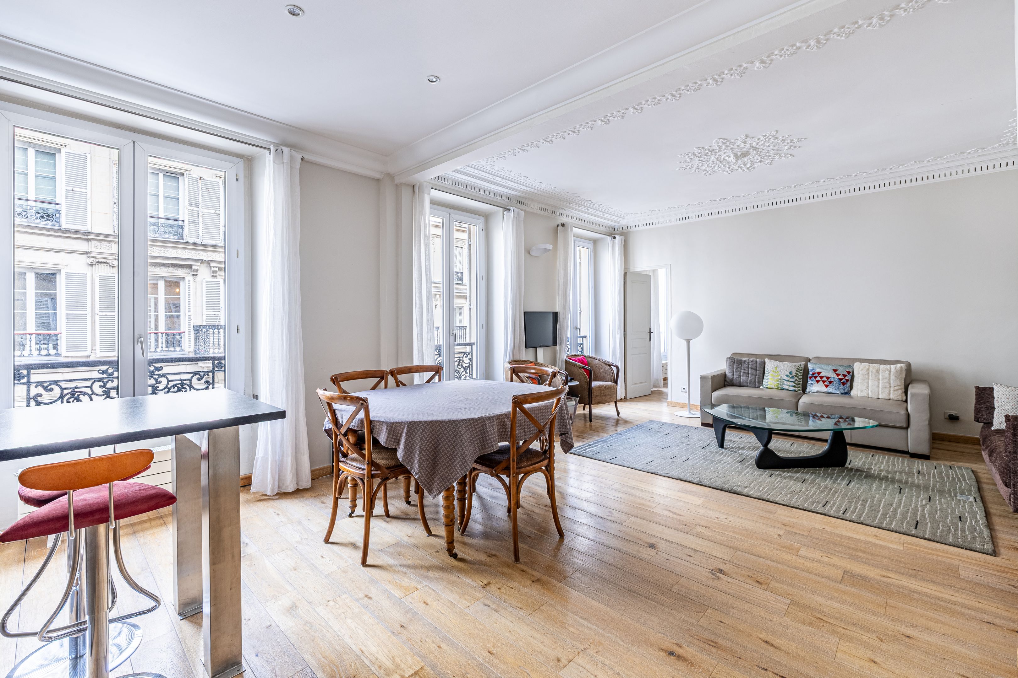 Dans le quartier Clichy-Trinité, au sein d’un immeuble de 1820, cet appartement de 69,22 m², au 2ème étage, s’ouvre sur une entrée desservant un grand séjour de 34 m² avec une cuisine ouverte, une chambre communicante avec le séjour disposant de sa propre salle d'eau et de toilettes, une chambre donnant sur cour avec rangements, une salle d'eau, une buanderie et des toilettes indépendantes. Ce bien dispose de la climatisation. Une cave. Sectorisation Condorcet.