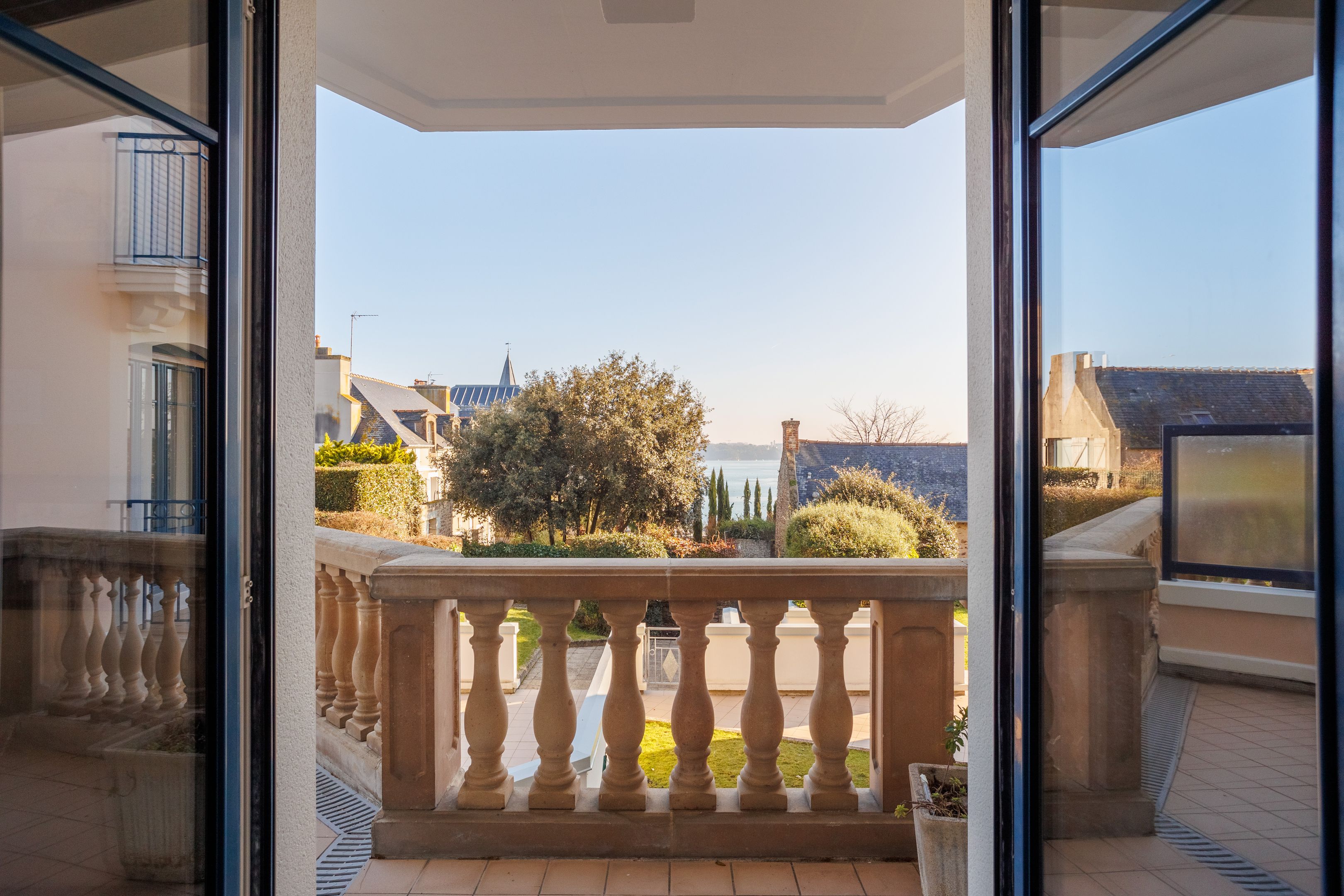 VENDU PAR BRETEUIL - Résidence "Les Jardins du Tennis Club" - Au cœur de Dinard, à proximité immédiate des commerces, de la plage et du port de plaisance, dans une résidence calme et bien entretenue. Très agréable appartement de 115m² bénéficiant d'un emplacement recherché, d'un excellent plan et d'agréables extérieurs. Entrée, vaste séjour offrant une vue mer prolongé d'un balcon, cuisine dînatoire, grande suite parentale, deux autres chambres dont l'une ouvrant sur une terrasse orientée ouest, salle de bains, toilettes séparées. Cave de 3㎥. Deux places de stationnement intérieur. Garage à vélos et court de tennis à usage partagé. Services quotidiens d'une gardienne.