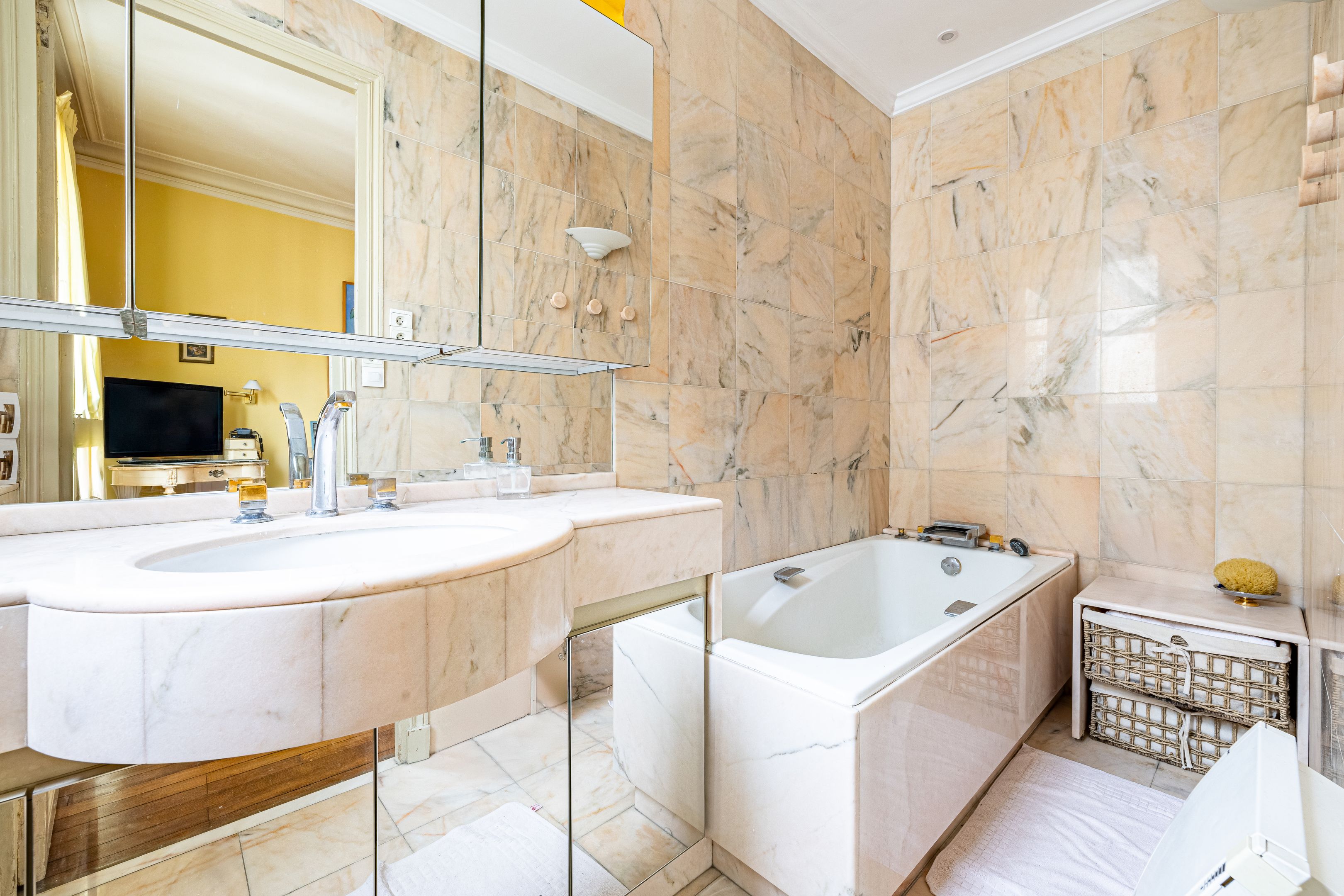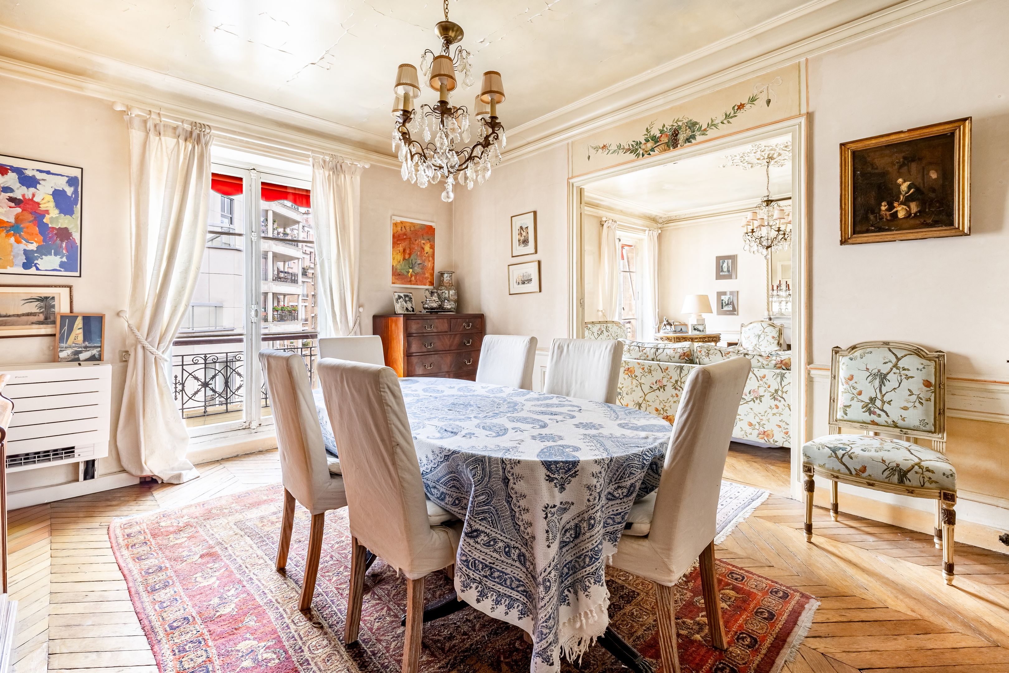 Église d'Auteuil. Bel immeuble ancien pierre de taille situé à proximité immédiate de toutes les commodités. Au 4ème étage, appartement de 95m² au plan modulable bénéficiant du charme de l'ancien et d'un superbe ensoleillement grâce à son exposition au sud-ouest. Entrée, salon-salle à manger, cuisine indépendante, deux chambres au calme sur cour, rangements, salle de bains, toilettes. Cave. Sectorisation scolaire Jean-Baptiste Say.