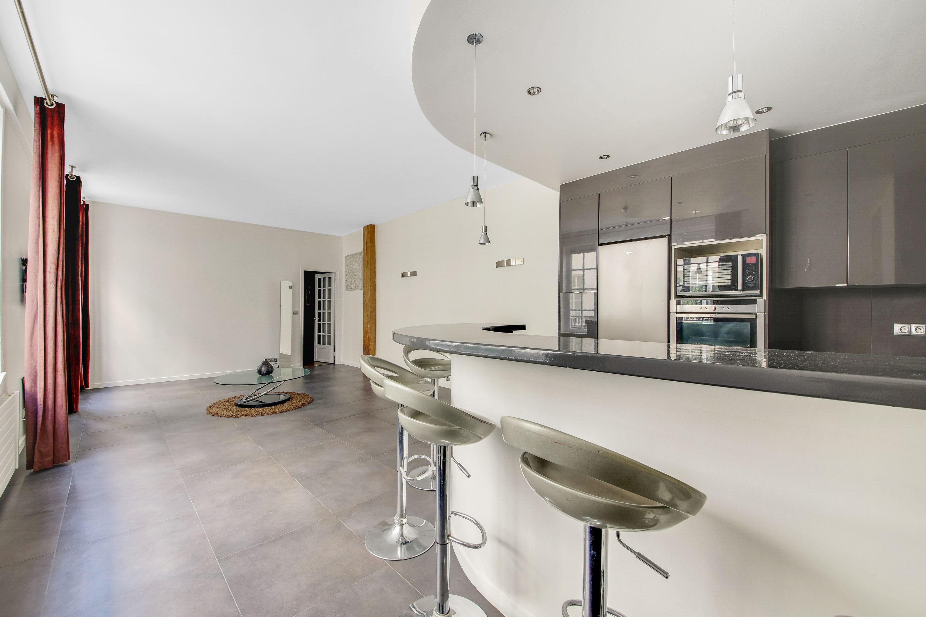 Dans une cour typique du Faubourg Saint Antoine du 19e siècle, cet appartement de 80 m² bénéficie de très beaux volumes caractéristiques des anciens ateliers, à l'esprit loft avec 2,95m de hauteur sous plafond, au calme absolu de ce passage privé, iau 1er étage par escalier, sans perte de place. Double séjour de 40m²,cuisine ouverte, couloir desservant la partie nuit avec deux chambres et une salle d'eau.