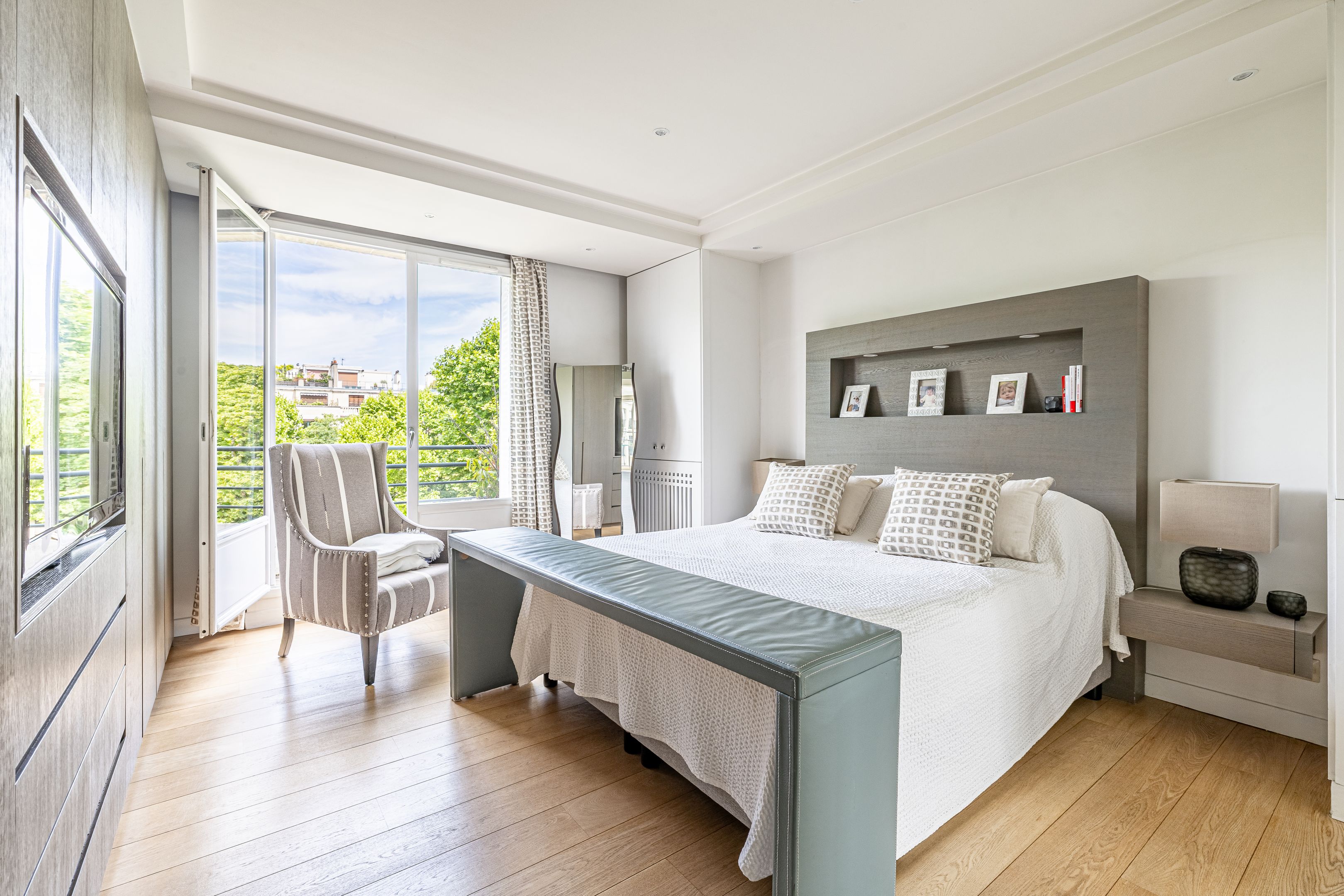 Hôpital Américain - Idéalement situé dans une charmante copropriété bien entretenue par les services d'une gardienne, appartement de 115 m² en dernier étage très lumineux et bénéficiant d'une vue dégagée sans vis-à-vis. Entrée, double séjour ouvrant sur un balcon exposé Ouest, cuisine ouvrant sur une terrasse de 17 m² au calme absolu et sur jardin, deux chambres dont une en suite comprenant une salle de bains, une salle de douches, un dressing et des toilettes, toilettes invités. Cave.