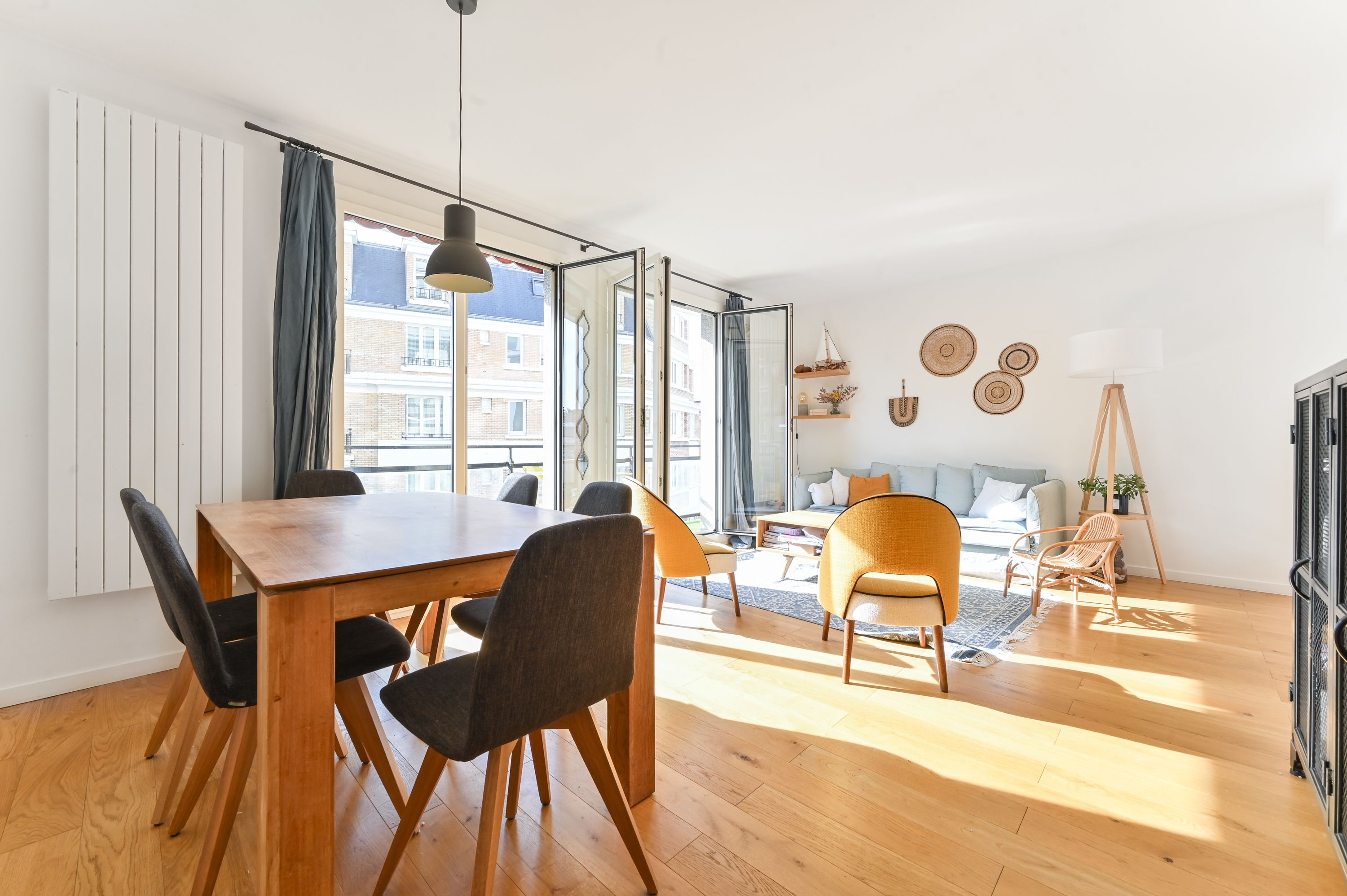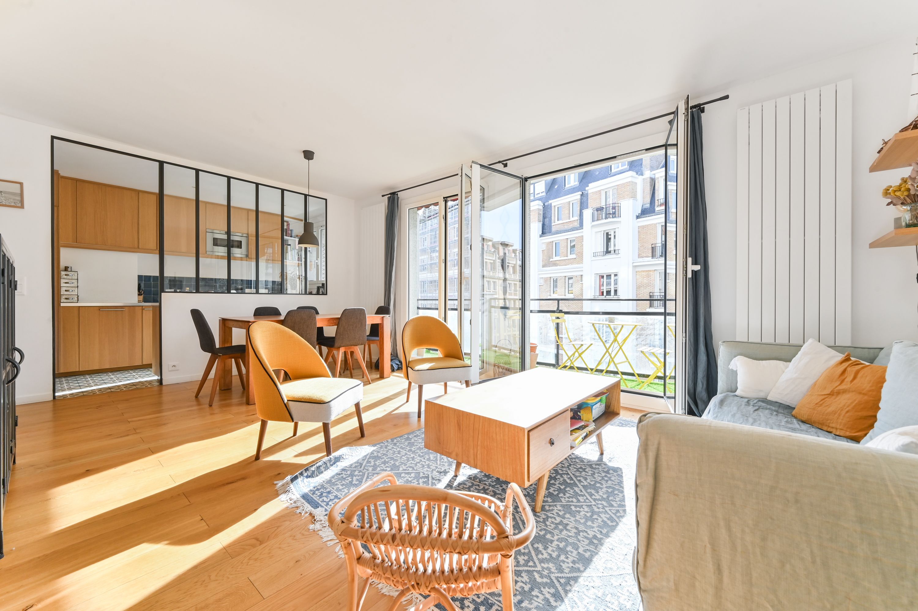 Immeuble récent et bien entretenu, idéalement situé à proximité immédiate de la Mairie et des commerces du croisement Cambronne Lecourbe, au 5ème étage desservi par ascenseur, bel appartement rénové par architecte, ensoleillé, traversant, avec balcon et profitant d'un plan optimal. Entrée, double séjour sur balcon exposé sud/sud-ouest, cuisine avec verrière sur le séjour, 2 chambres, salle de bains, toilettes, buanderie et dressing, nombreux rangements. Cave.