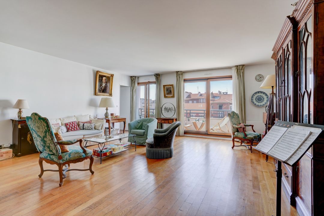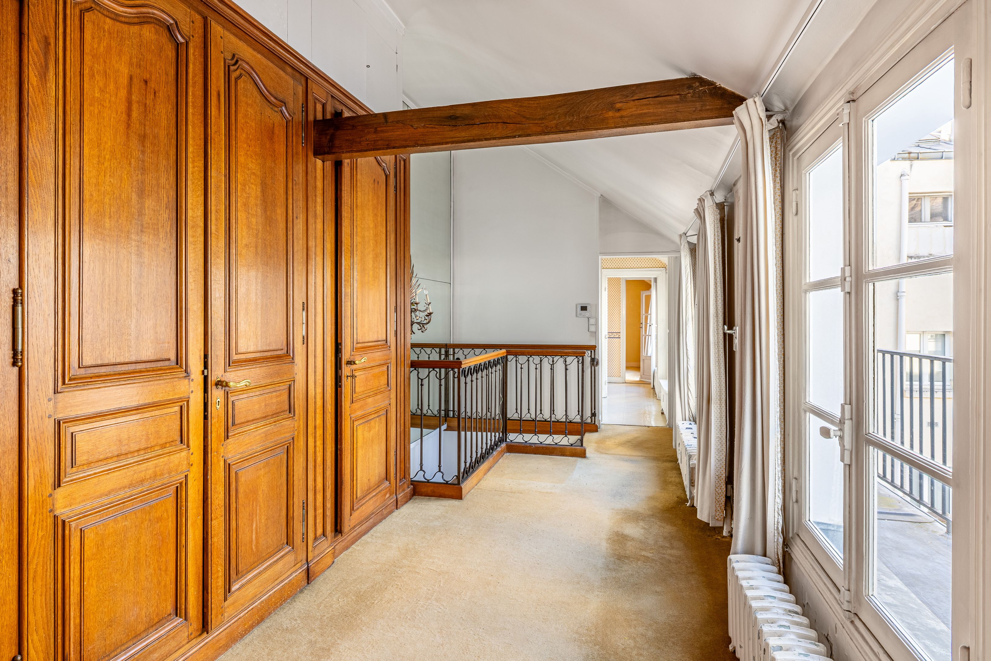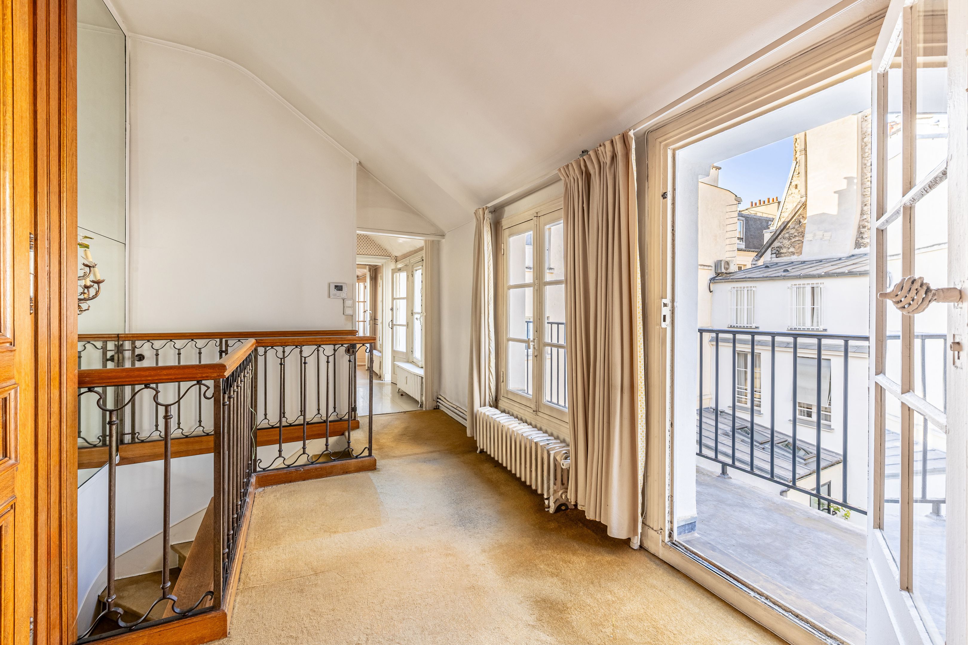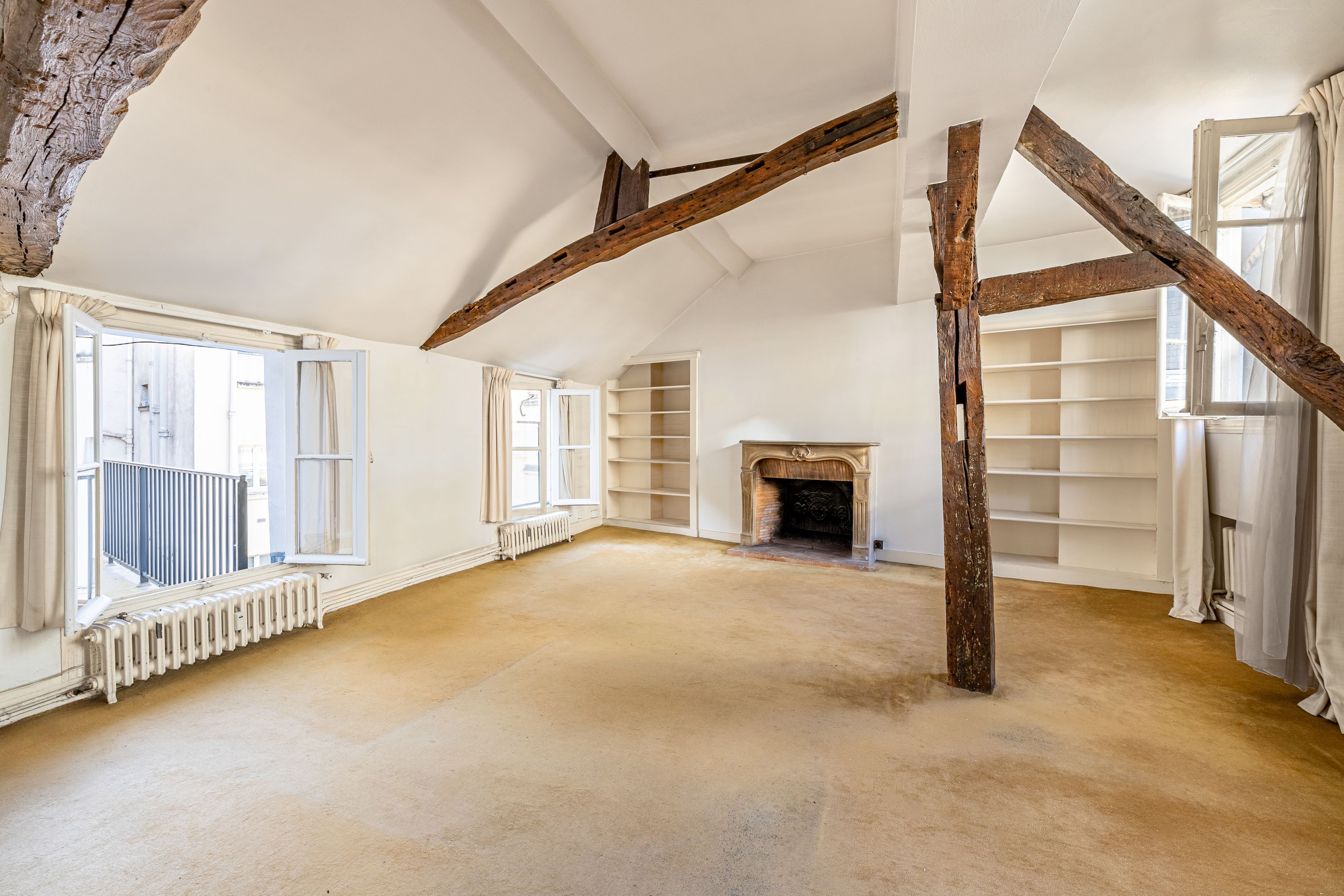 Entre Odéon et l'Institut de France, bel immeuble du XIXe siècle très bien entretenu. Au 4ème et dernier étage desservi par ascenseur, appartement lumineux et traversant, disposant d'un balcon de 11 m², d'un plan modulable et d'un séjour cathédrale. Entrée, séjour traversant de 32m², cuisine, salle à manger, deux chambres. Cave. Autorisation d'installer la climatisation.