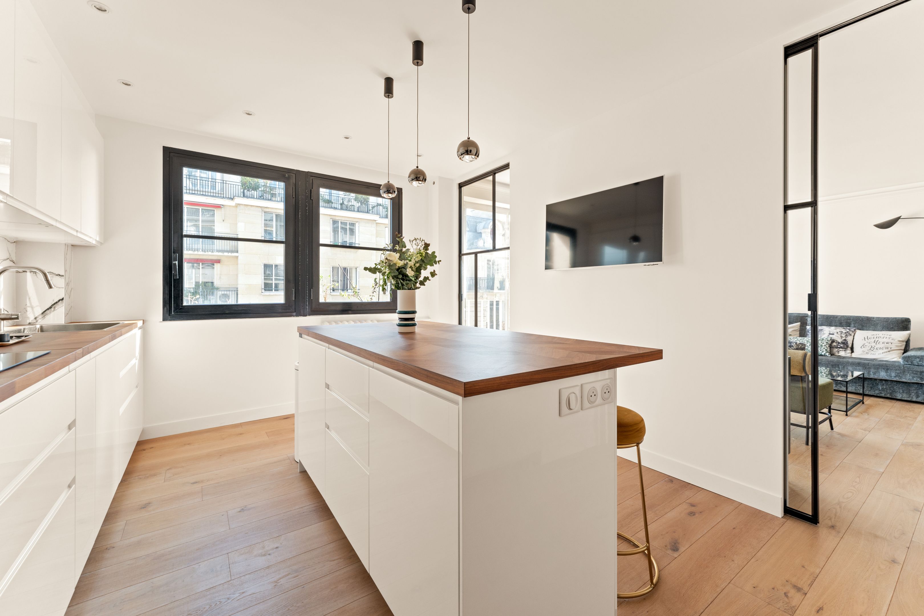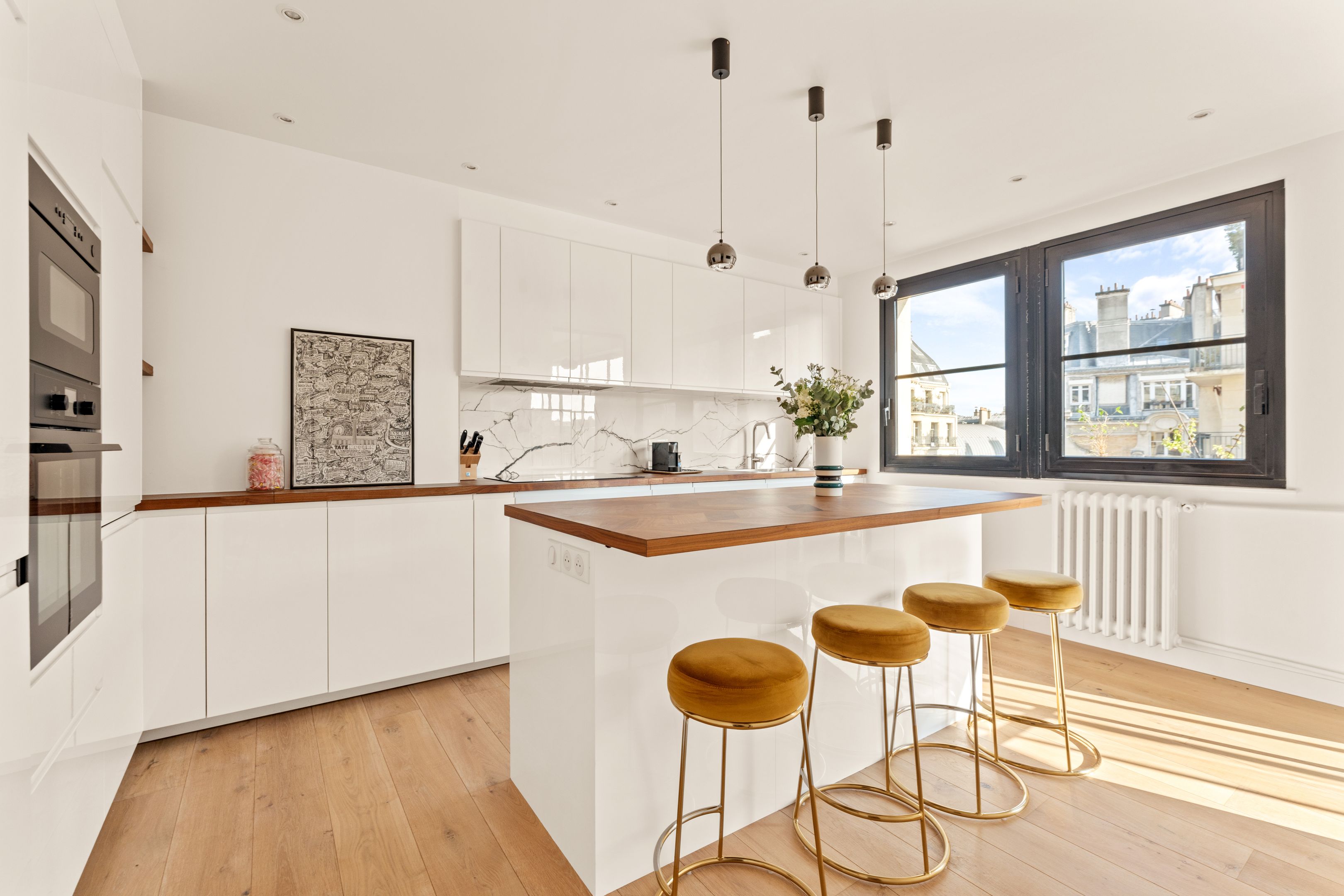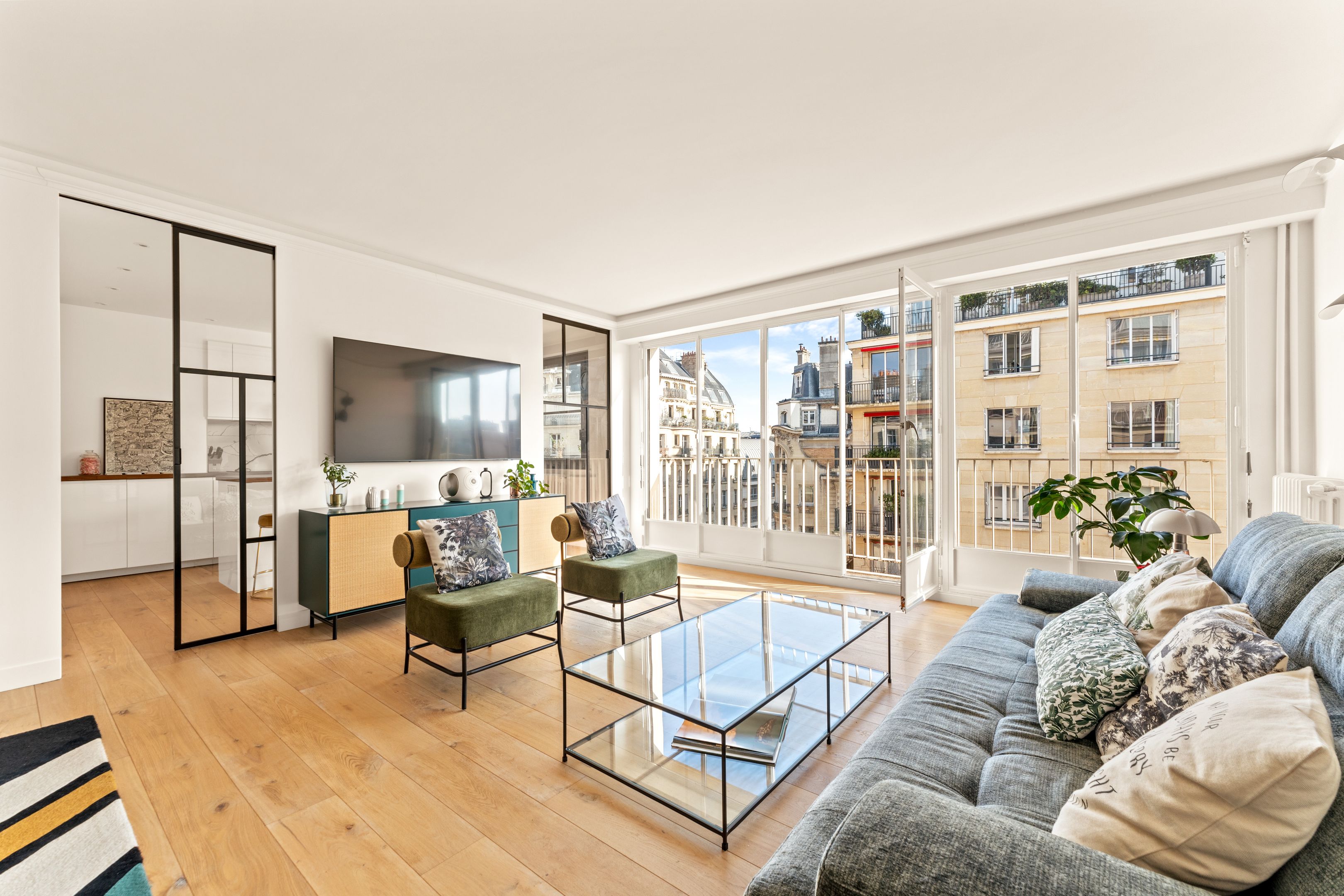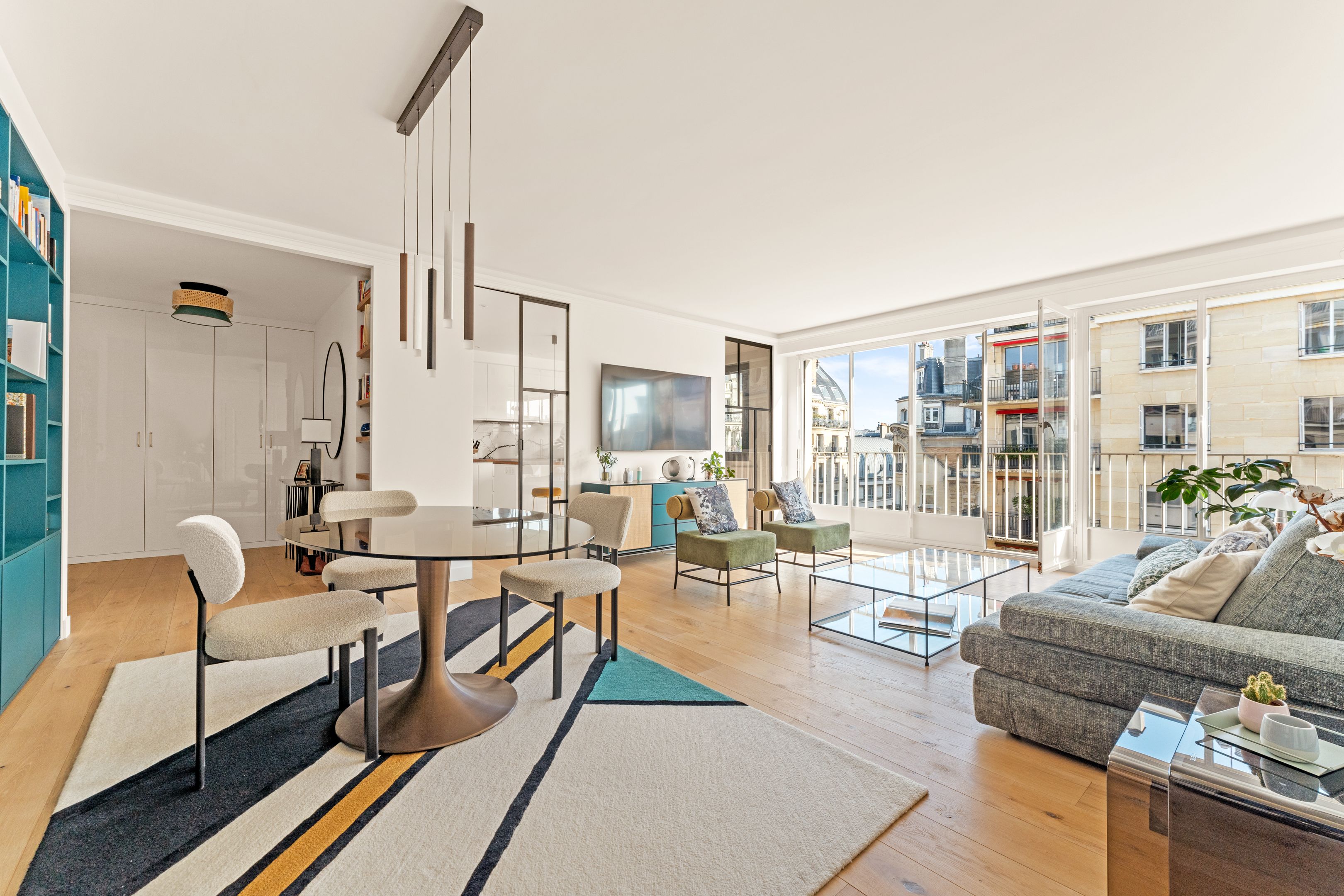 Muette. Immeuble récent de bon standing bénéficiant des services d'une gardienne, idéalement situé a proximité du quartier de La Muette et de tous les commerces. Appartement entièrement refait par architecte, situé au sixième étage desservi par ascenseur, bénéficiant d'un plan sans perte de place et d'une très agréable luminosité. Entrée, séjour avec balcon et vue dégagée, cuisine équipée, deux chambres, dressing, salle d'eau, toilettes séparées. Cave. Exclusivité Breteuil.