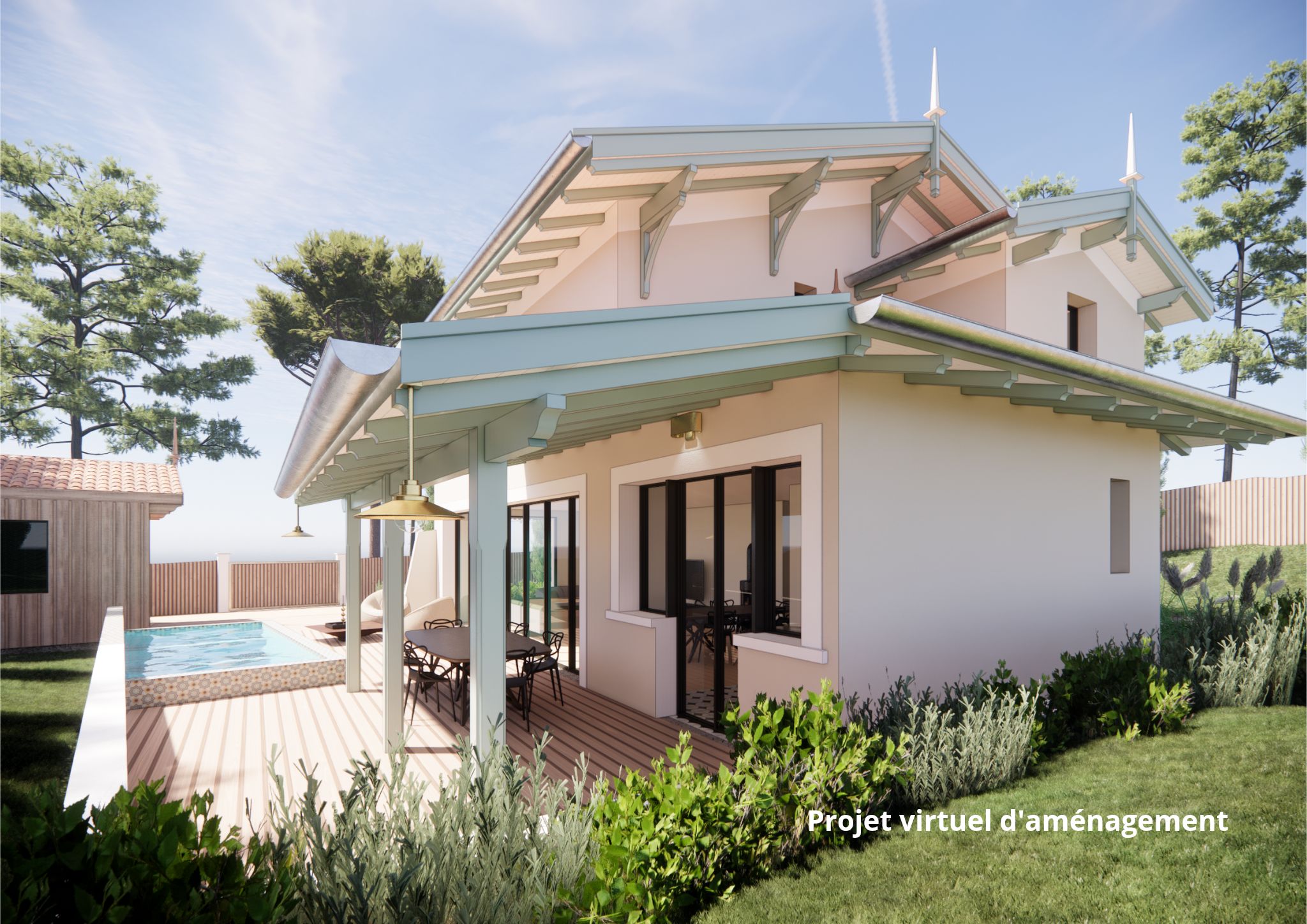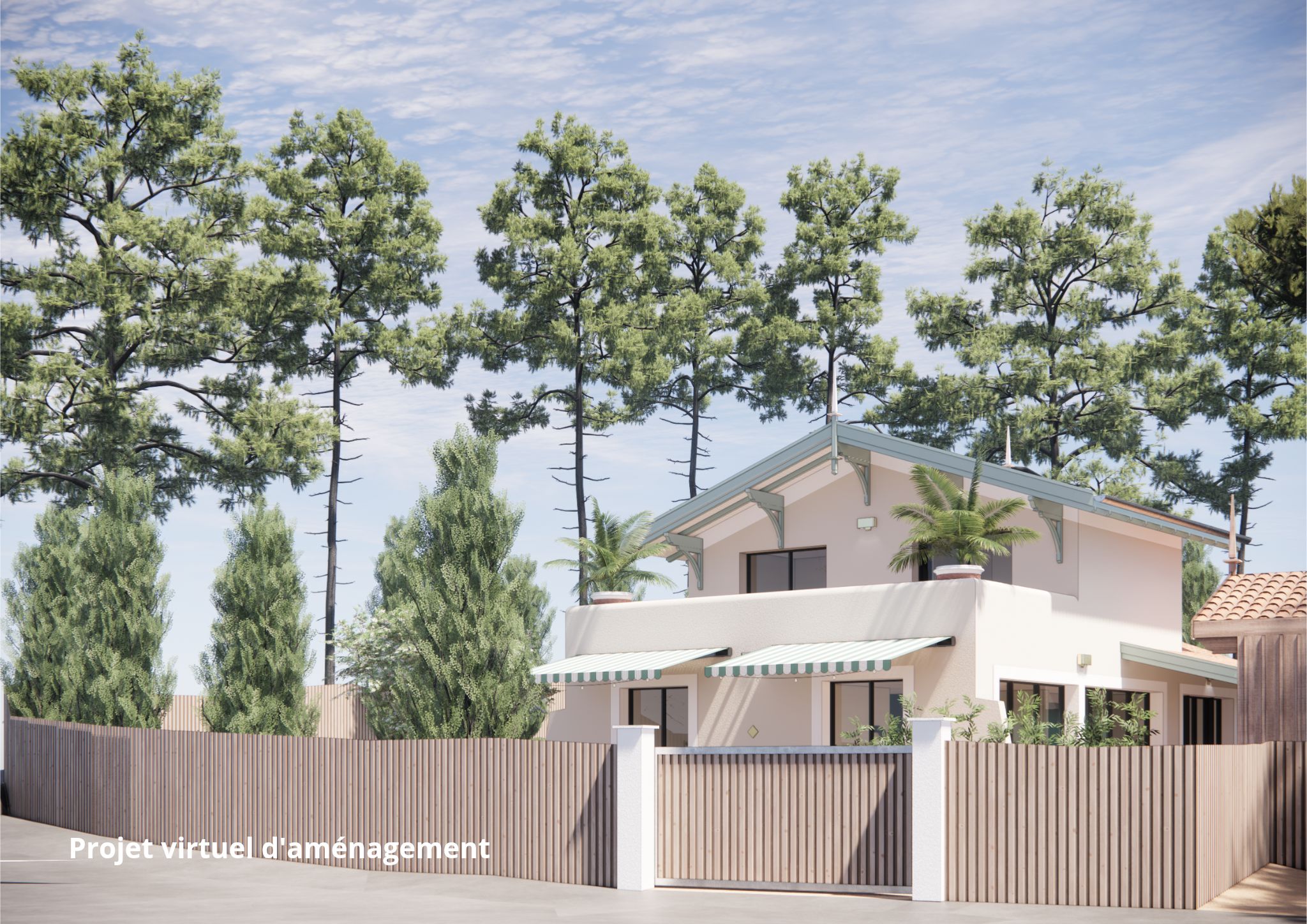 Au coeur du Pyla, à 10 minutes à pieds du centre du Moulleau, projet de rénovation aux prestations soignées. Villa Gaume de 80 m2 nichée dans la verdure sur un terrain de presque 700 m2 : entrée, séjour, cuisine séparée, deux chambres, salle de bain, toilettes.
