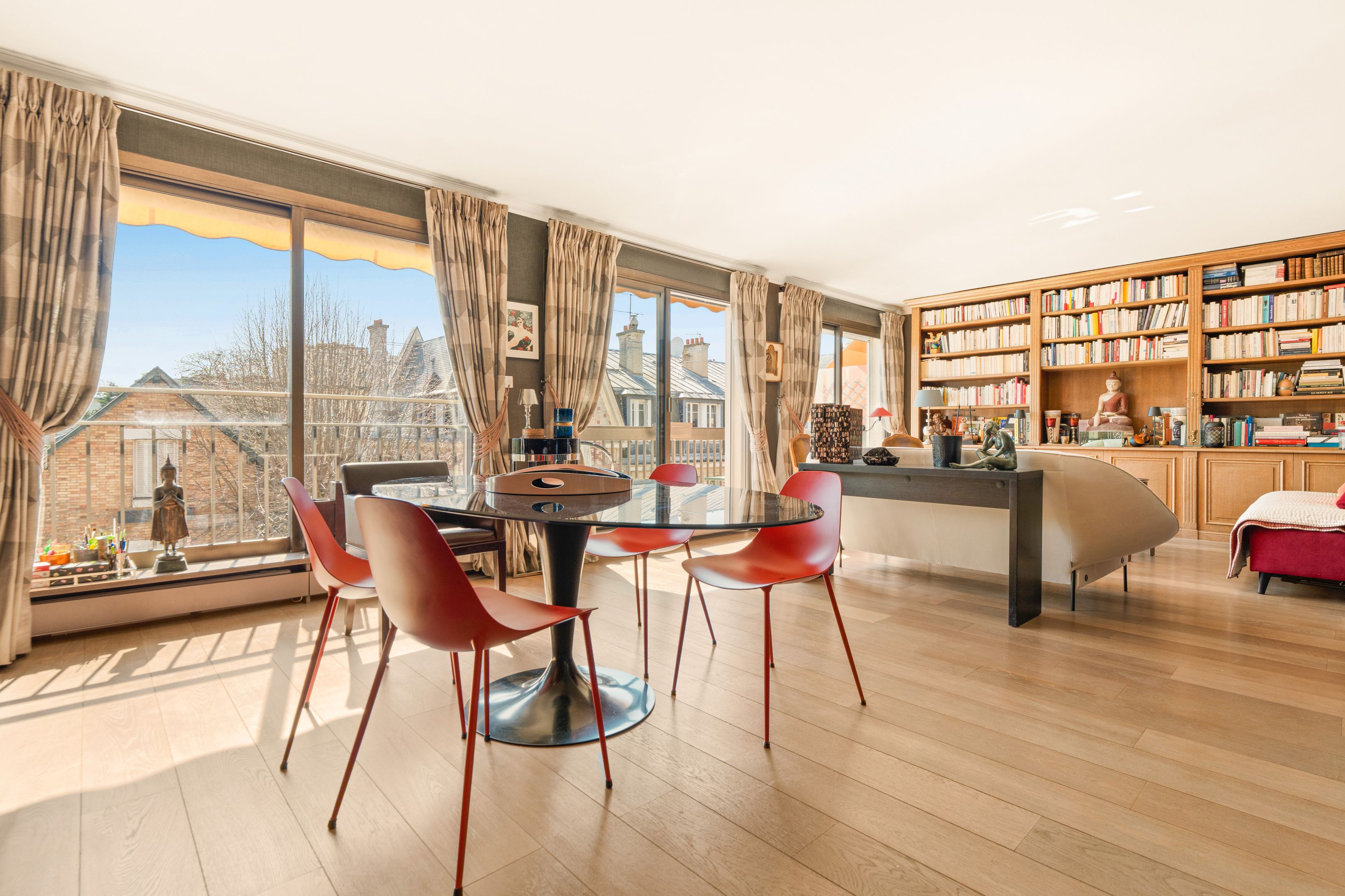 Dans un immeuble 1980, de 4 étages, bon standing, noyé dans la verdure, bénéficiant des services d'une gardienne, 3ème étage, appartement de 113m² , vue dégagée, sans aucun vis à vis, traversant et décoré avec soin : entrée desservant un vaste double séjour exposé sud, doté d'un large balcon, baigné de lumière, vue très dégagée, cuisine dînatoire toute aménagée, suite parentale avec salle de bains et dressing, seconde chambre avec salle d'eau, toilettes séparées, nombreux rangements.