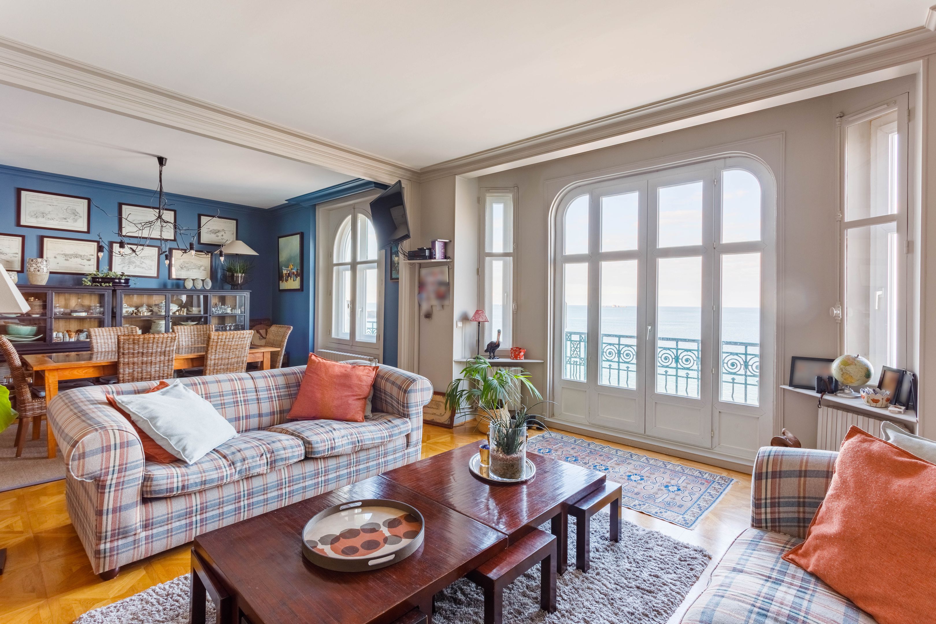VENDU PAR BRETEUIL - Face à la plage du Sillon, dans l’un des quartiers les plus recherché de Saint-Malo, à proximité immédiate d’intra-muros, de l’ensemble des commerces et de la gare. Dans un immeuble ancien de grand standing surplombant la mer, très bel appartement de 130m² au 5ème étage desservi par ascenseur bénéficiant d'une vue mer exceptionnelle, d’un balcon filant de 10m² avec vue sur le port et l’intra-muros, d'un bon plan et de beaucoup de charme. Galerie d'entrée, vaste séjour-salle à manger de 55m² avec vue panoramique sur la mer, cuisine séparée aménagée, 2 chambres de belle taille (3e chambre possible) dont une suite parentale de 20m² avec salle d'eau privative, salle de bains avec douche et baignoire. Cave. Place de stationnement à proximité.