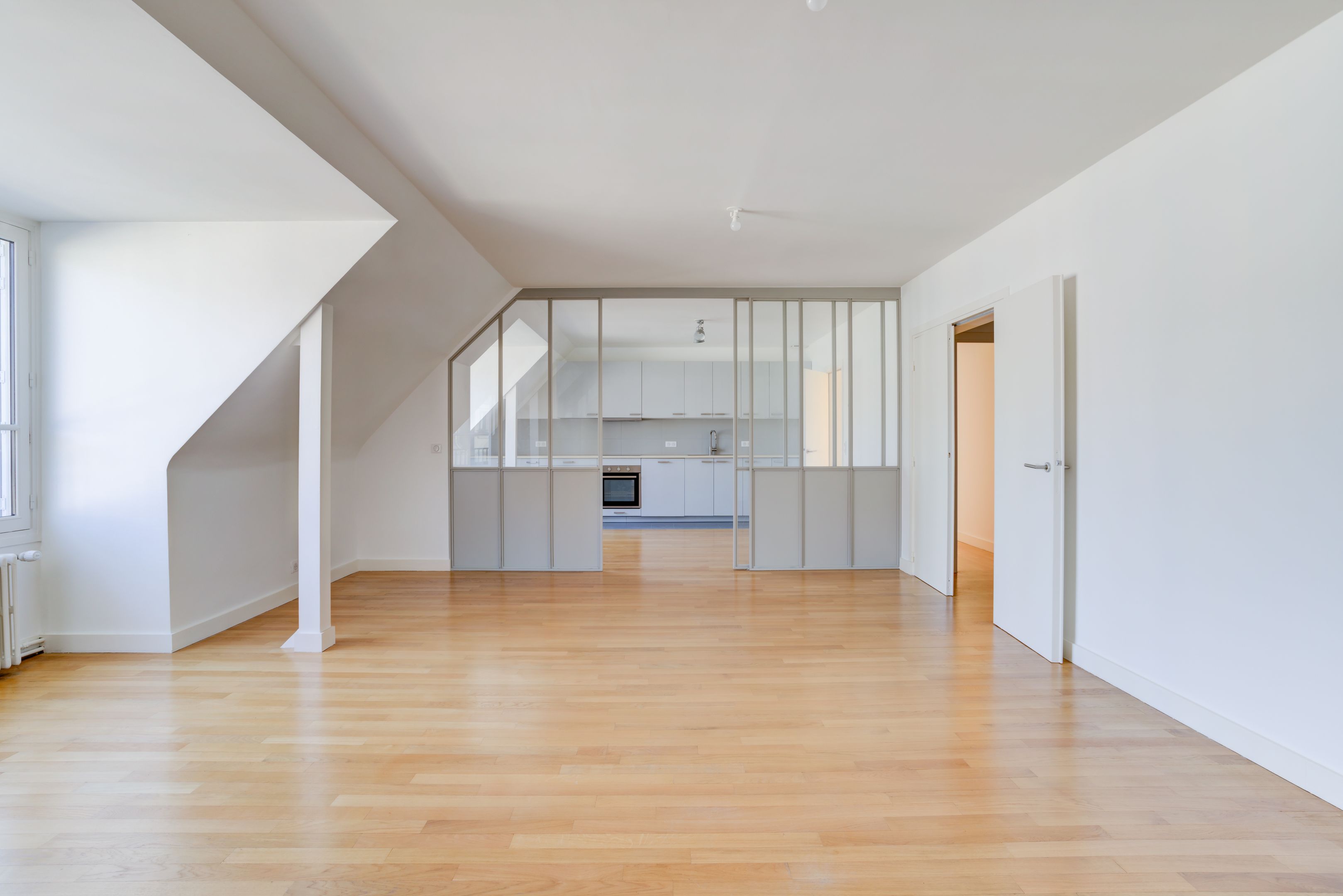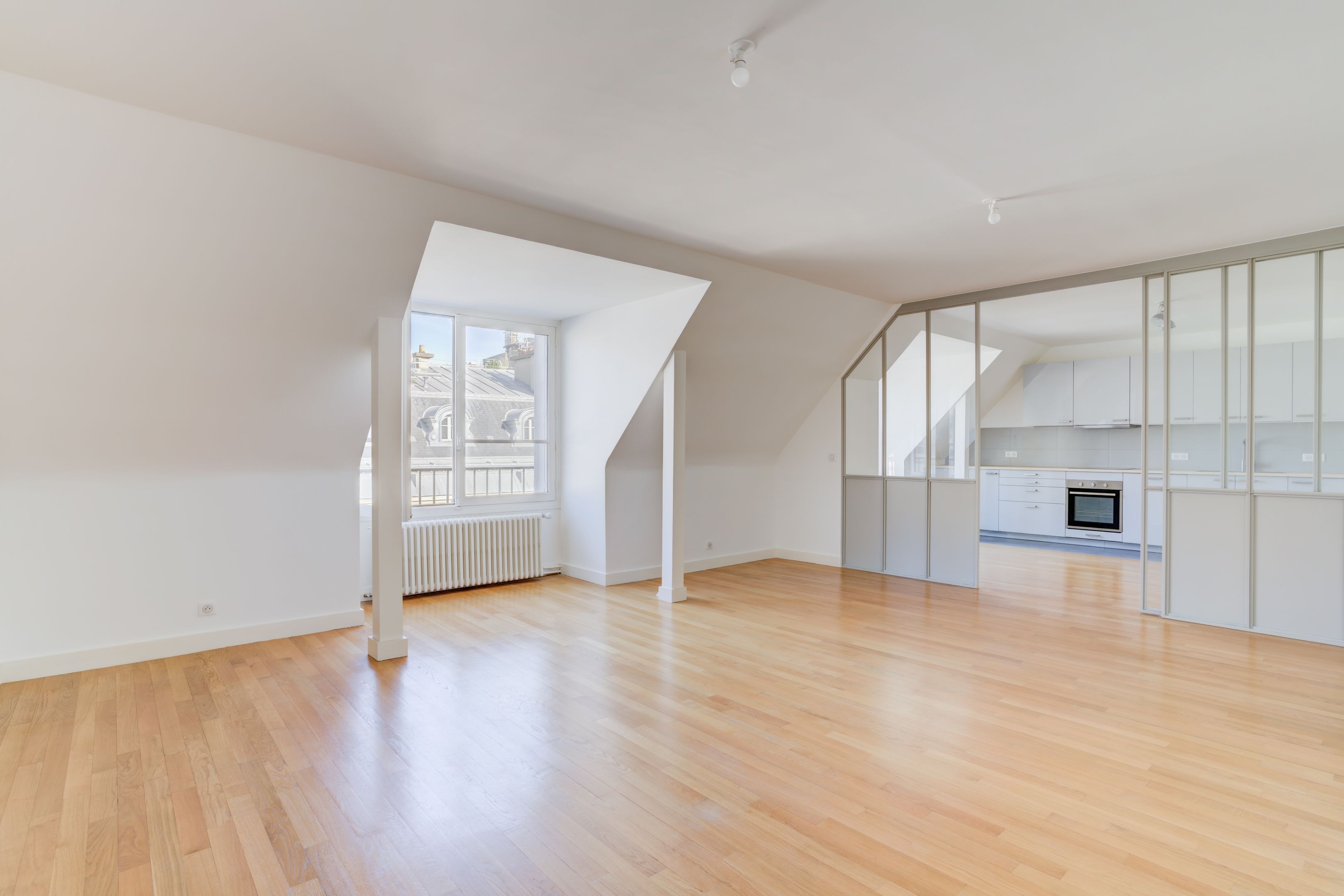 Dans un immeuble en pierre de taille, appartement rénové non meublé de 123 m² au 5ème étage, desservi par ascenseur. Entrée, séjour, cuisine aménagée et semi-équipée, trois chambres, salle de bains, salle d’eau, deux toilettes séparées, nombreux rangements intégrés. Bailleur institutionnel : pas de garant ni de caution bancaire possible.