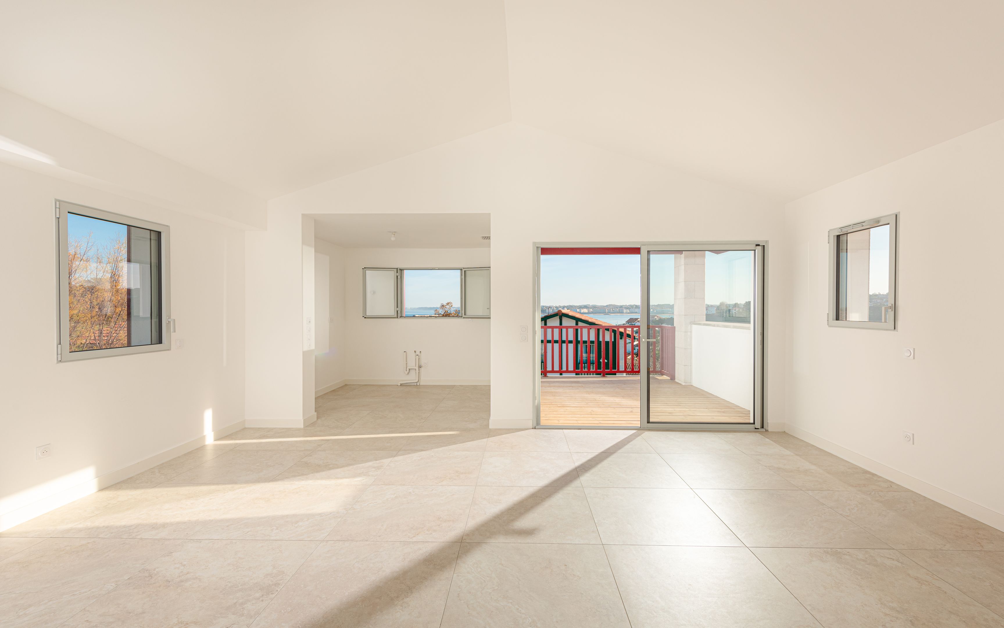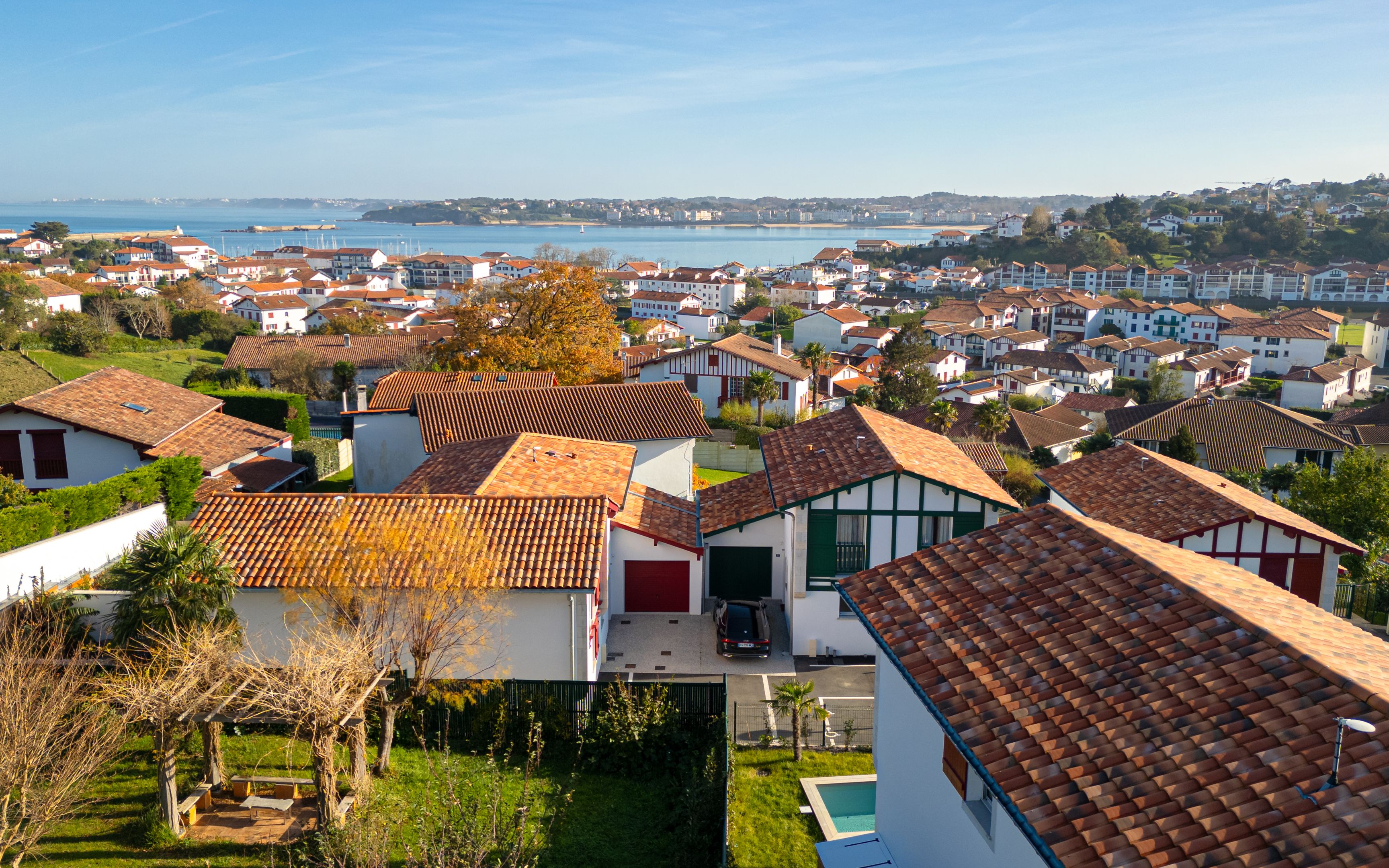 Idéalement située sur le secteur de Socoa, maison neuve de plus de 110m², offrant une vue sur la baie de Saint-Jean-de-Luz et les montagnes. La maison dispose au rez-de-chaussée d'une vaste entrée, deux chambres, une salle d'eau et une suite parentale, toilettes et rangements. Le tout donnant sur terrasses avec piscine. Au niveau supérieur : séjour avec espace cuisine, à aménager, ouvert sur terrasse avec vue panoramique sur l'océan, buanderie et toilettes. Stationnement privatif, et possibilité de garage.