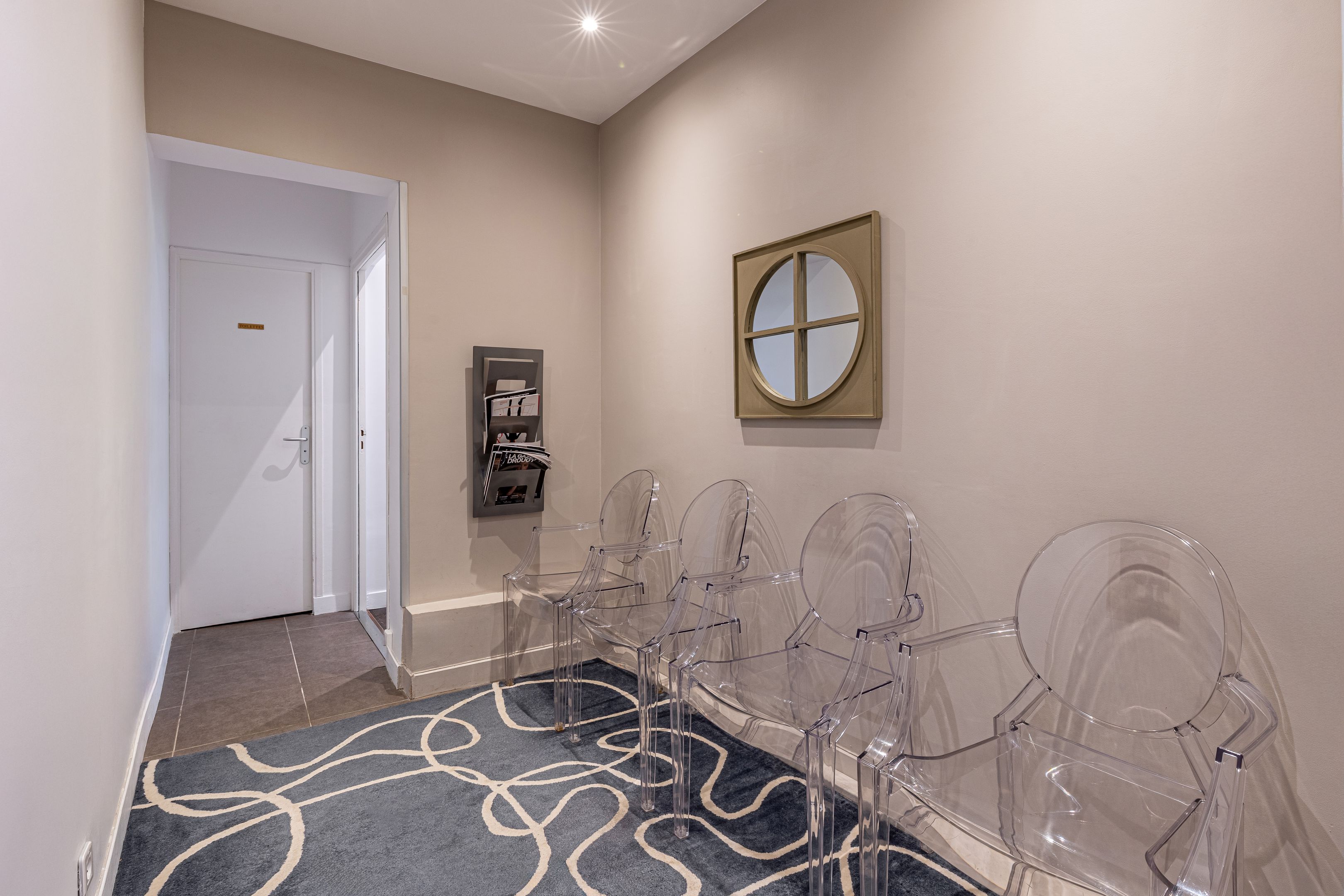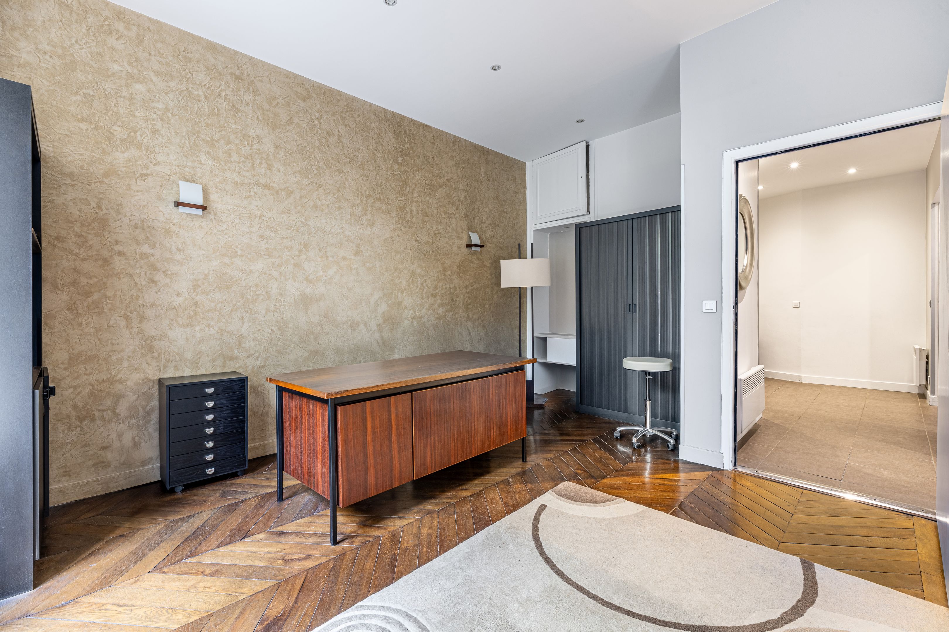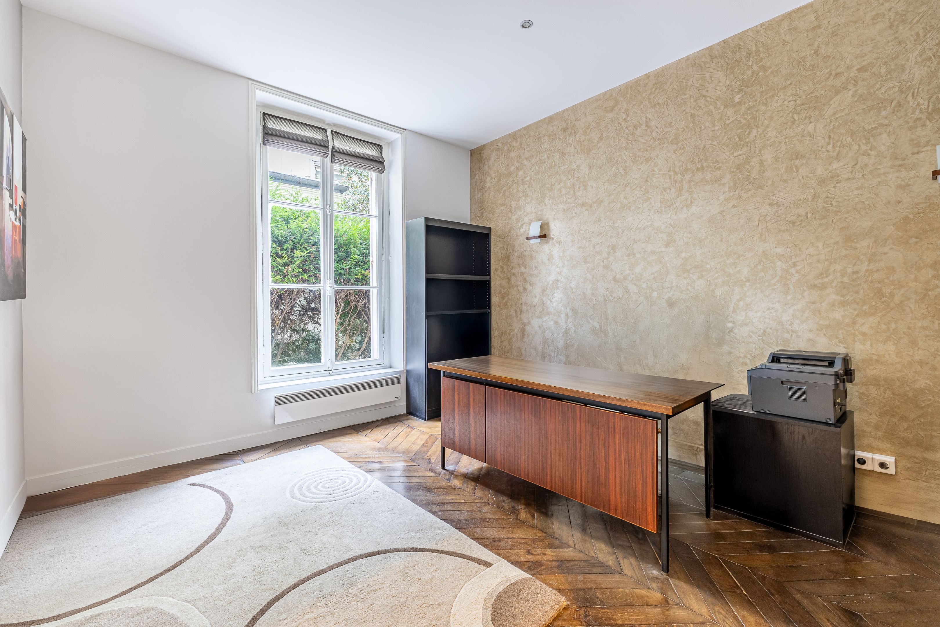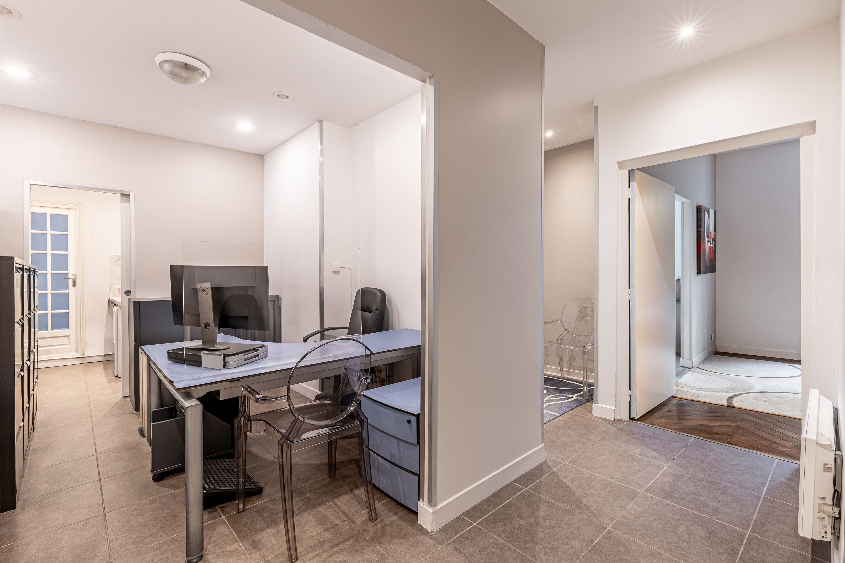 Belle adresse à Victor Hugo, immeuble haussmannien, idéal pour une profession libérale, rez-de-chaussée, appartement sur cour de 72,48 m² Loi Carrez bien distribué. Idéal pour une profession libérale. Accueil/espace secrétariat, salle d'attente, deux grands bureaux (possibilité trois ou quatre bureaux), kitchenette avec accès direct à une courette (jouissance exclusive), deux toilettes. Cave. Accès PMR.