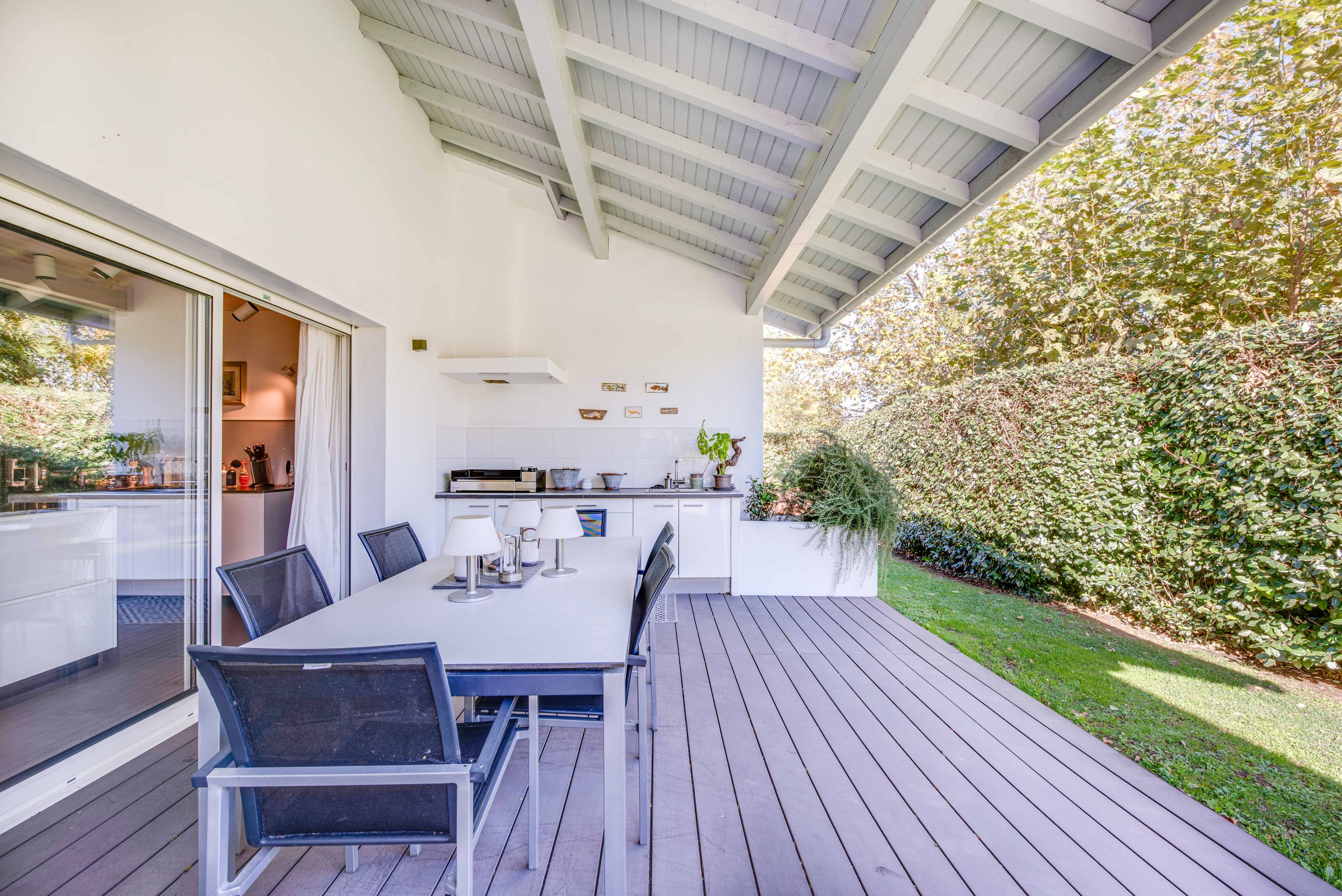 À quelques minutes de la plage de l'Uhabia, dans un écrin de végétation doté d'une piscine, maison de 220 m² construite en 2004 et entièrement rénovée en 2020. Configurée de plain-pied, elle propose une entrée, une pièce de vie traversante avec séjour, salle à manger et cuisine ouverte parfaitement équipée. L'ensemble de ces pièces donne sur de larges terrasses extérieures, dont une couverte avec cuisine d'été et piscine. 4 chambres, dont un espace parental avec chambre, salle d'eau et débarras, salle de bains. Buanderie, 2 garages et emplacements de parking.
